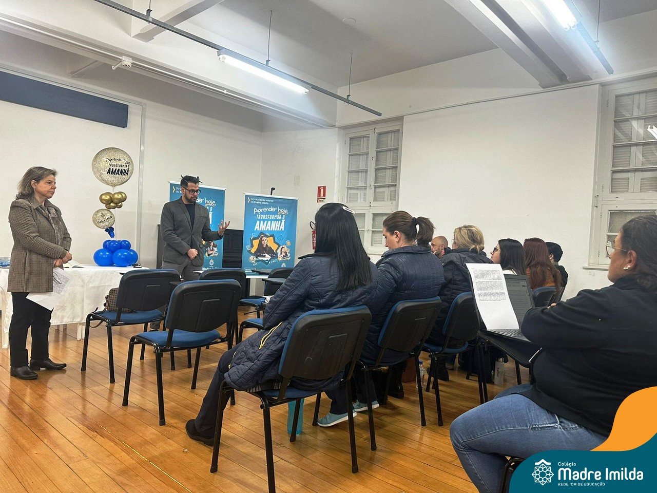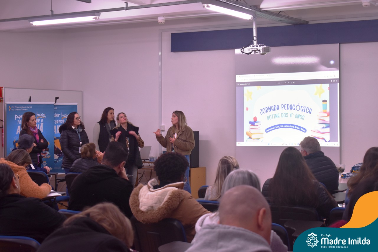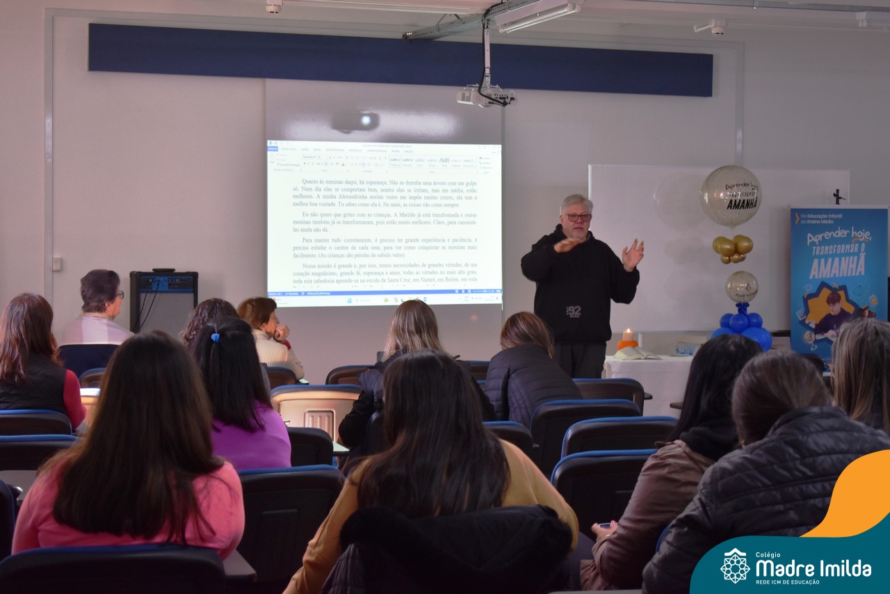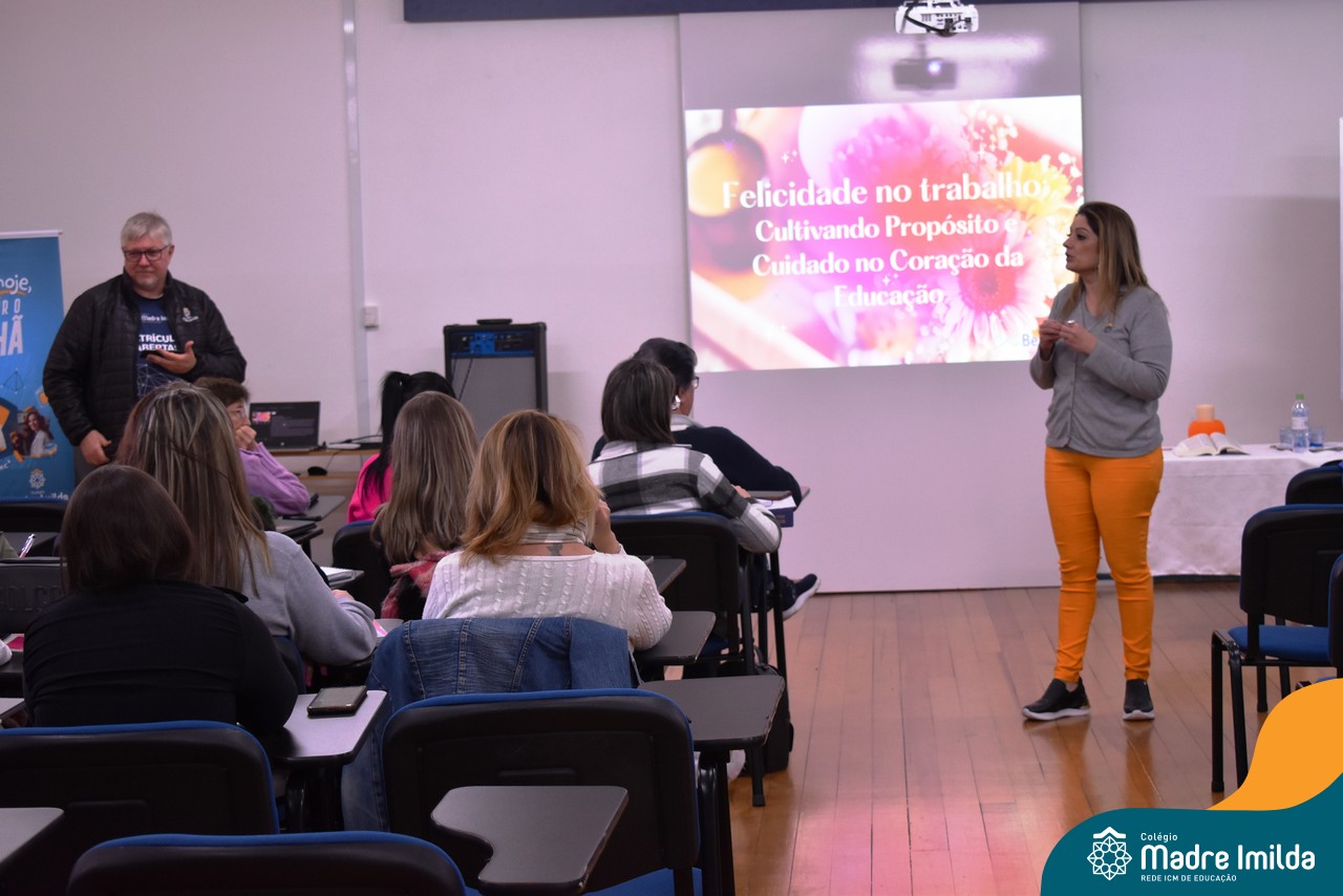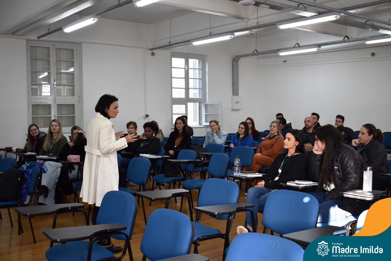 Nos dias 29, 30 e 31 de julho, e 1 e 2 de agosto, o Colégio Madre Imilda realizou a Jornada Pedagógica dos Professores, um evento especialmente planejado para capacitar e inspirar nossos educadores. Durante esses dias, os professores participaram de uma série de formações voltadas para o aprimoramento do uso das plataformas educacionais utilizadas no colégio, como Elefante Letrado, Matific, Líder em Mim e Bernoulli.