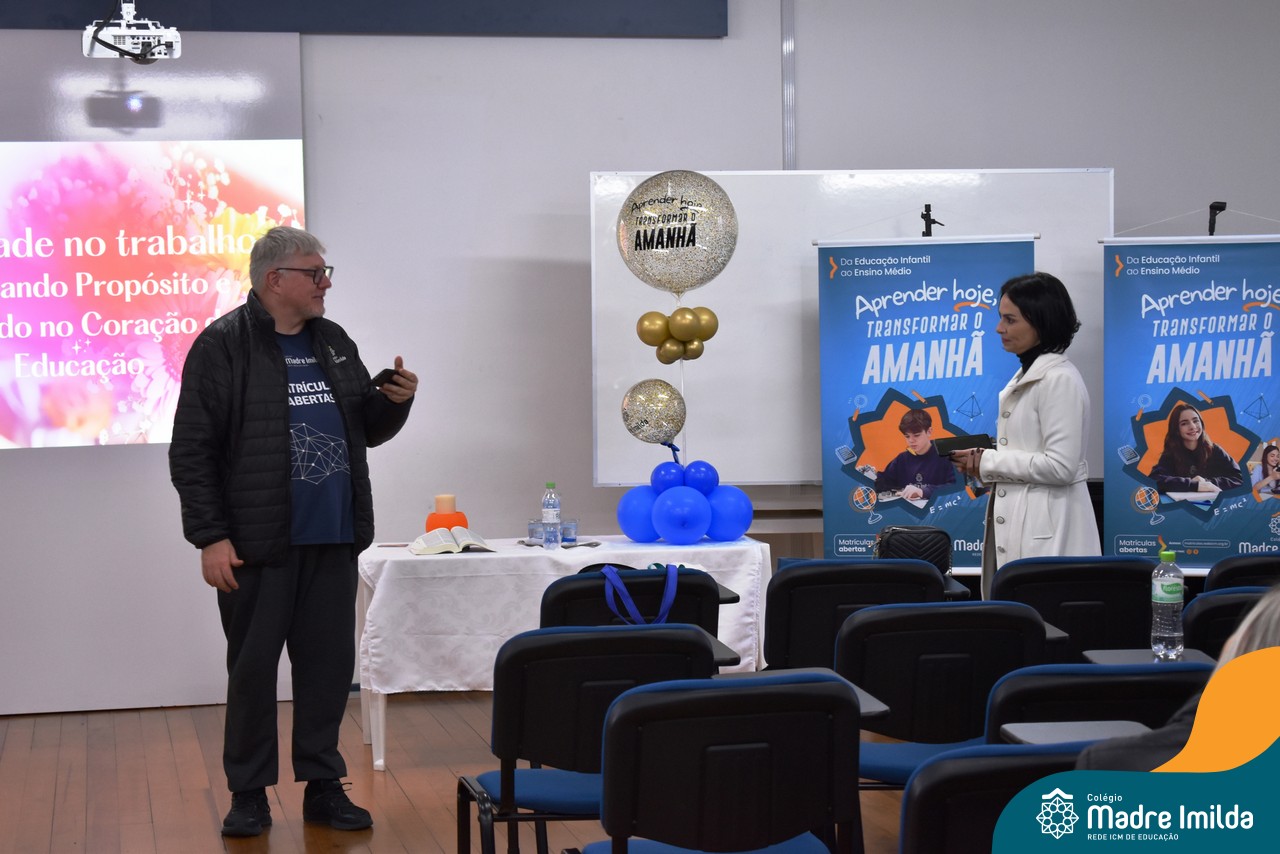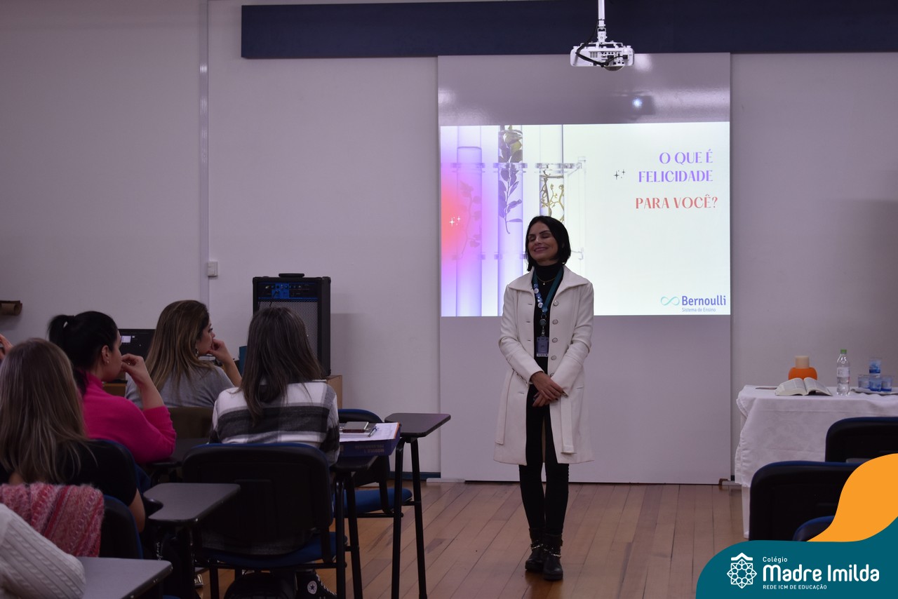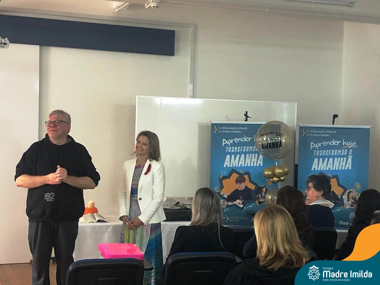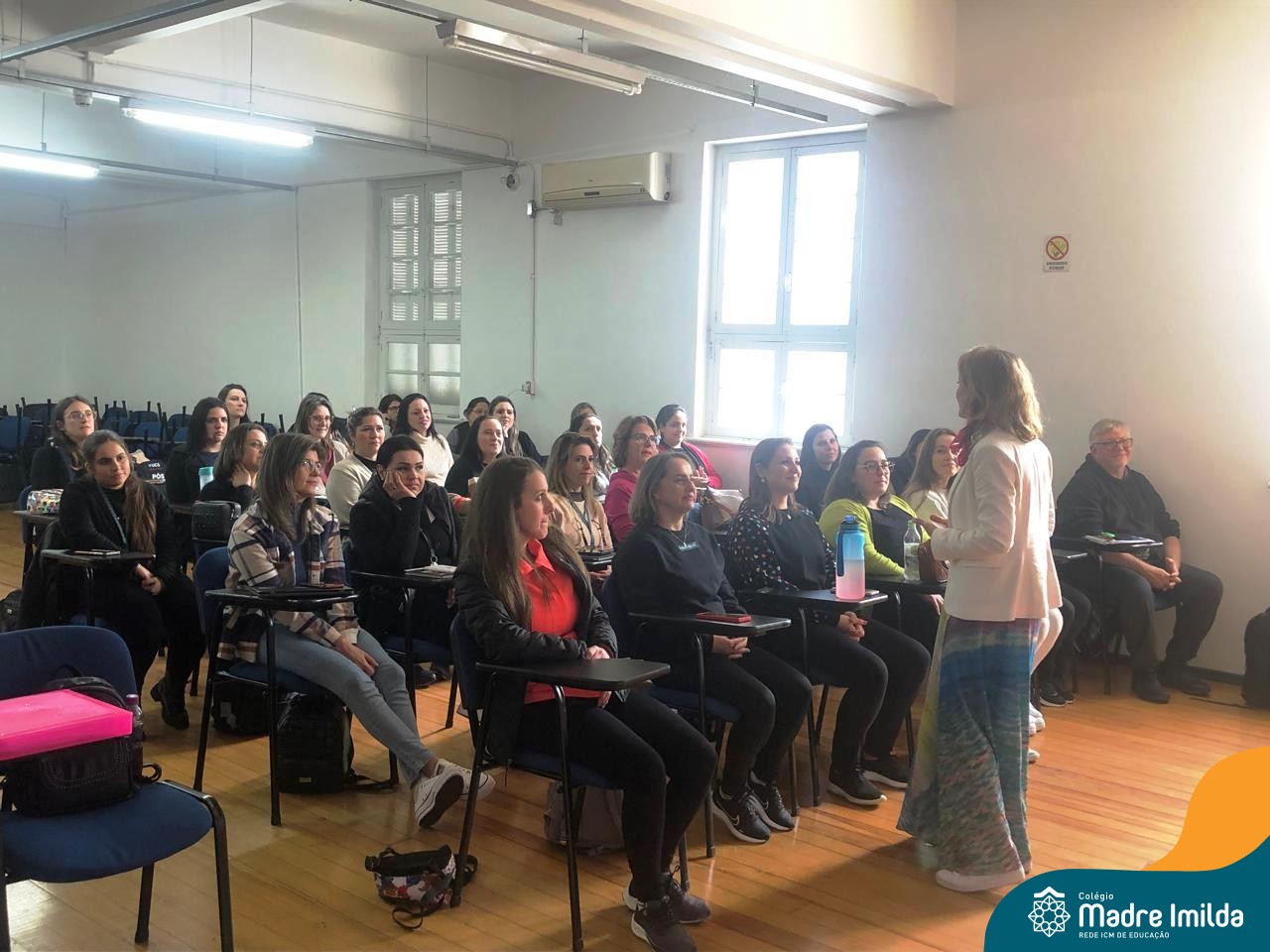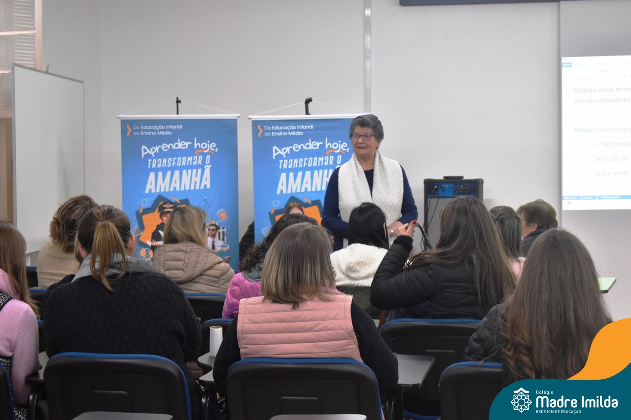 Nos dias 29, 30 e 31 de julho, e 1 e 2 de agosto, o Colégio Madre Imilda realizou a Jornada Pedagógica dos Professores, um evento especialmente planejado para capacitar e inspirar nossos educadores. Durante esses dias, os professores participaram de uma série de formações voltadas para o aprimoramento do uso das plataformas educacionais utilizadas no colégio, como Elefante Letrado, Matific, Líder em Mim e Bernoulli.