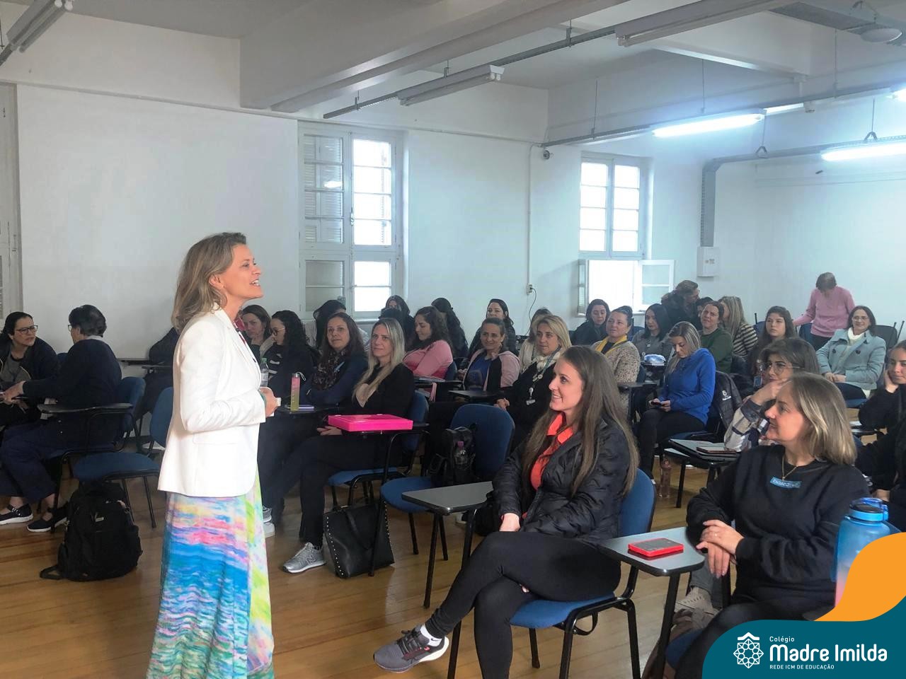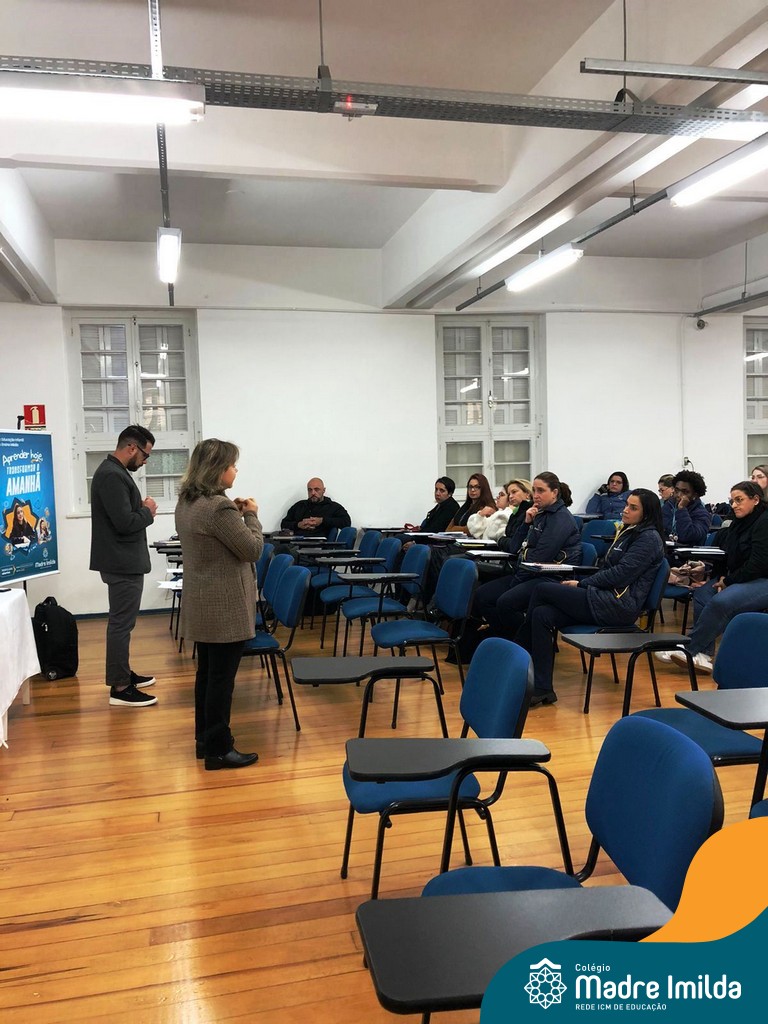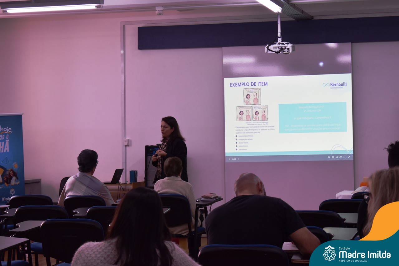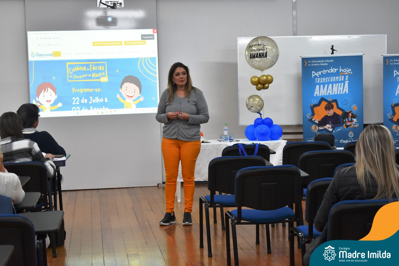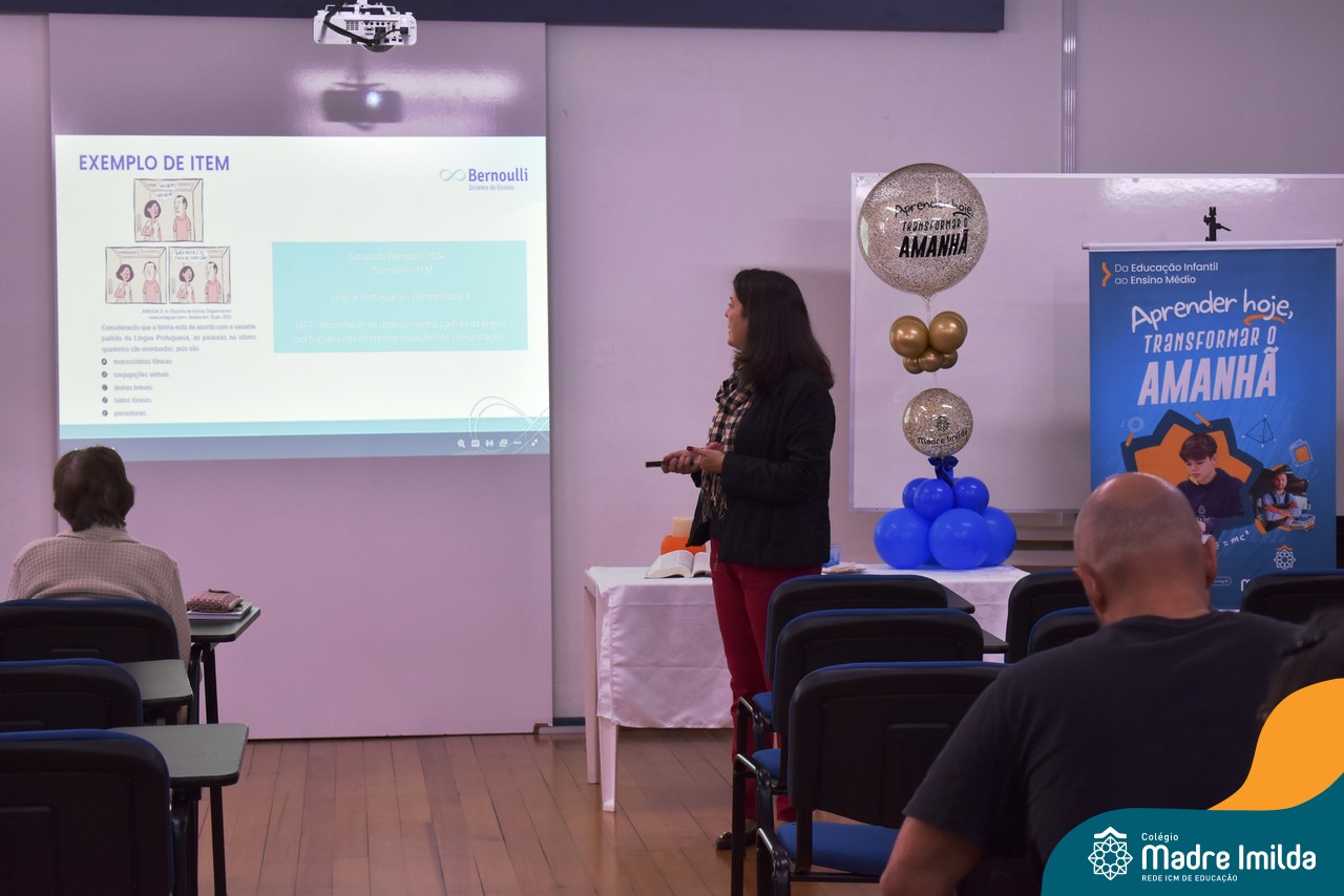 Nos dias 29, 30 e 31 de julho, e 1 e 2 de agosto, o Colégio Madre Imilda realizou a Jornada Pedagógica dos Professores, um evento especialmente planejado para capacitar e inspirar nossos educadores. Durante esses dias, os professores participaram de uma série de formações voltadas para o aprimoramento do uso das plataformas educacionais utilizadas no colégio, como Elefante Letrado, Matific, Líder em Mim e Bernoulli.