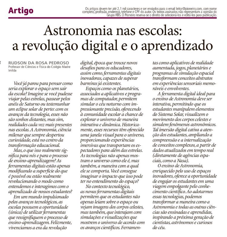 Alunos do Colégio Madre Imilda conquistam ouro e prata na Olimpíada Brasileira de Astronomia e Astronáutica