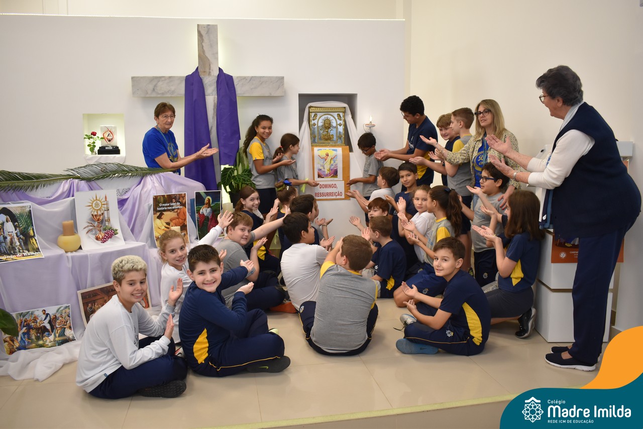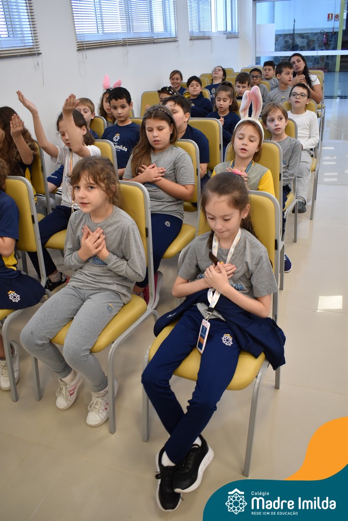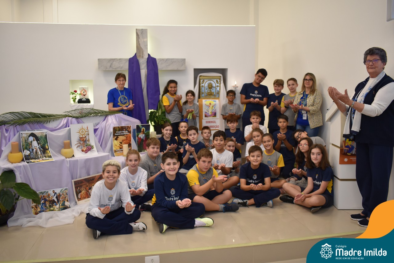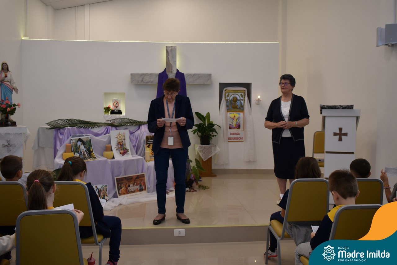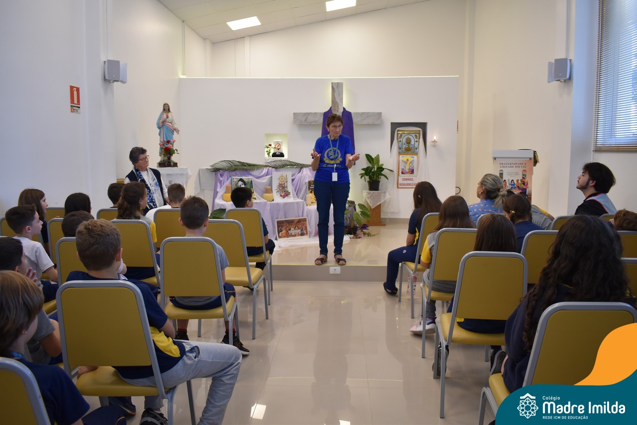 Na semana de 20 a 26 de março, os alunos da Educação Infantil ao 5º ano do Ensino Fundamental do Colégio Madre Imilda foram convidados a uma significativa reflexão na capela sobre a Páscoa. Este momento especial foi conduzido pelas Irmãs Anísia e Amelia, que guiaram nossos estudantes em uma jornada de introspecção, partilha e aprendizado.