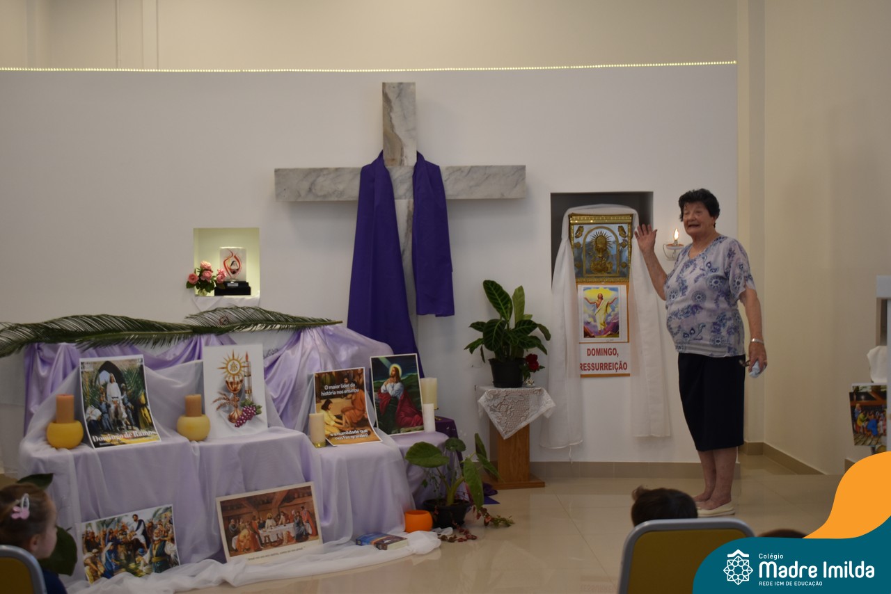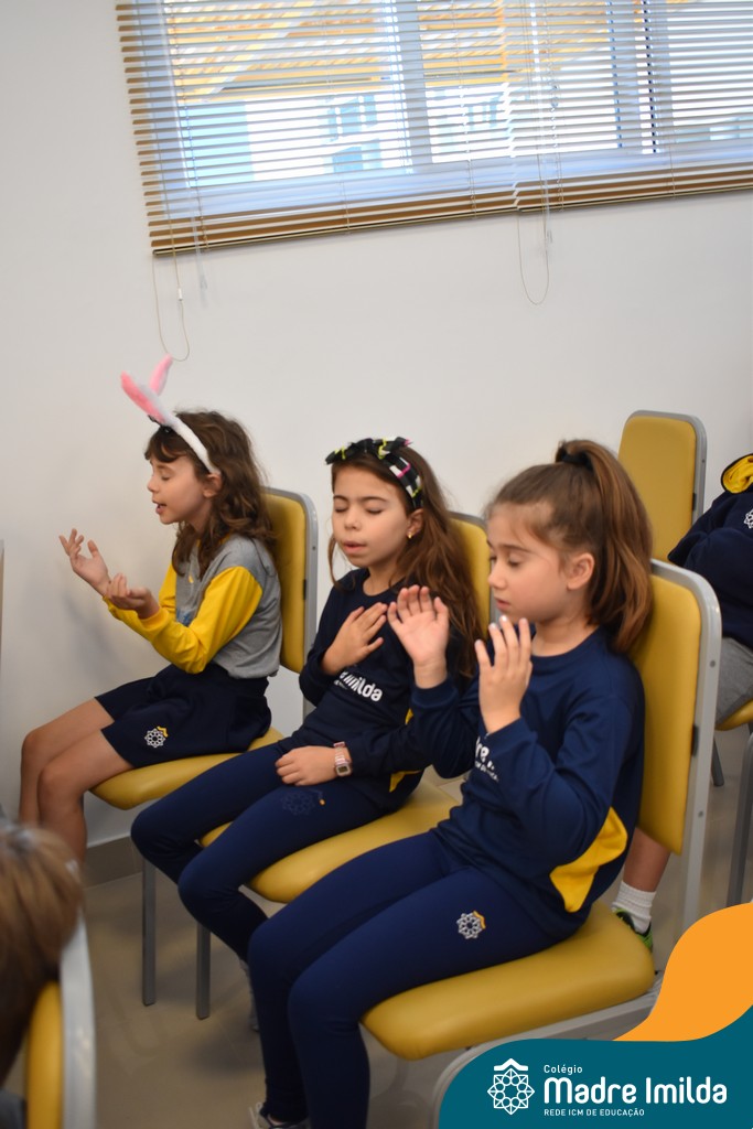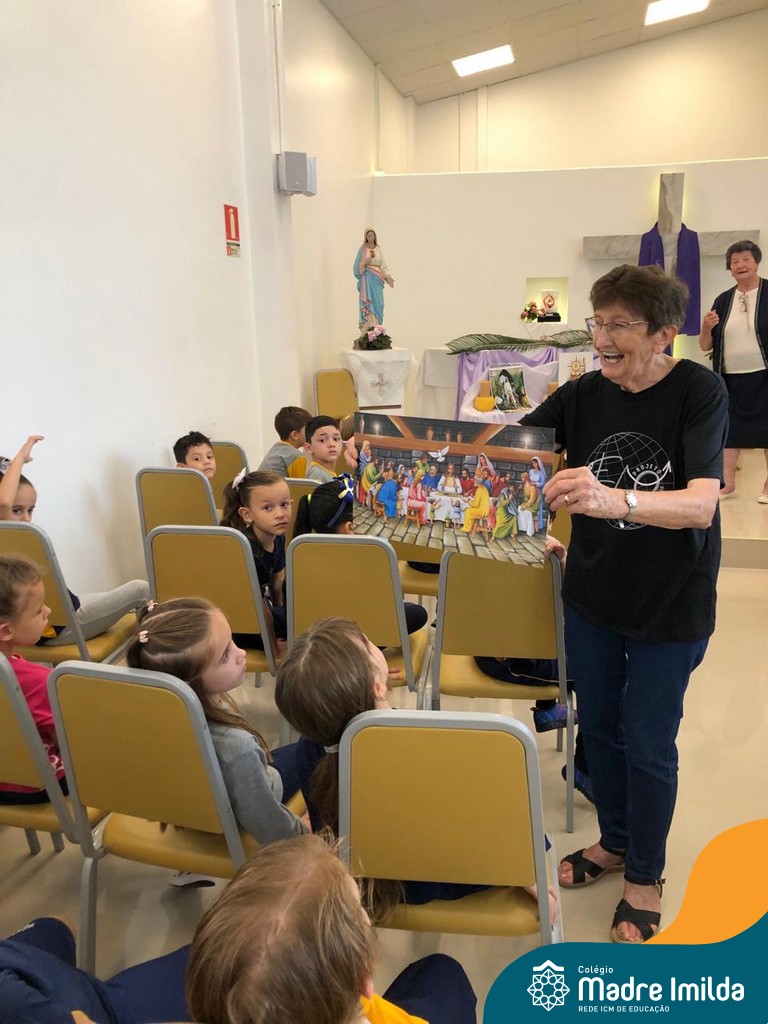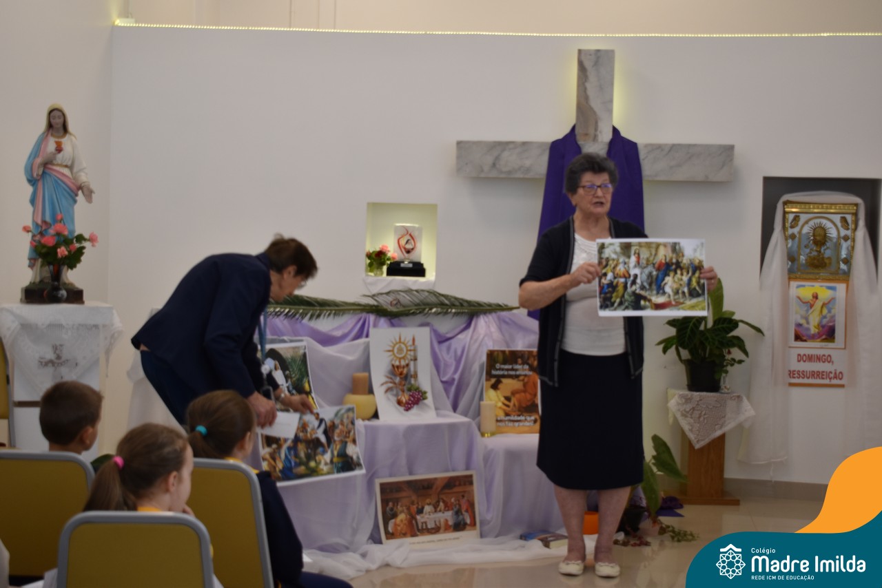 Na semana de 20 a 26 de março, os alunos da Educação Infantil ao 5º ano do Ensino Fundamental do Colégio Madre Imilda foram convidados a uma significativa reflexão na capela sobre a Páscoa. Este momento especial foi conduzido pelas Irmãs Anísia e Amelia, que guiaram nossos estudantes em uma jornada de introspecção, partilha e aprendizado.