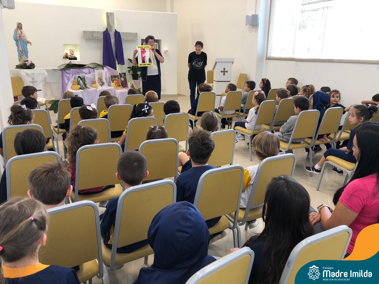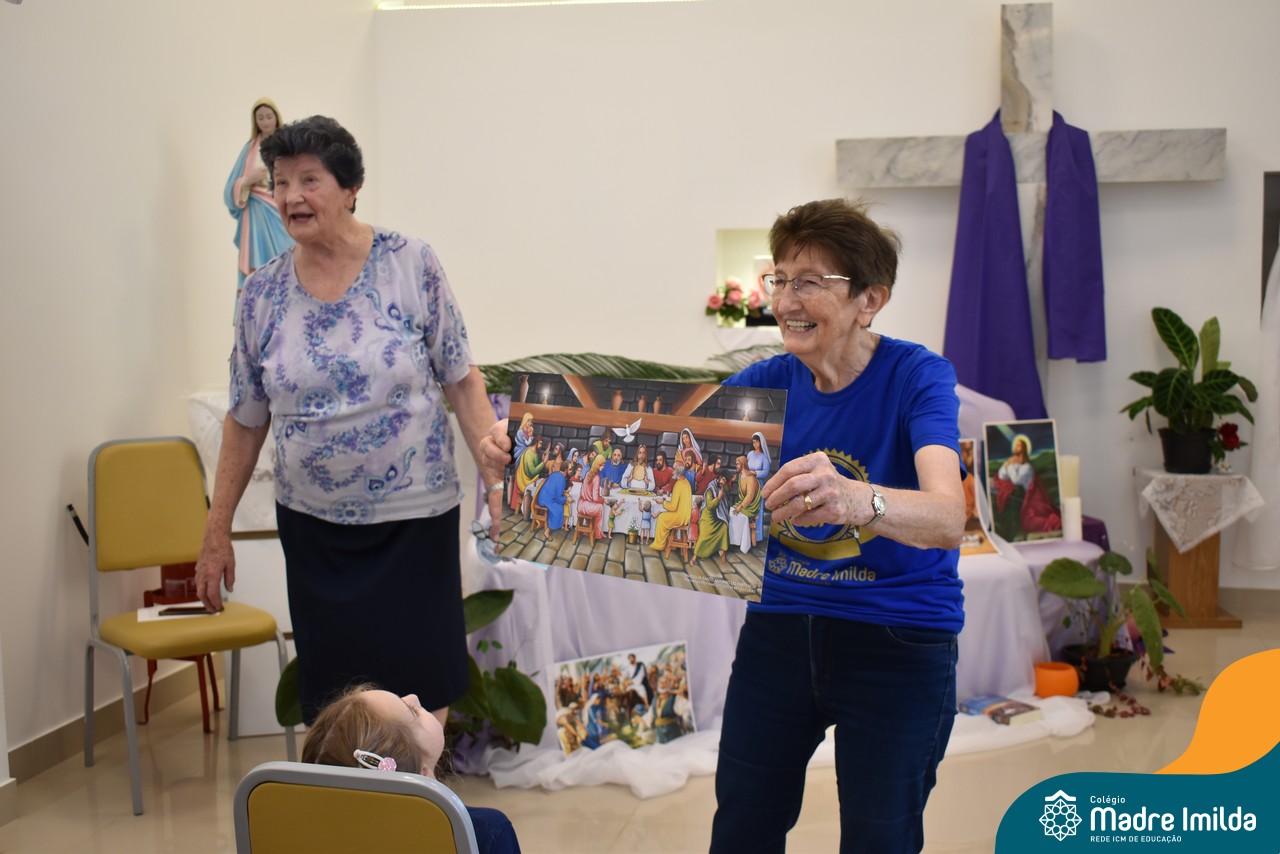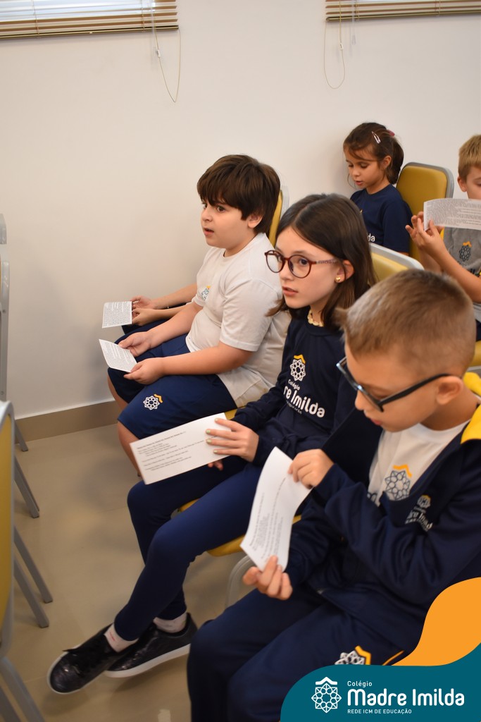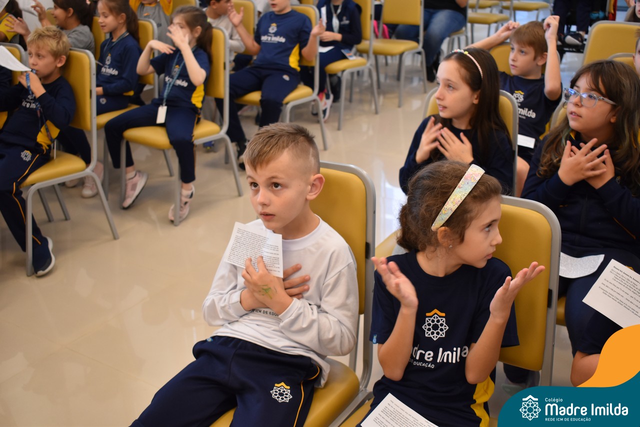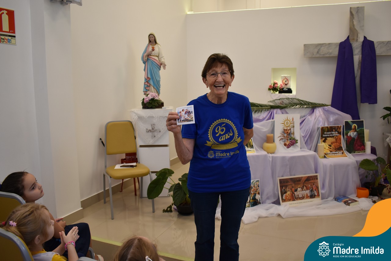 Na semana de 20 a 26 de março, os alunos da Educação Infantil ao 5º ano do Ensino Fundamental do Colégio Madre Imilda foram convidados a uma significativa reflexão na capela sobre a Páscoa. Este momento especial foi conduzido pelas Irmãs Anísia e Amelia, que guiaram nossos estudantes em uma jornada de introspecção, partilha e aprendizado.