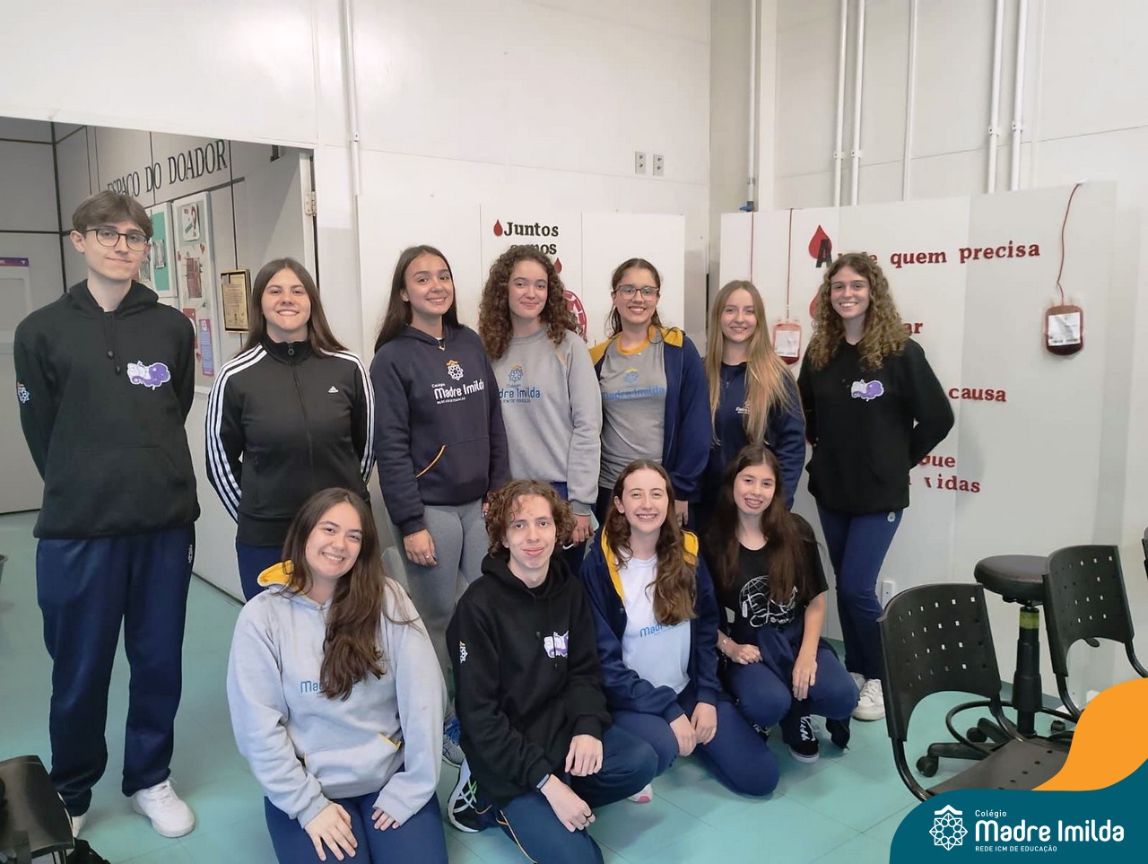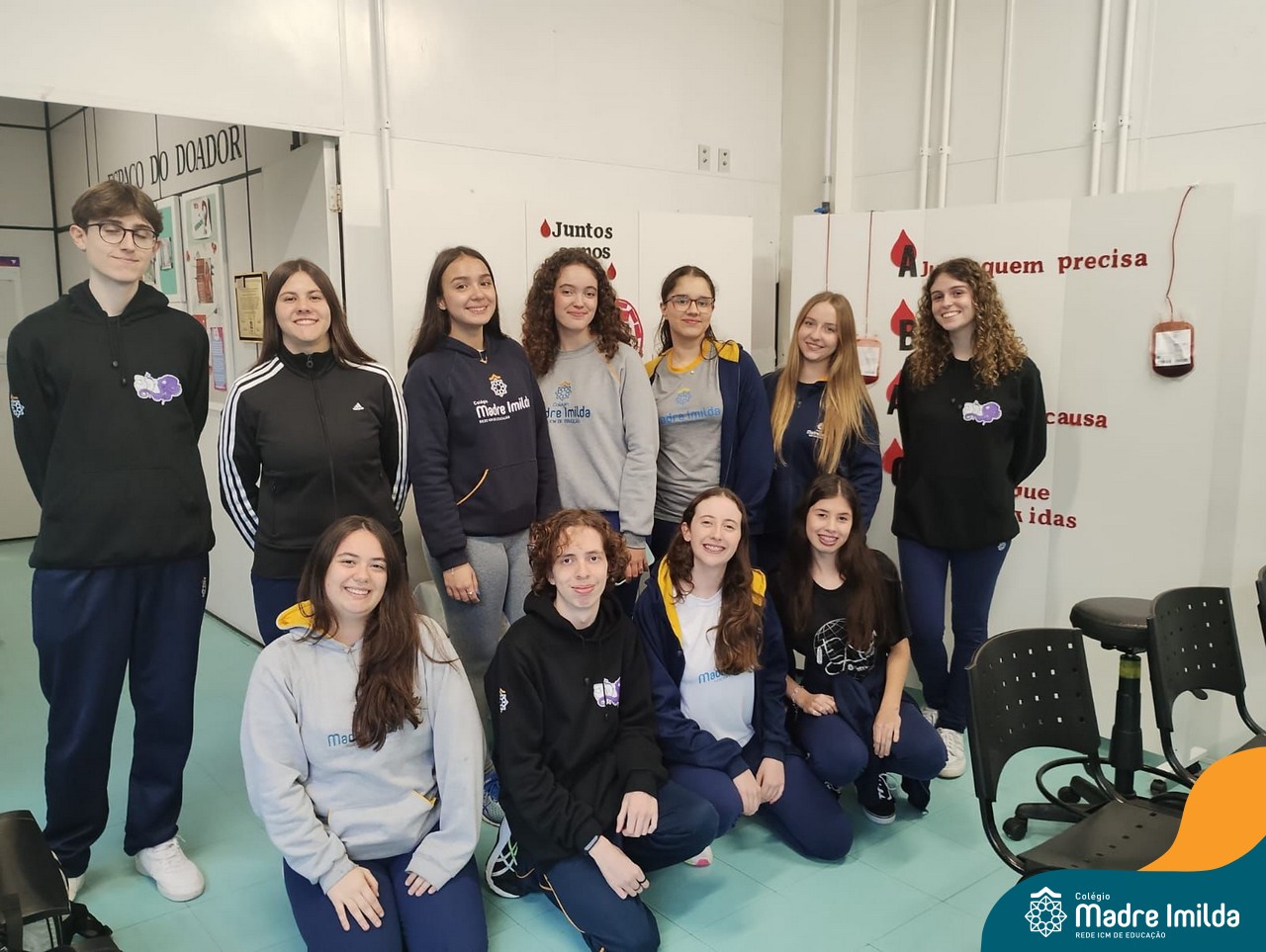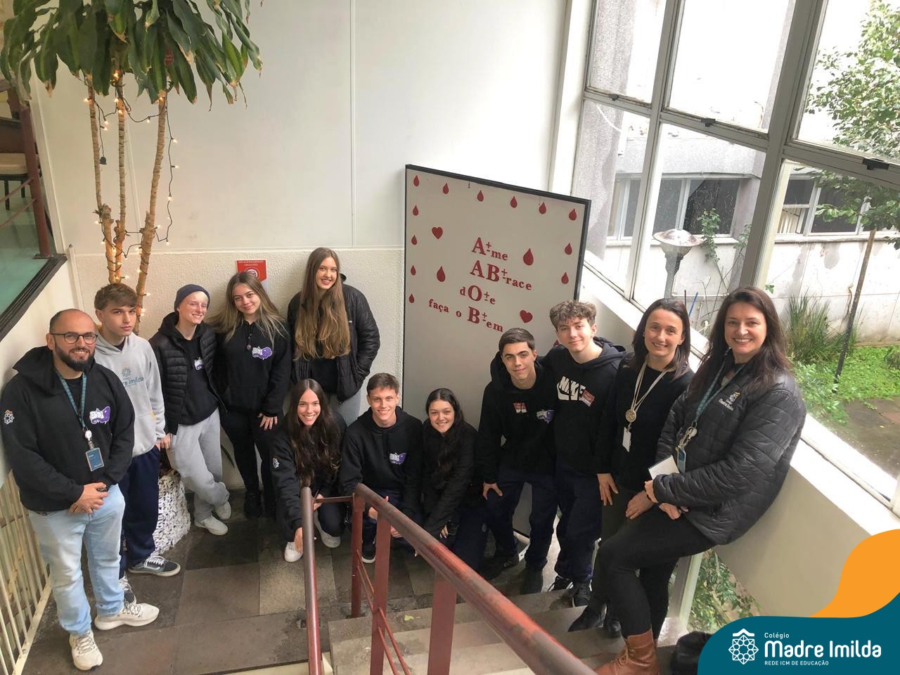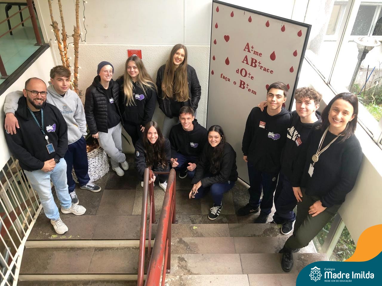 No mês de junho, o Colégio Madre Imilda, em uma parceria entre o Grêmio Estudantil, o Programa de Voluntariado e a 3ª série do Ensino Médio, realizou um projeto significativo de doação de sangue. A iniciativa contou com a participação ativa dos estudantes, acompanhados pelo coordenador de pastoral, Diego, que visitaram o Hemocentro Regional de Caxias do Sul (Hemocs).