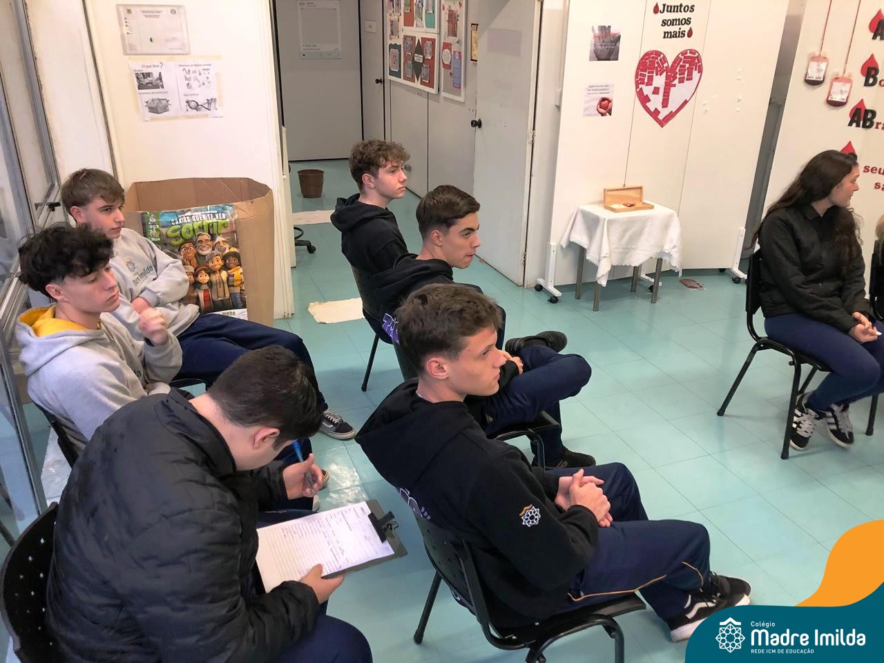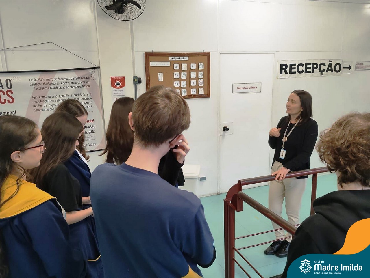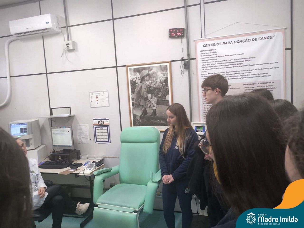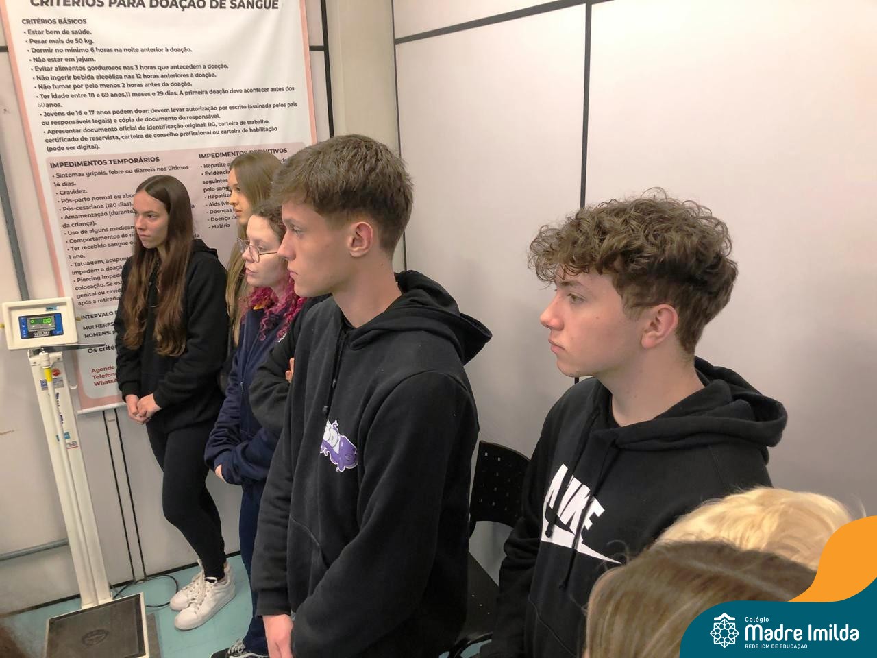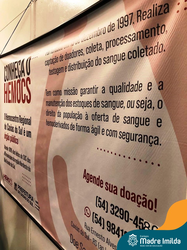 No mês de junho, o Colégio Madre Imilda, em uma parceria entre o Grêmio Estudantil, o Programa de Voluntariado e a 3ª série do Ensino Médio, realizou um projeto significativo de doação de sangue. A iniciativa contou com a participação ativa dos estudantes, acompanhados pelo coordenador de pastoral, Diego, que visitaram o Hemocentro Regional de Caxias do Sul (Hemocs).