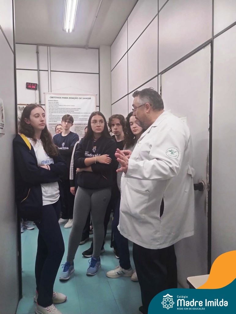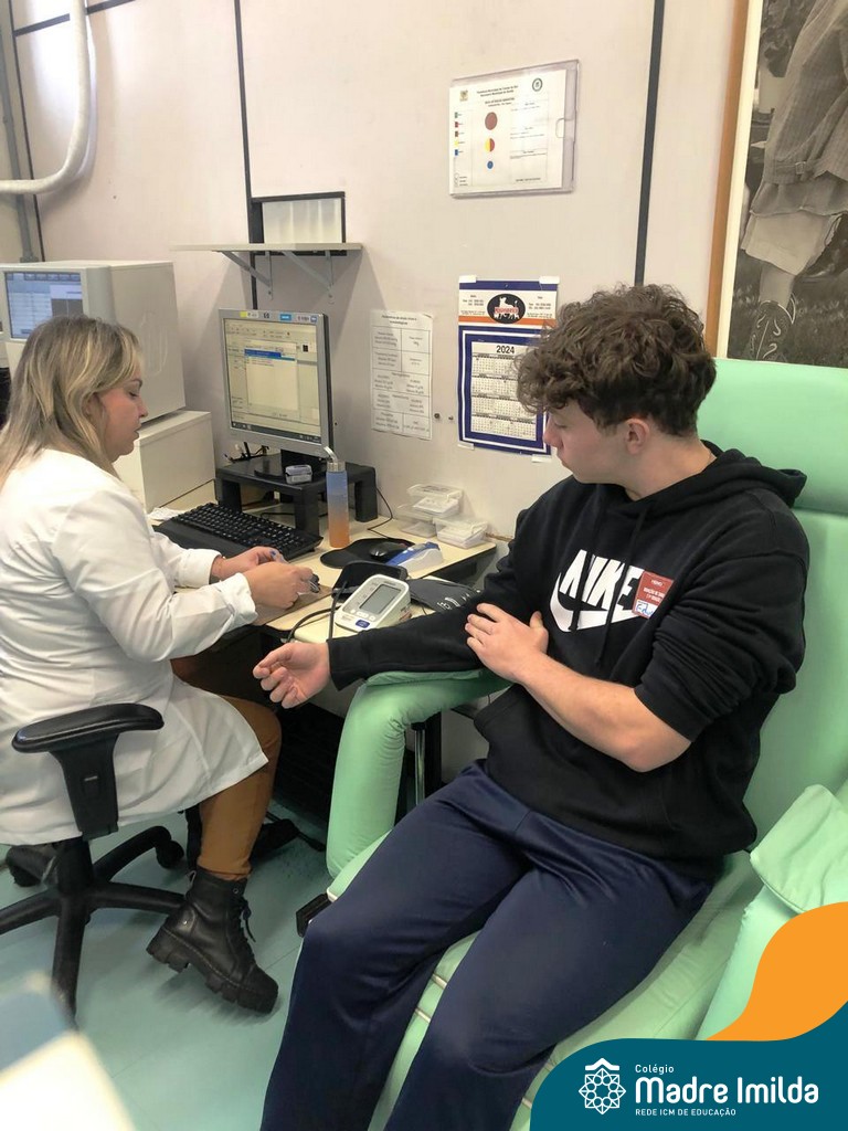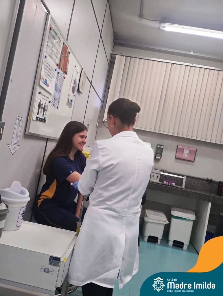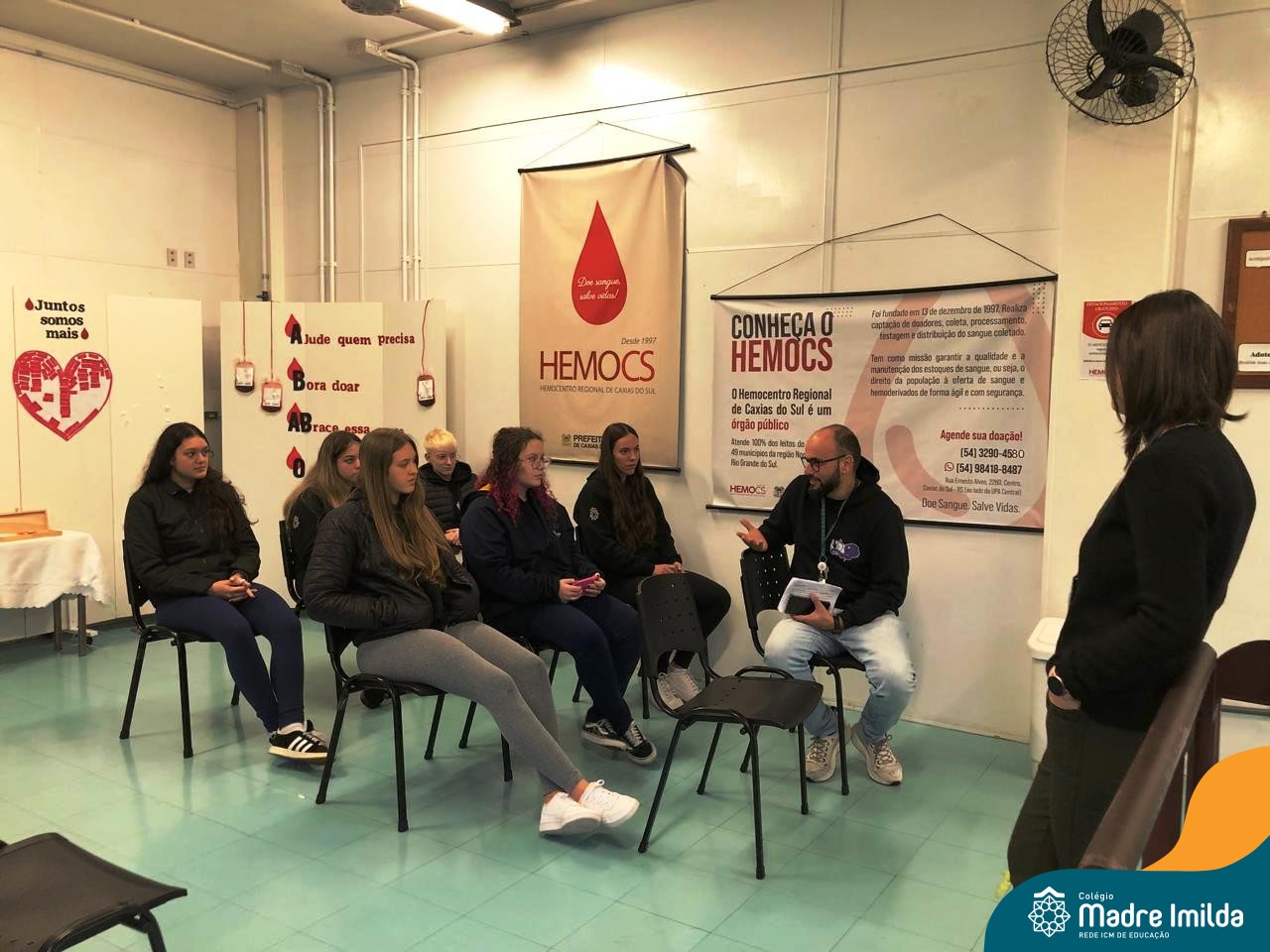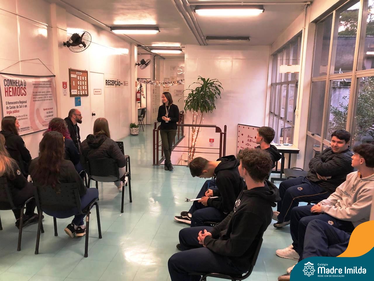 No mês de junho, o Colégio Madre Imilda, em uma parceria entre o Grêmio Estudantil, o Programa de Voluntariado e a 3ª série do Ensino Médio, realizou um projeto significativo de doação de sangue. A iniciativa contou com a participação ativa dos estudantes, acompanhados pelo coordenador de pastoral, Diego, que visitaram o Hemocentro Regional de Caxias do Sul (Hemocs).