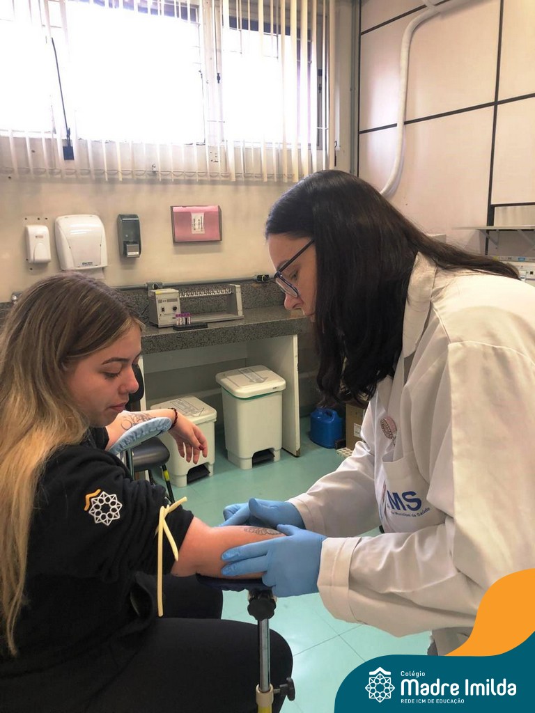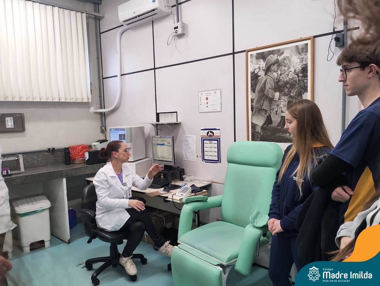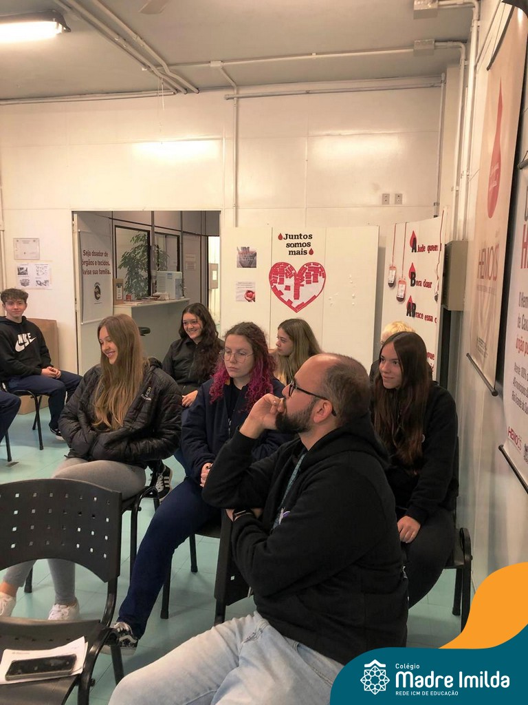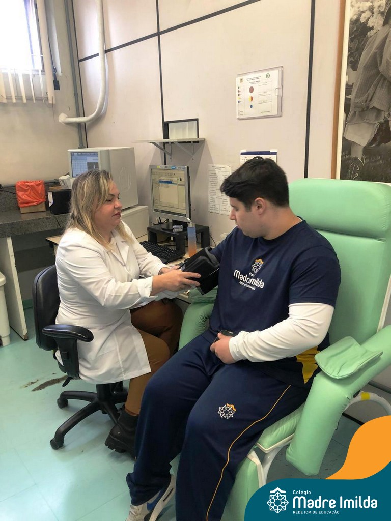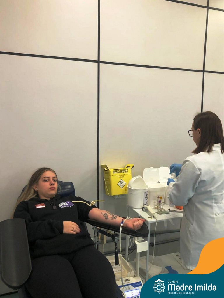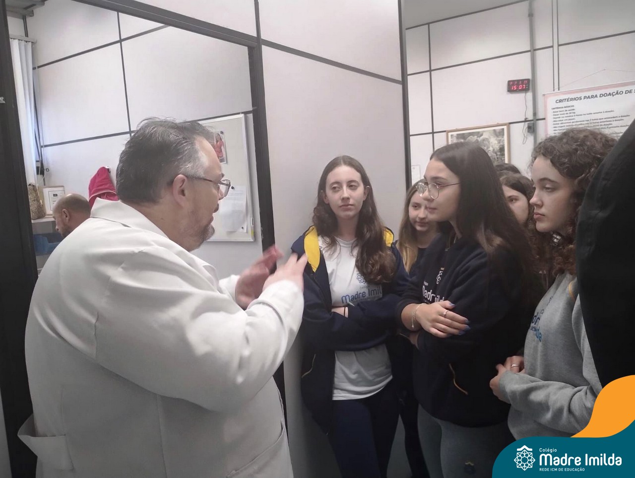No mês de junho, o Colégio Madre Imilda, em uma parceria entre o Grêmio Estudantil, o Programa de Voluntariado e a 3ª série do Ensino Médio, realizou um projeto significativo de doação de sangue. A iniciativa contou com a participação ativa dos estudantes, acompanhados pelo coordenador de pastoral, Diego, que visitaram o Hemocentro Regional de Caxias do Sul (Hemocs).