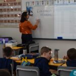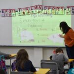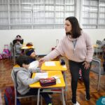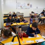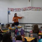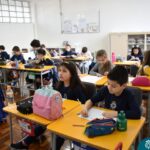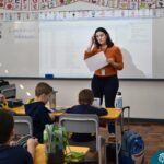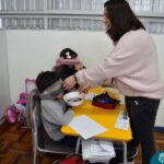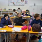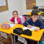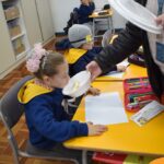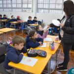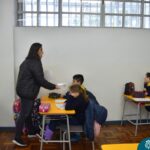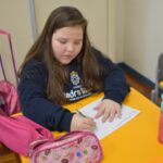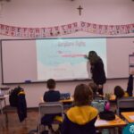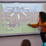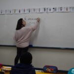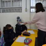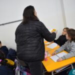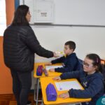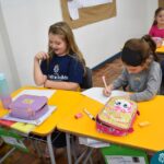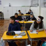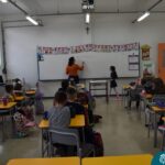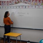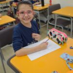 Still blindfolded, the students touched their classmates and tried to guess who they were, using English words about physical characteristics learned in class and identifying if they were a “boy” or a “girl.”