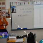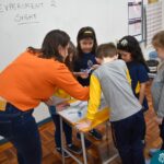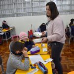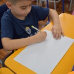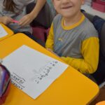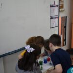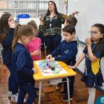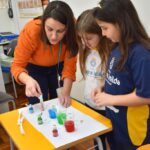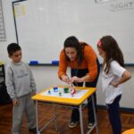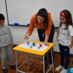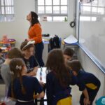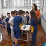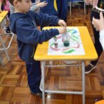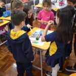 Os estudantes observaram de perto como um simples papel branco pode mudar de cor quando em contato com diferentes corantes. Esta atividade estimulou a percepção visual e ajudou a compreender as transformações das cores no ambiente, tudo isso enquanto aprendiam vocabulário em inglês.