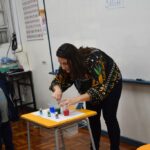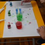 Students observed how a simple white paper can change color when in contact with different dyes. This activity stimulated visual perception and helped them understand the transformation of colors in the environment, all while learning vocabulary in English.