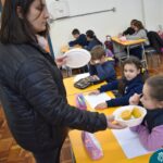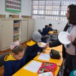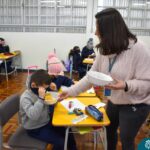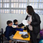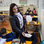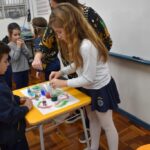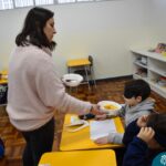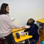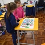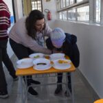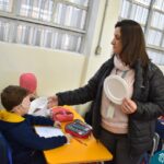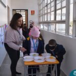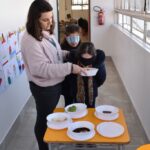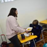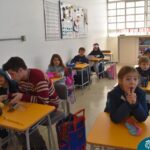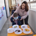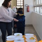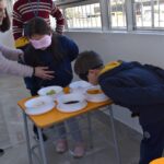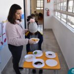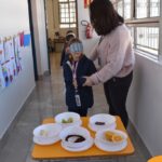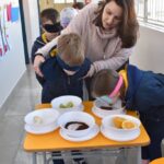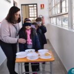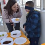 Blindfolded again, the students were introduced to different food aromas and had to guess what they were. This activity stimulated curiosity and the ability to distinguish smells, showing the importance of smell in perceiving the world, all in a bilingual context.