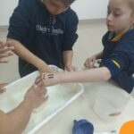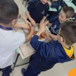No “Mundo dos Dinossauros”, a aprendizagem é uma experiência prática e criativa. Nossos alunos puderam dar asas à imaginação ao confeccionar dinossauros saindo dos ovos, criando réplicas autênticas de patas de dinossauros, representando esqueletos com cotonetes e realizando leituras envolventes sobre os dinossauros.