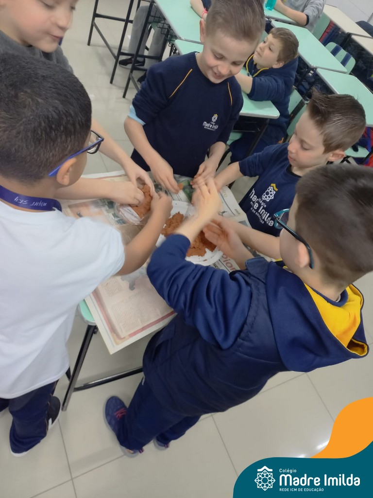 O Espaço Maker se transformou em um verdadeiro laboratório de paleontologia, onde nossos pequenos cientistas produziram fósseis usando massa salgada.