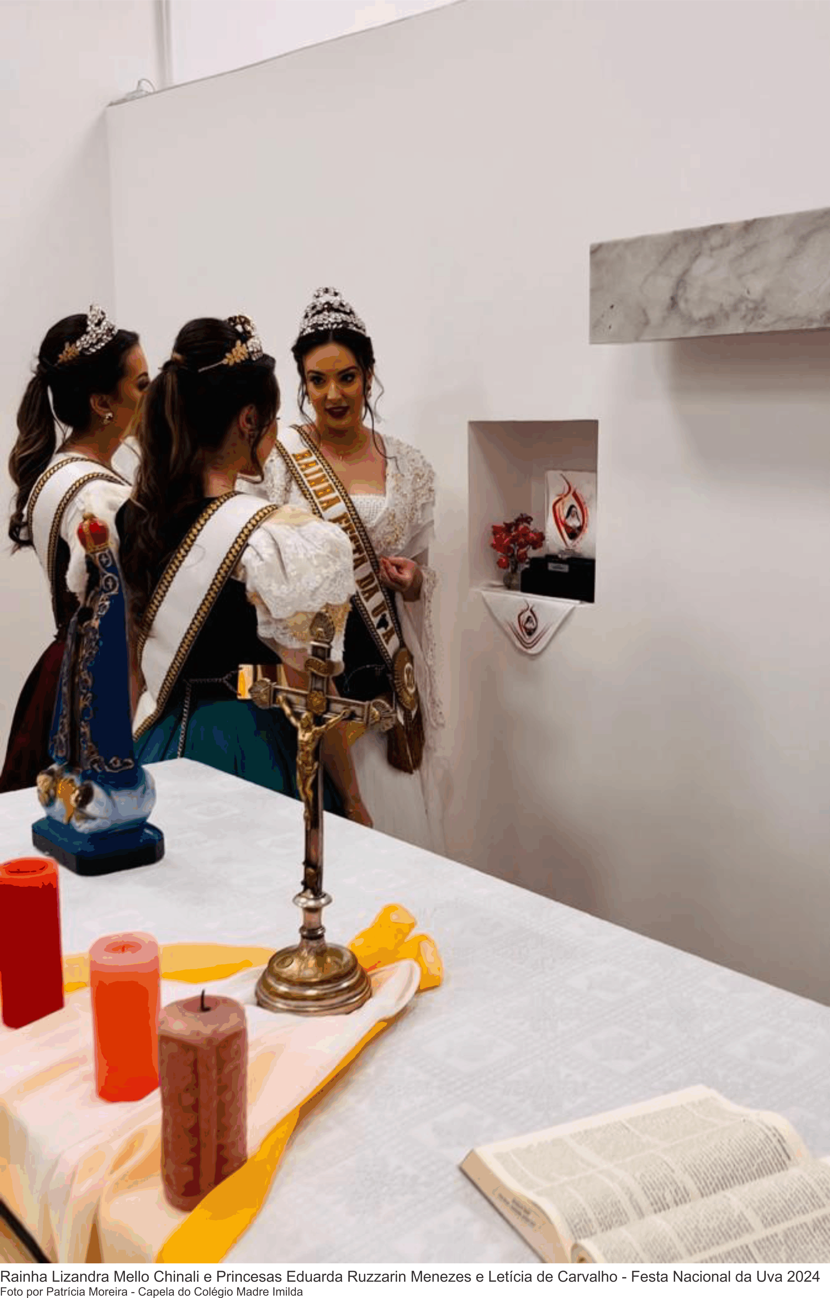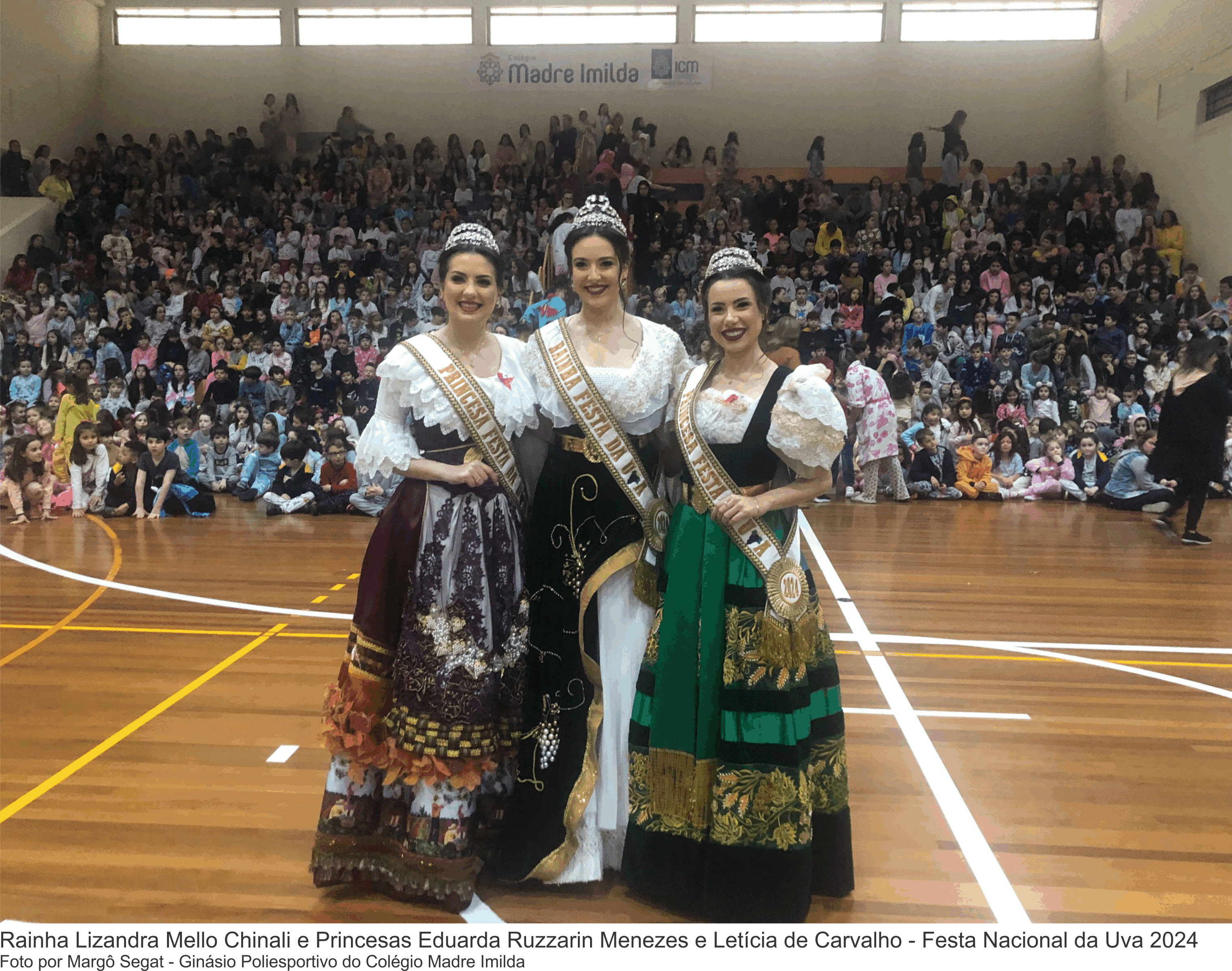Nesta segunda-feira (16), a ex-aluna do Colégio Madre Imilda e rainha da Festa Nacional da Uva 2024, Lizandra Mello Chinali, cumpriu a promessa de retornar coroada ao colégio, no qual estudou por 10 anos. A soberana manifestou a intenção para a diretora, Vanessa Rodrigues, sua ex-professora, quando visitou a instituição de ensino ainda como embaixatriz da festa. Na ocasião, declarou que o colégio “ajudou a formar o caráter e espírito solidário, de ser quem sou e de ter chegado onde eu sempre quis”.