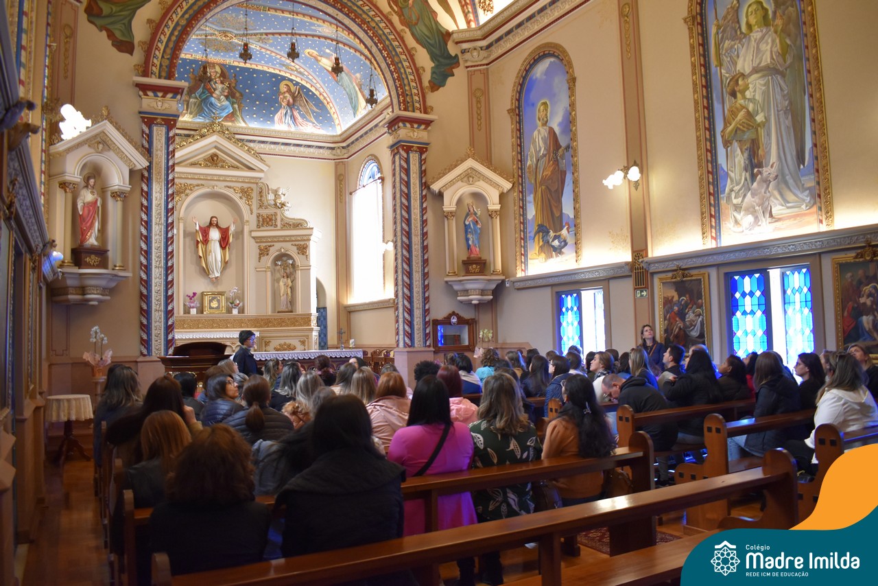 No sábado (16/09), o Colégio Madre Imilda proporcionou a seus professores e funcionários um dia de reflexão e conexão espiritual. O local escolhido para esse momento especial foi o Santuário São Rafael, situado em Porto Alegre, um lugar repleto de significado e espiritualidade.