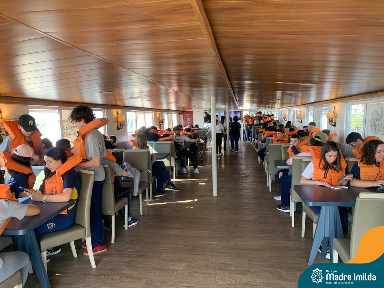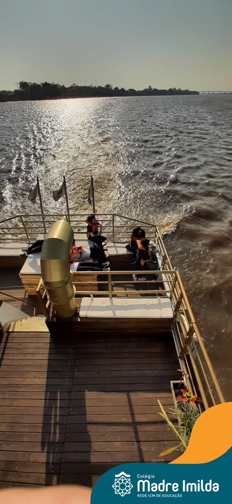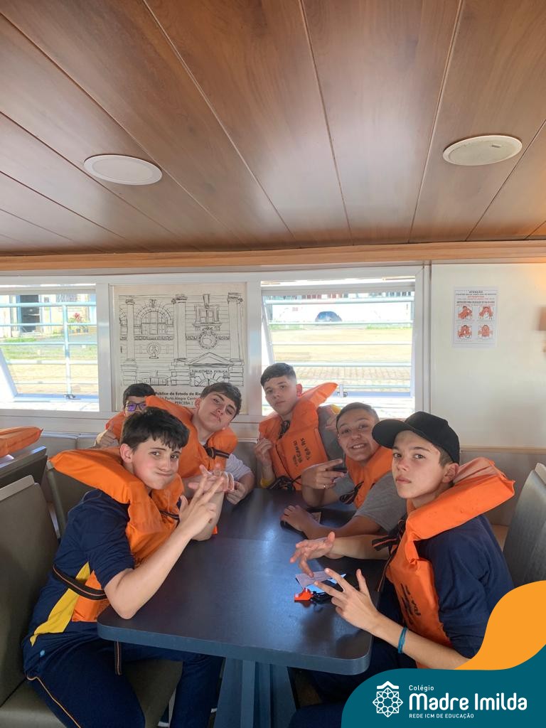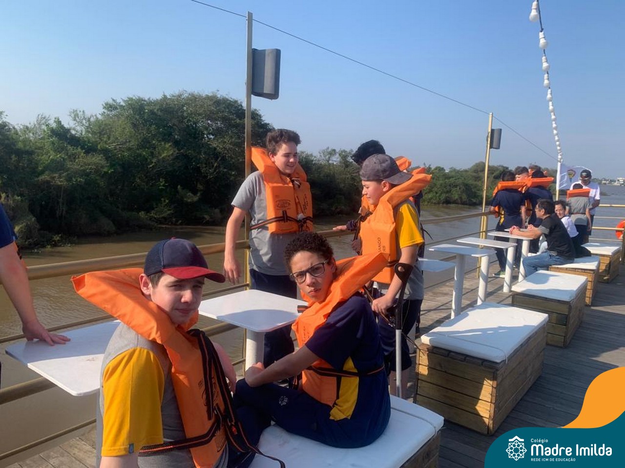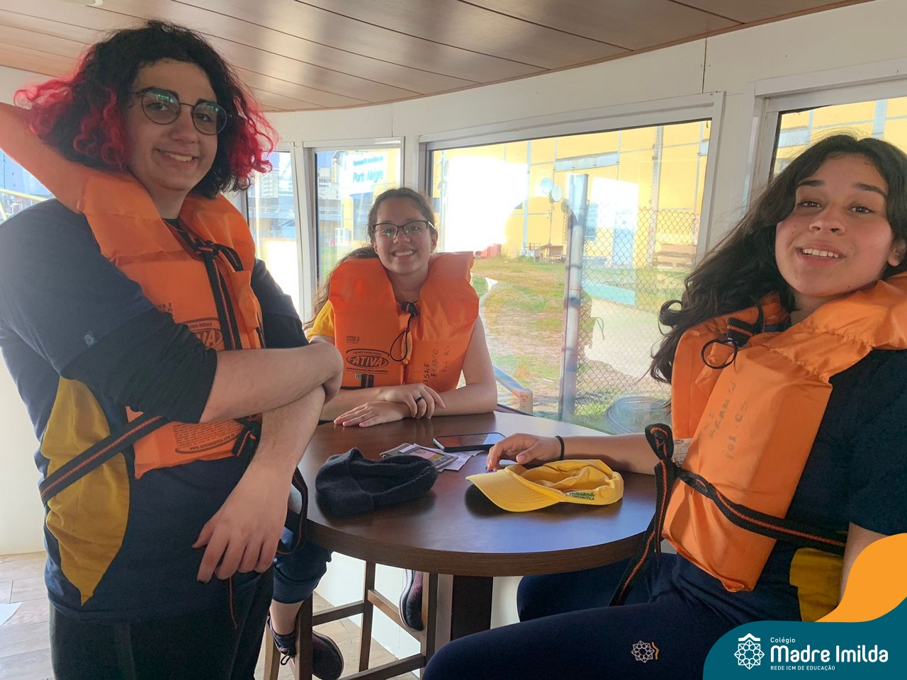 A programação não parou por aí! A próxima parada foi no Cais do Porto, onde o grupo embarcou em uma experiência única: um passeio de barco pelo majestoso Guaíba. A bordo do Passeio de Barco Cisne Branco, nossos alunos desfrutaram de uma vista espetacular da cidade, da paisagem ribeirinha e do pôr do sol enquanto navegavam nas águas tranquilas do rio.