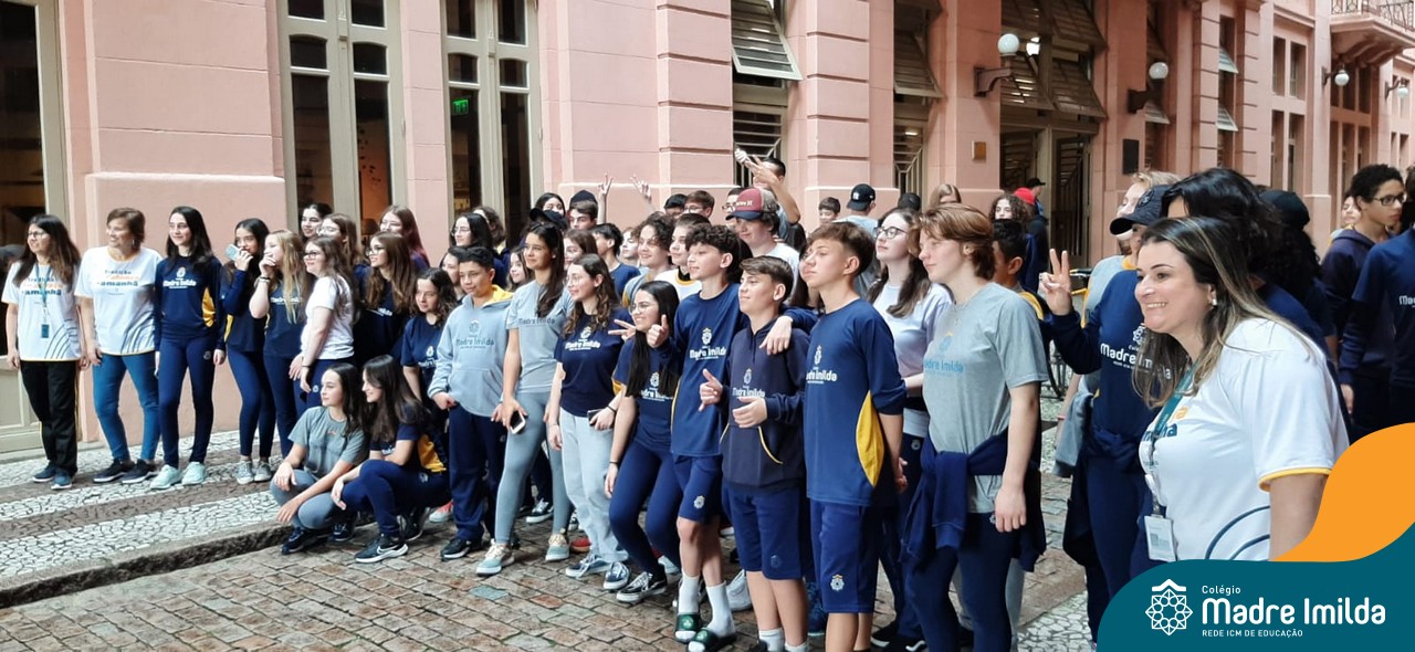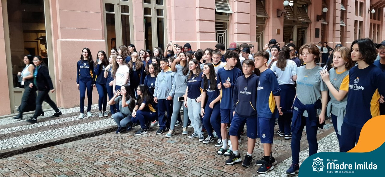 No dia 22/08, os estudantes do 8º ano do Colégio Madre Imilda embarcaram em uma emocionante jornada educacional pela bela cidade de Porto Alegre. Com o intuito de enriquecer seus conhecimentos e experiências, o grupo teve a oportunidade de explorar diversos pontos de interesse da cidade e mergulhar em atividades culturais enriquecedoras.