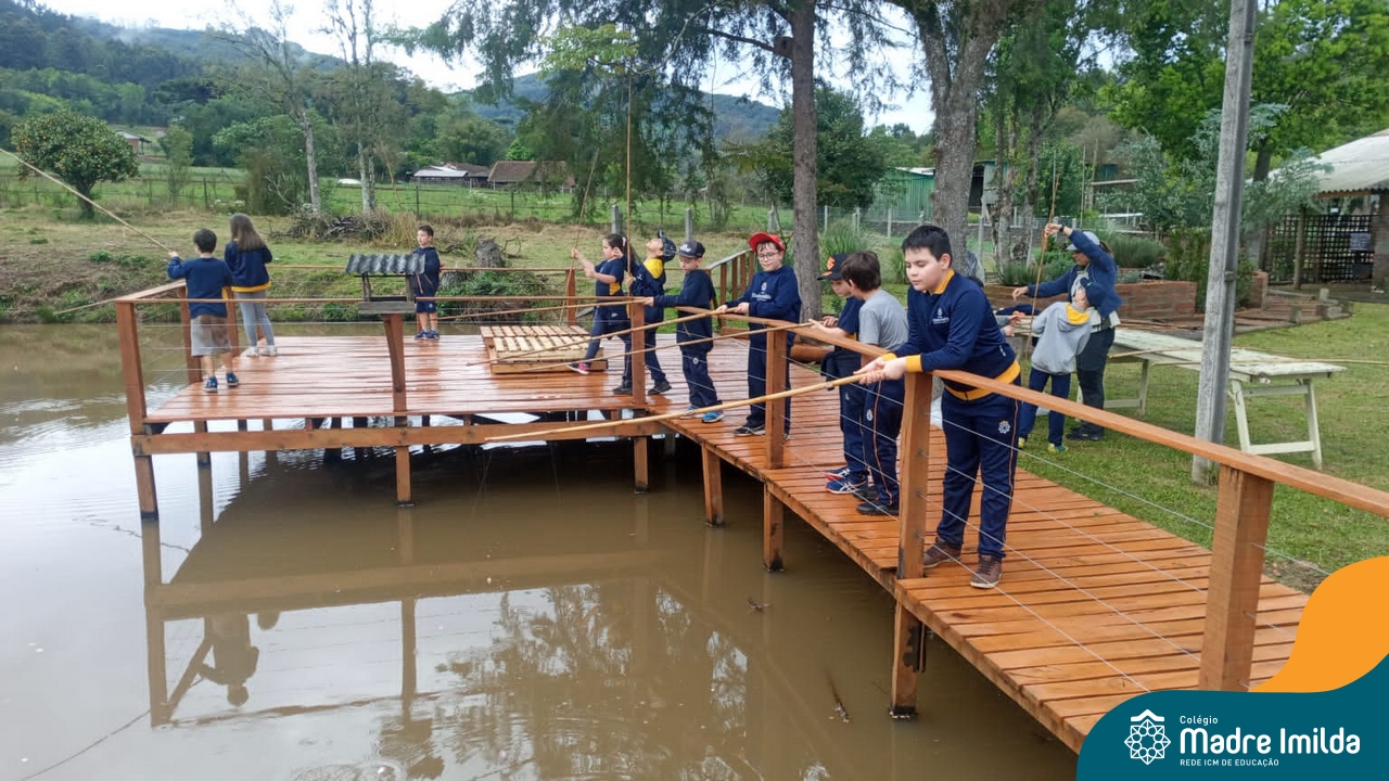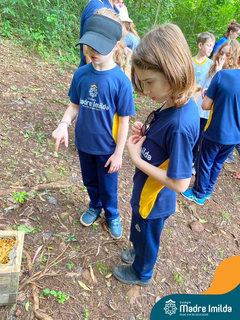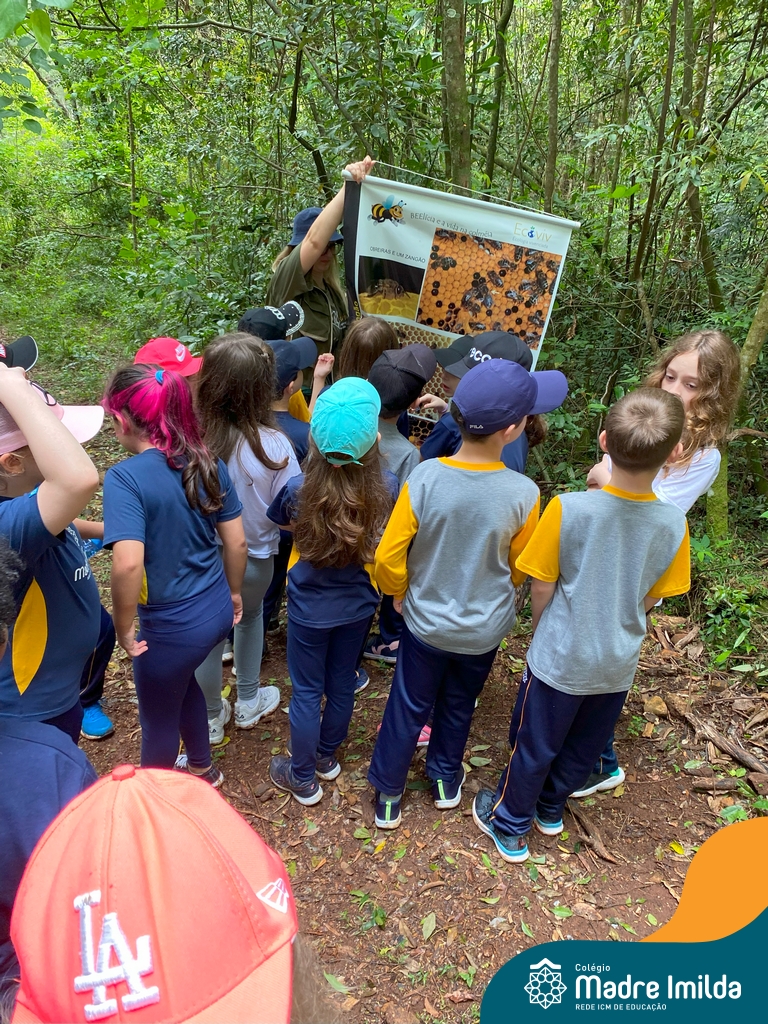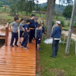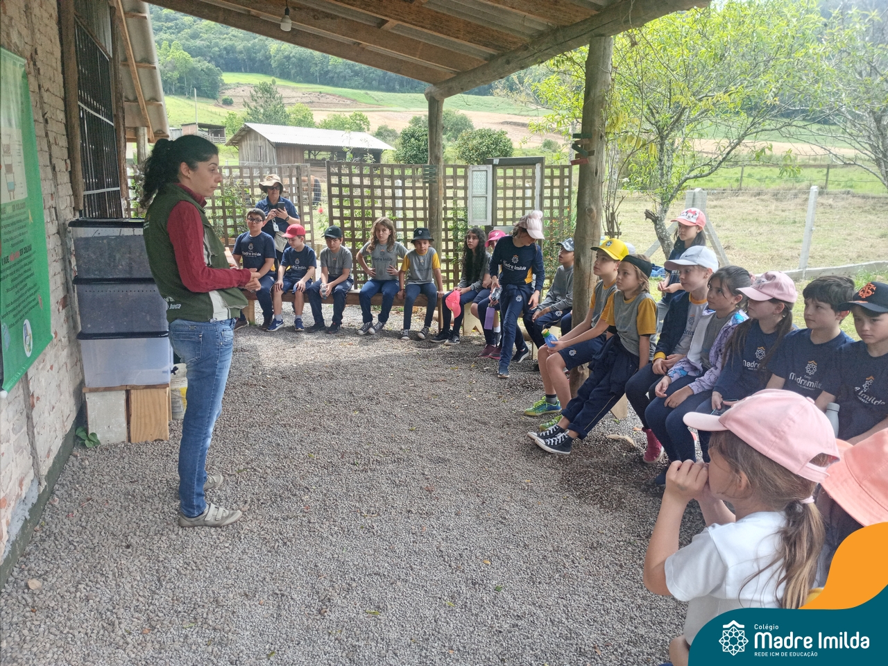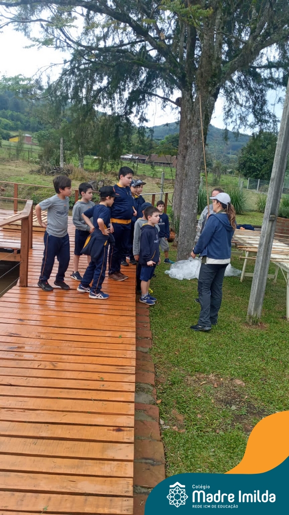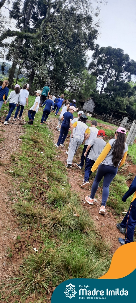 Os estudantes realizaram a Trilha Bom Pastor, onde puderam estudar a fauna e a flora da região, horta ecológica e produtos da época, abelhas, peixes, coelhos e produção de flores.