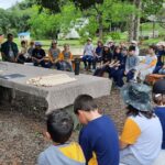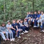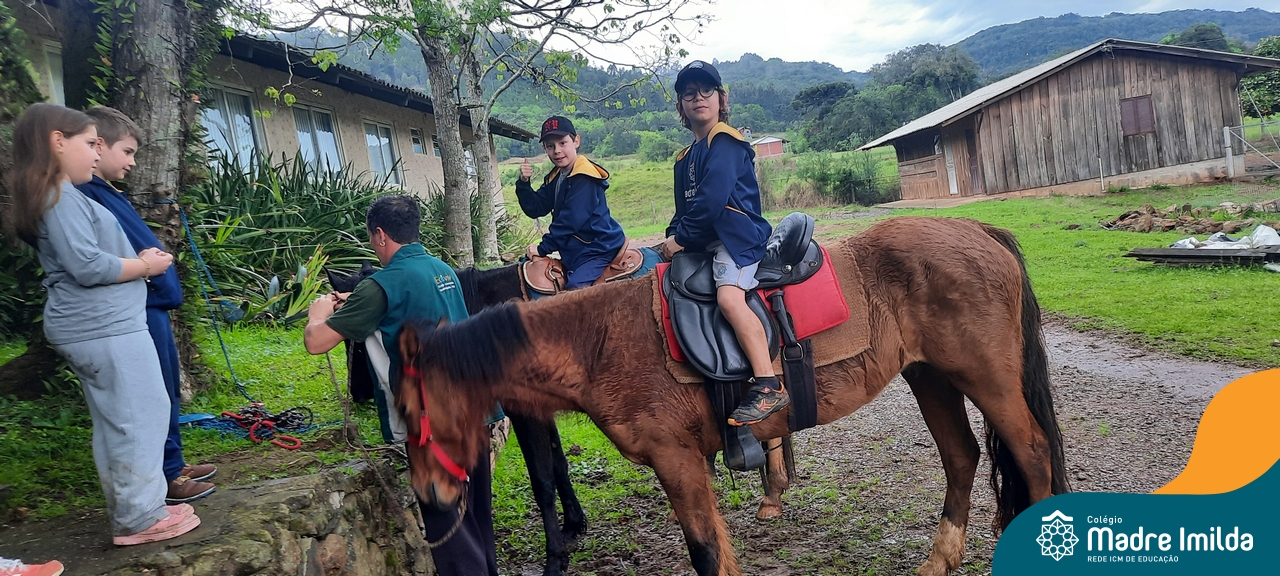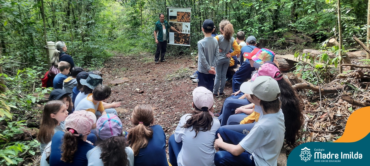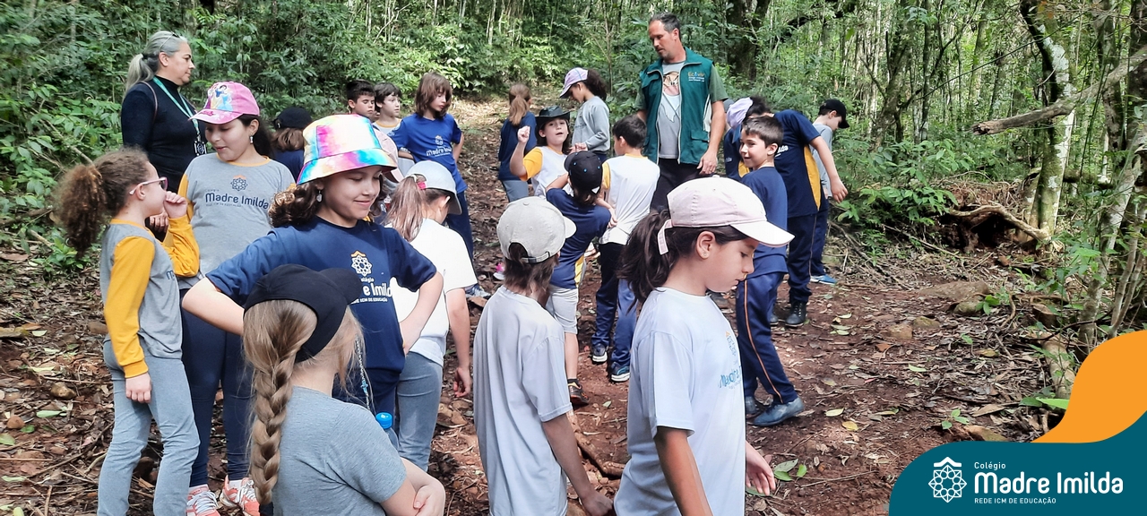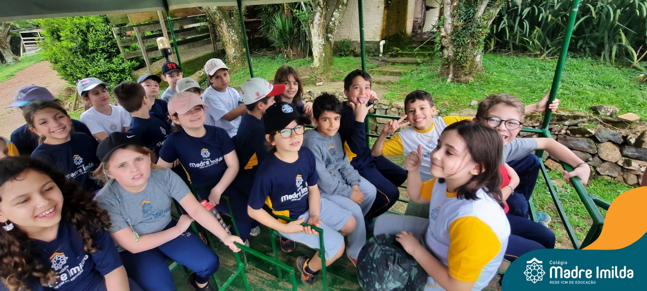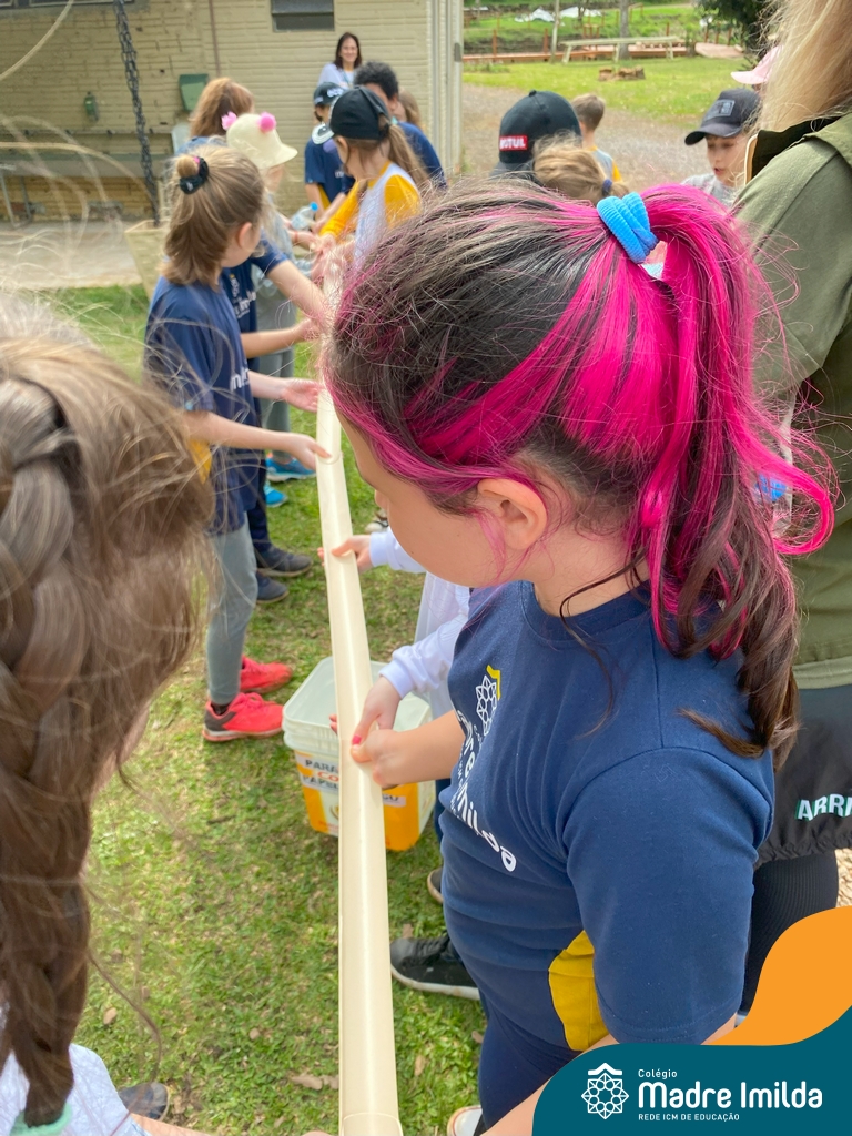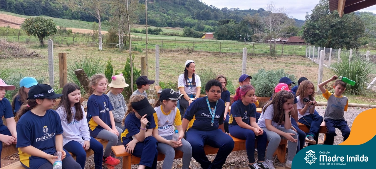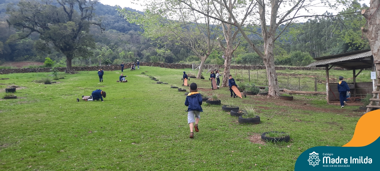 Os estudantes realizaram a Trilha Bom Pastor, onde puderam estudar a fauna e a flora da região, horta ecológica e produtos da época, abelhas, peixes, coelhos e produção de flores.