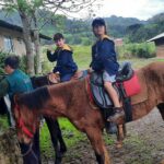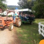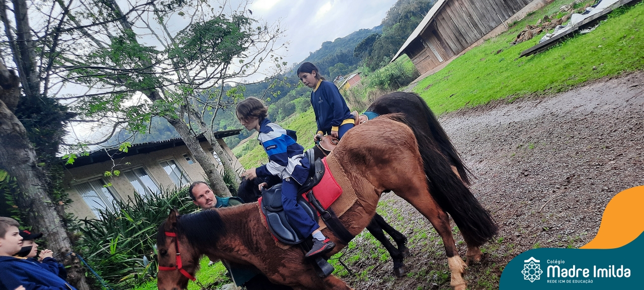 Após, foram ao Sítio do Riacho, onde os estudantes, juntamente com os monitores e guias tiveram a oportunidade de conhecer/ver animais domésticos como, porcos, ovelhas, galinhas, patos, pombos, coelhos, pôneis e gado leiteiro. Além disso, os estudantes puderam se divertir com balanços, carinho de lomba, teleférico, pescaria, passeio de carretão com trator.