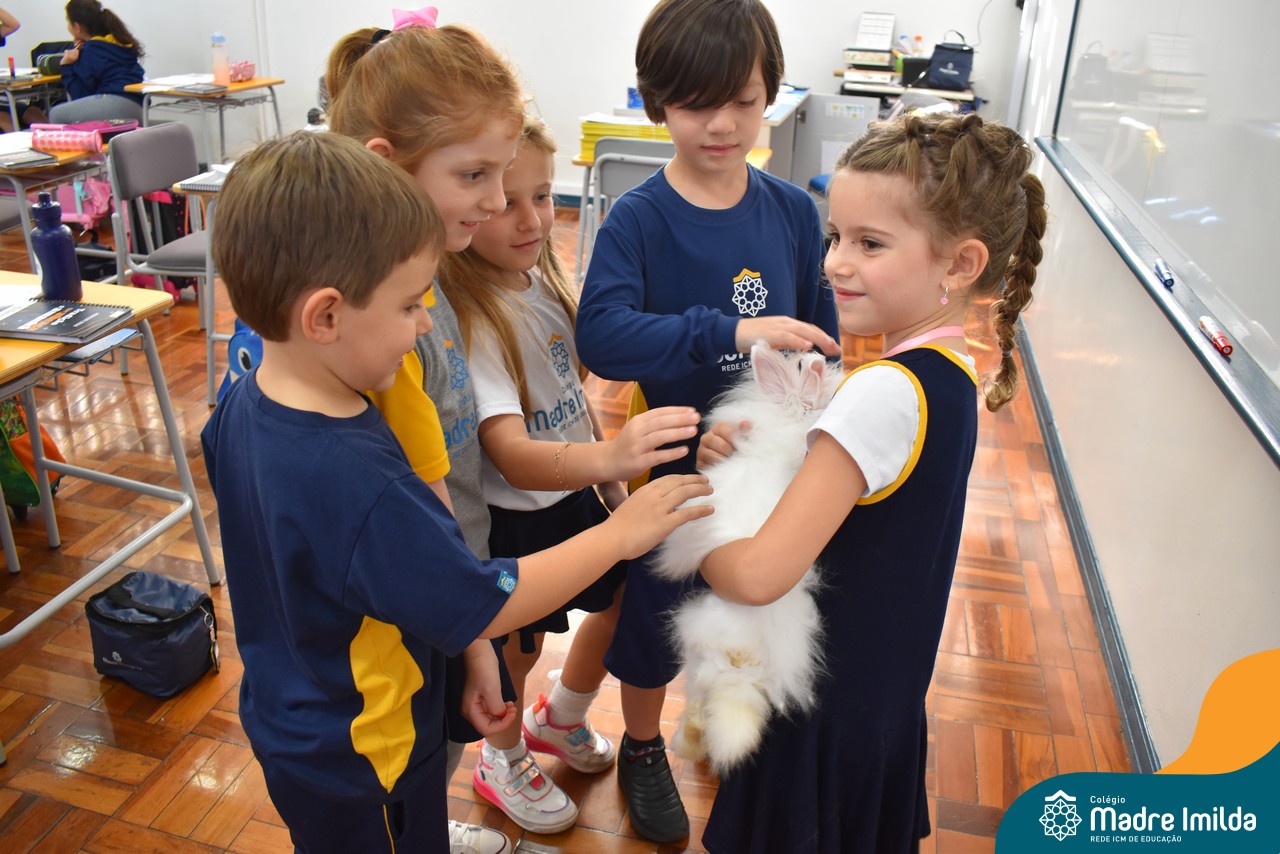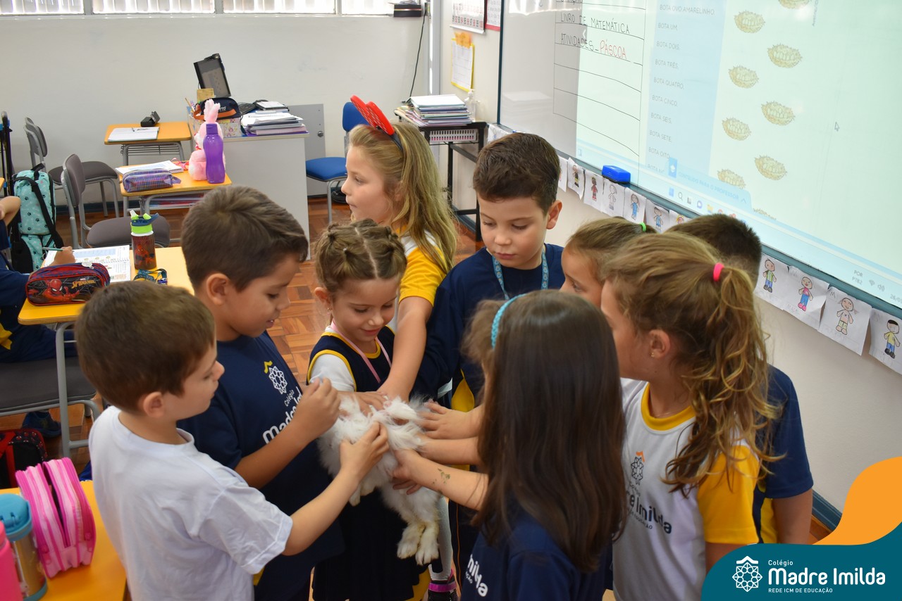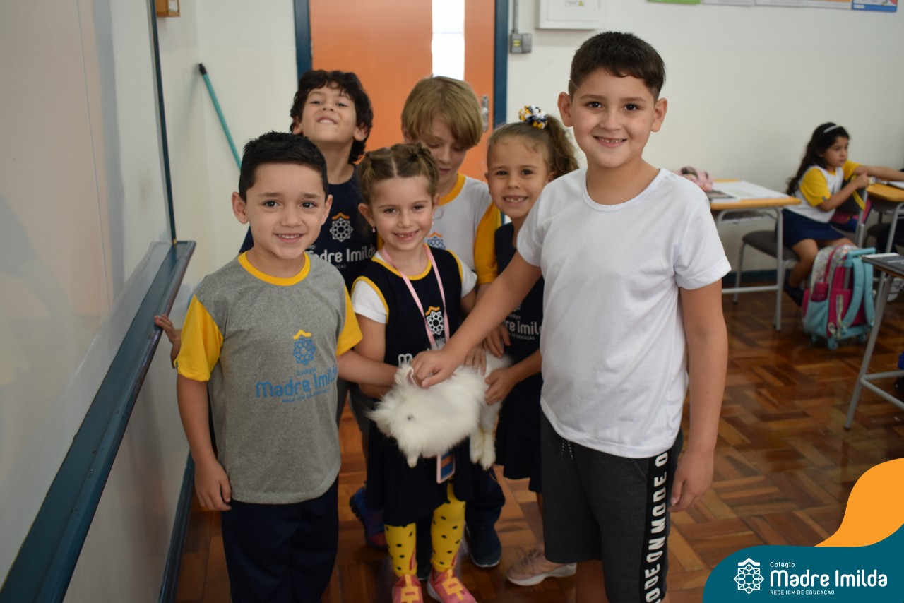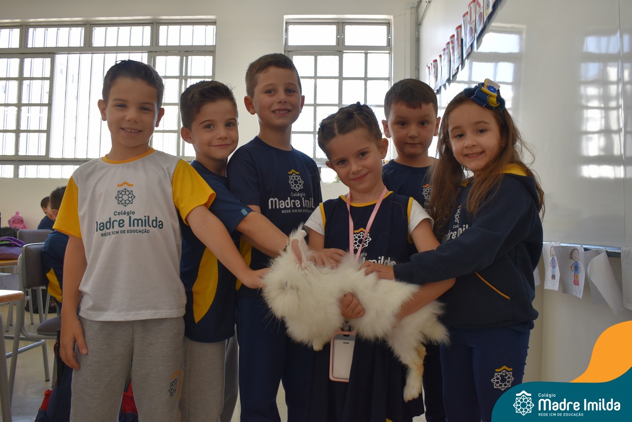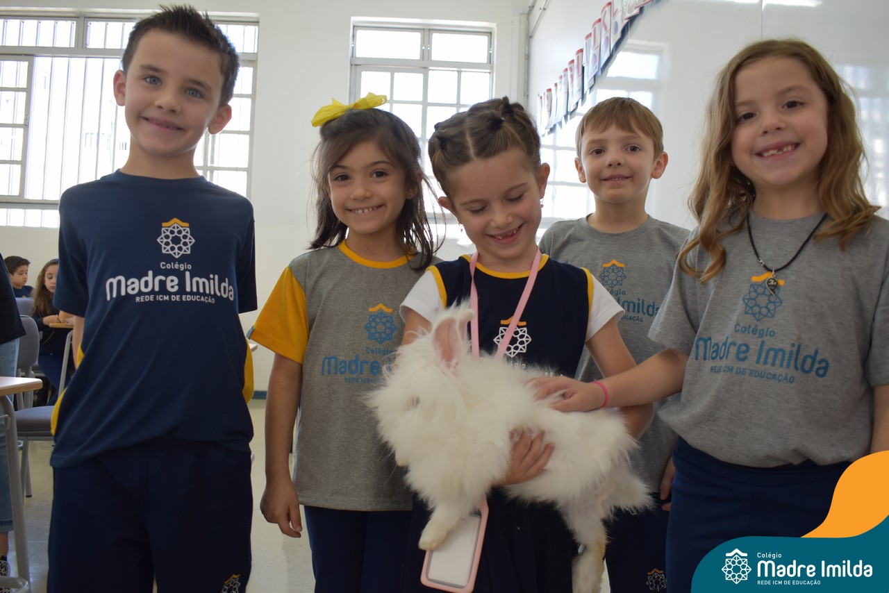 No clima festivo da Páscoa, os estudantes do 1º ano do Colégio Madre Imilda foram surpreendidos com uma visita muito especial: os adoráveis coelhos de estimação Buny e Toco! Esta experiência única foi proporcionada pelas alunas Helena Megiolaro Machado e Mariah Gazzola Dalle Laste.
