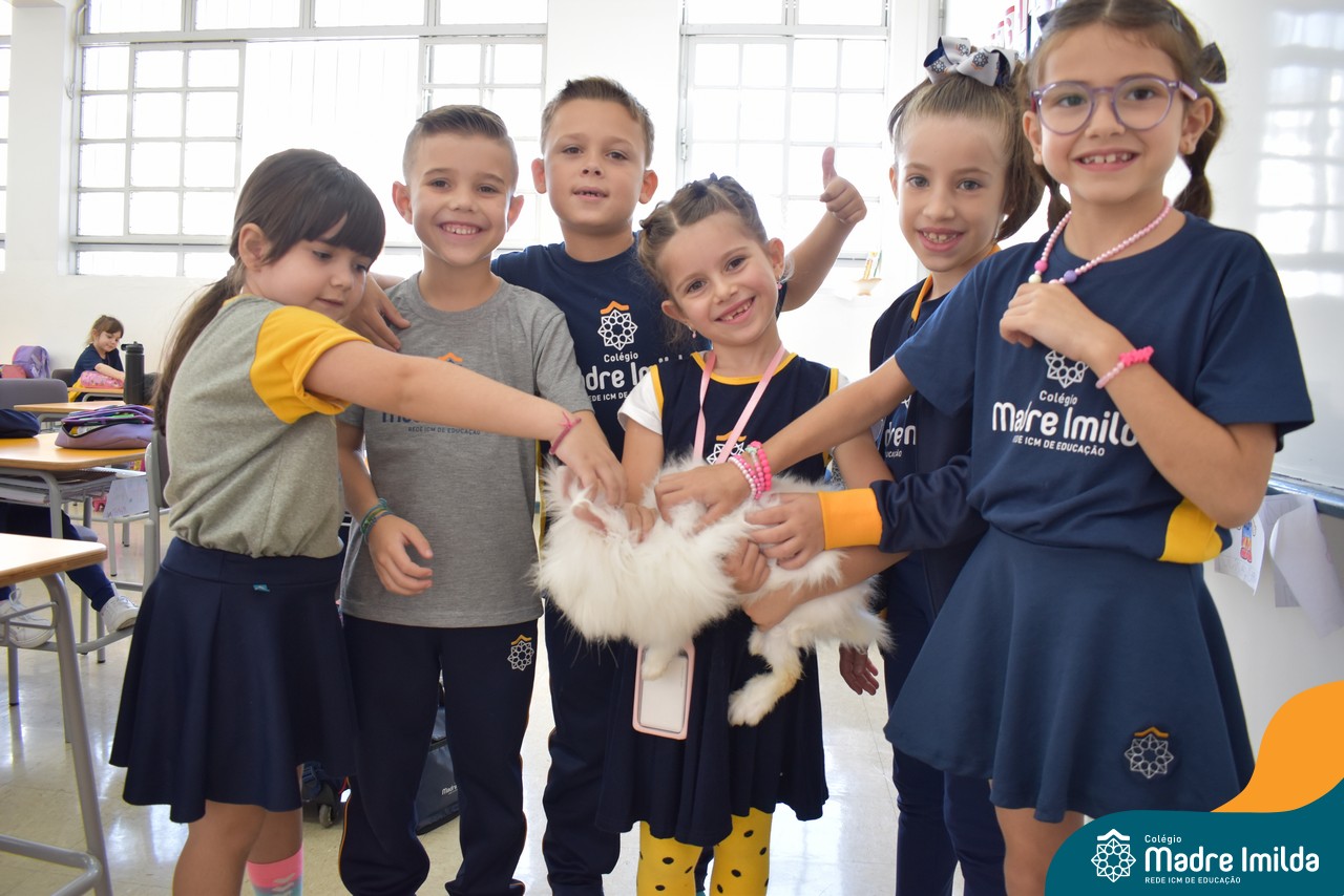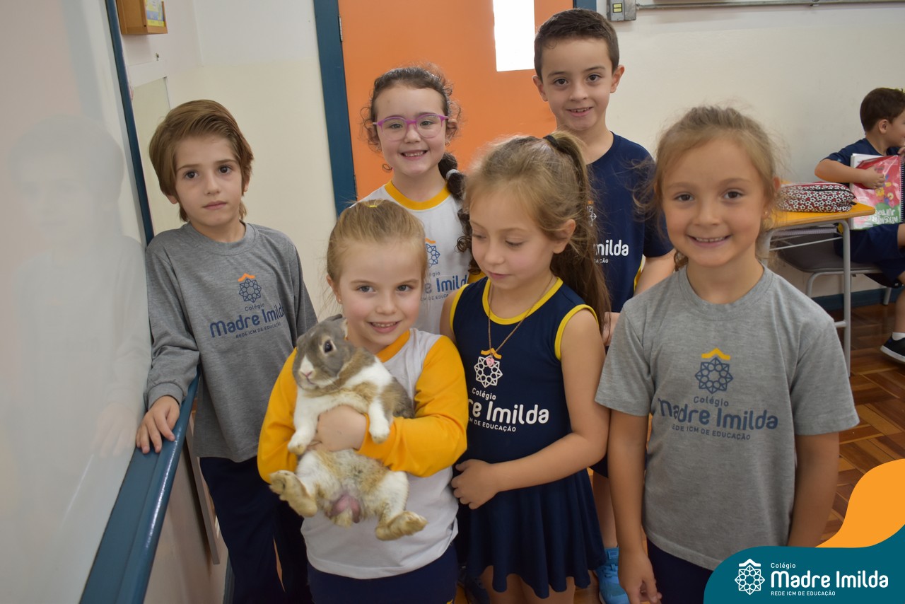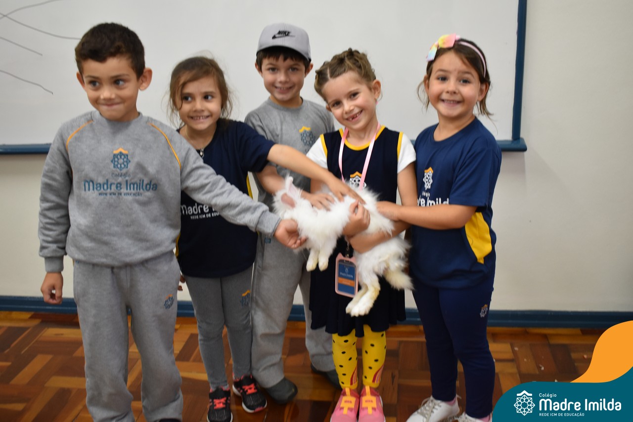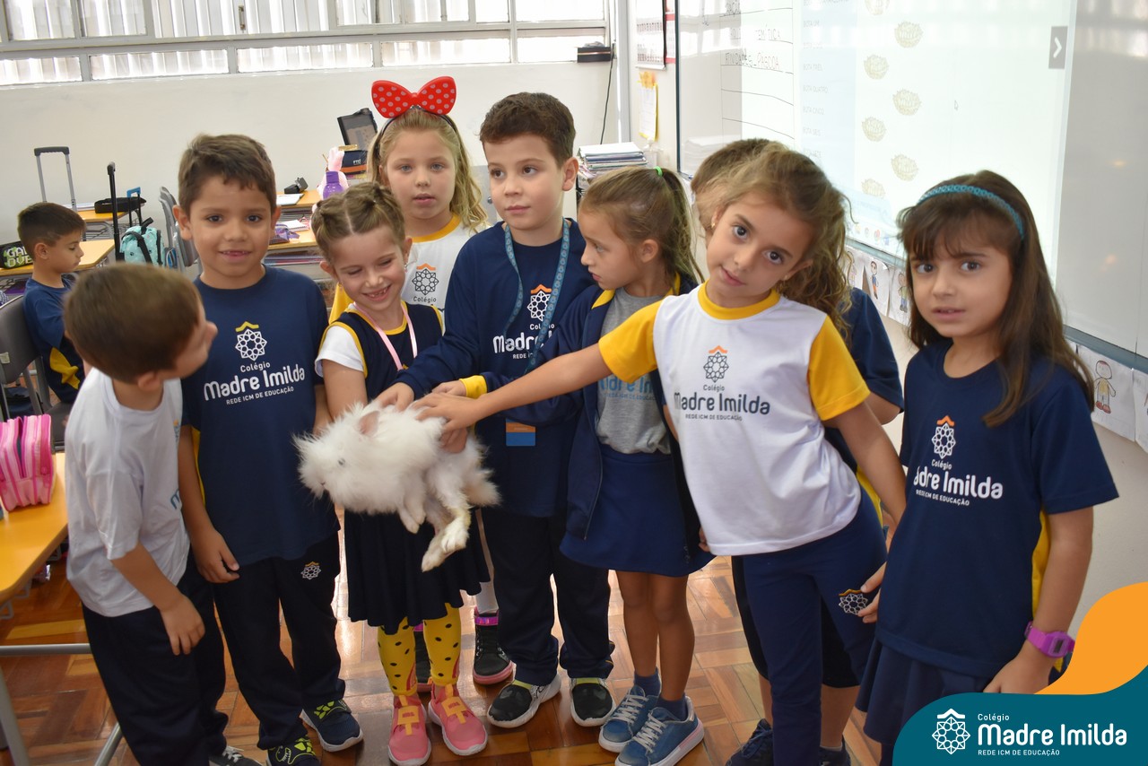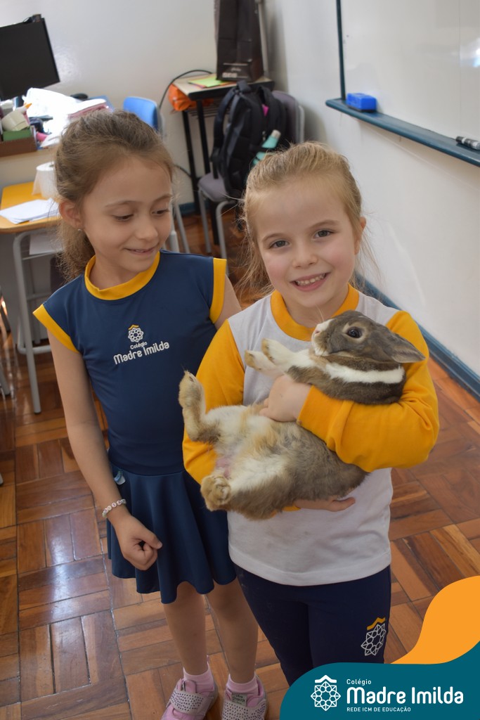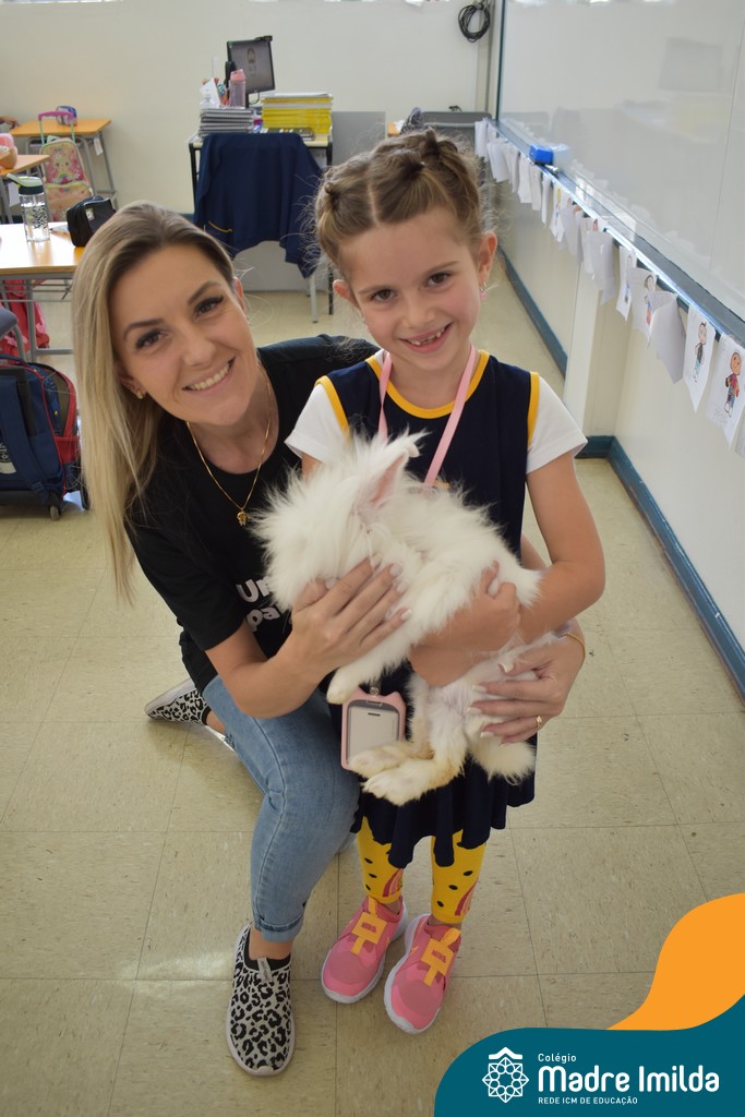 No clima festivo da Páscoa, os estudantes do 1º ano do Colégio Madre Imilda foram surpreendidos com uma visita muito especial: os adoráveis coelhos de estimação Buny e Toco! Esta experiência única foi proporcionada pelas alunas Helena Megiolaro Machado e Mariah Gazzola Dalle Laste.