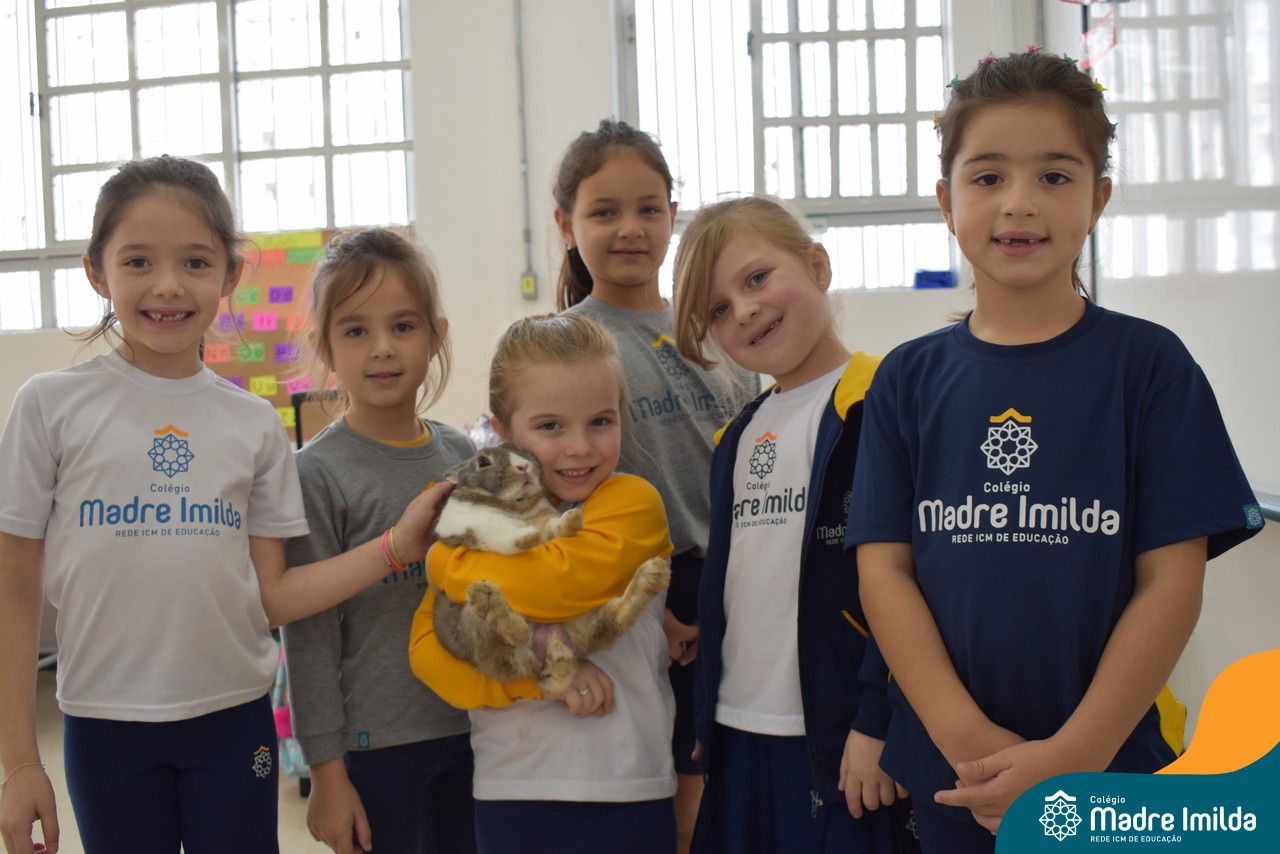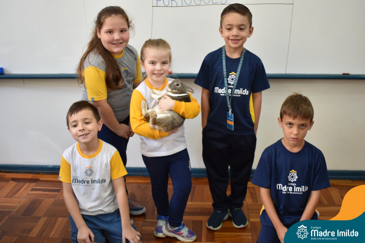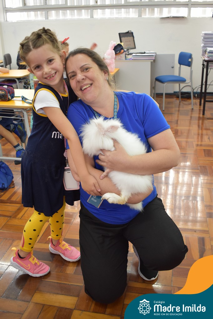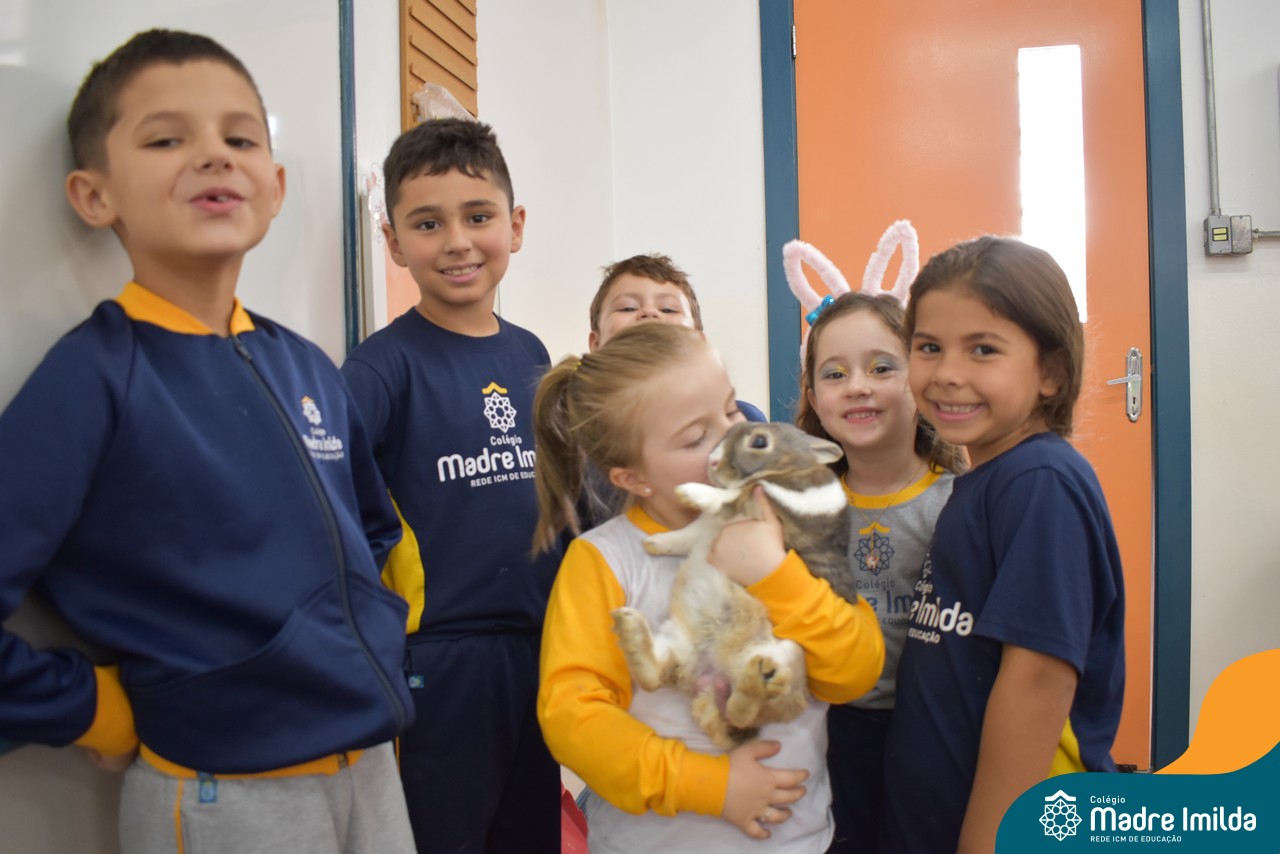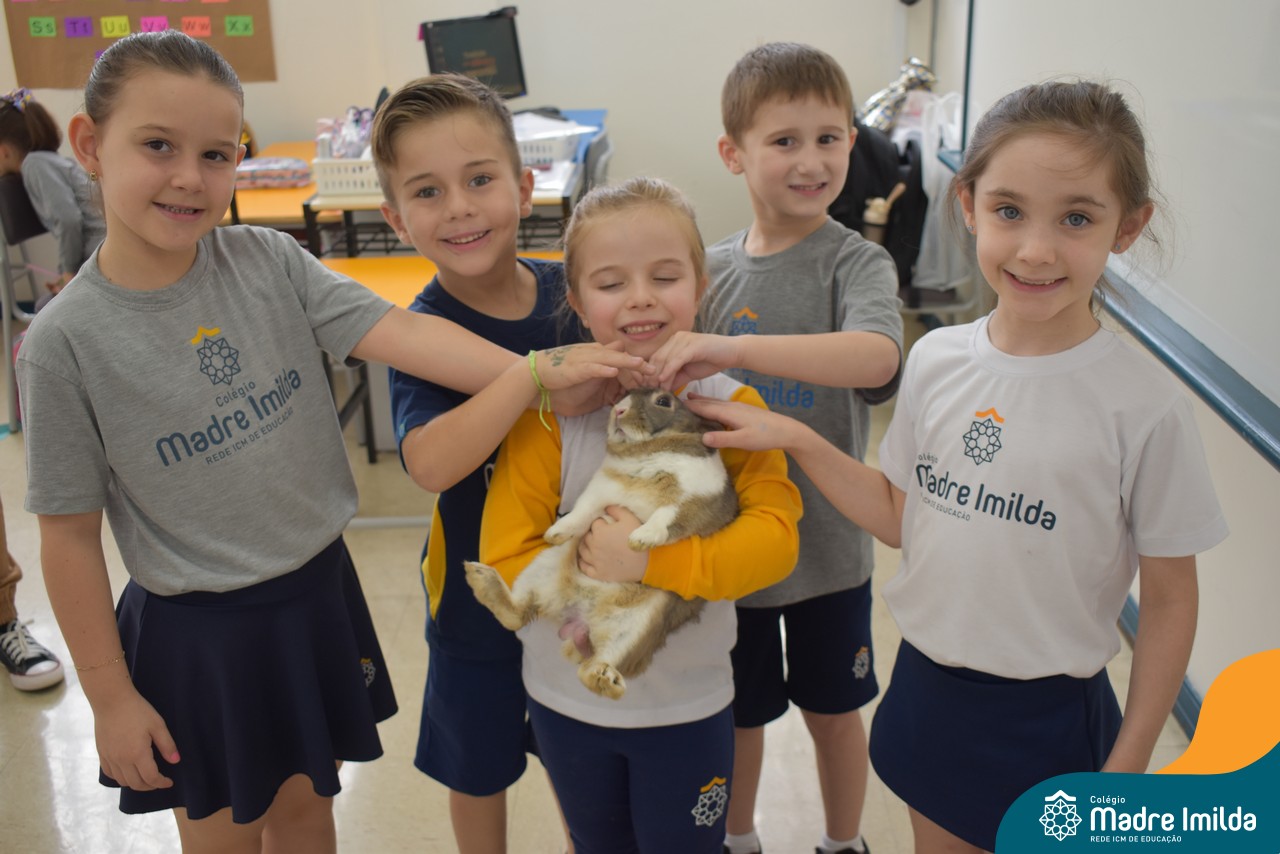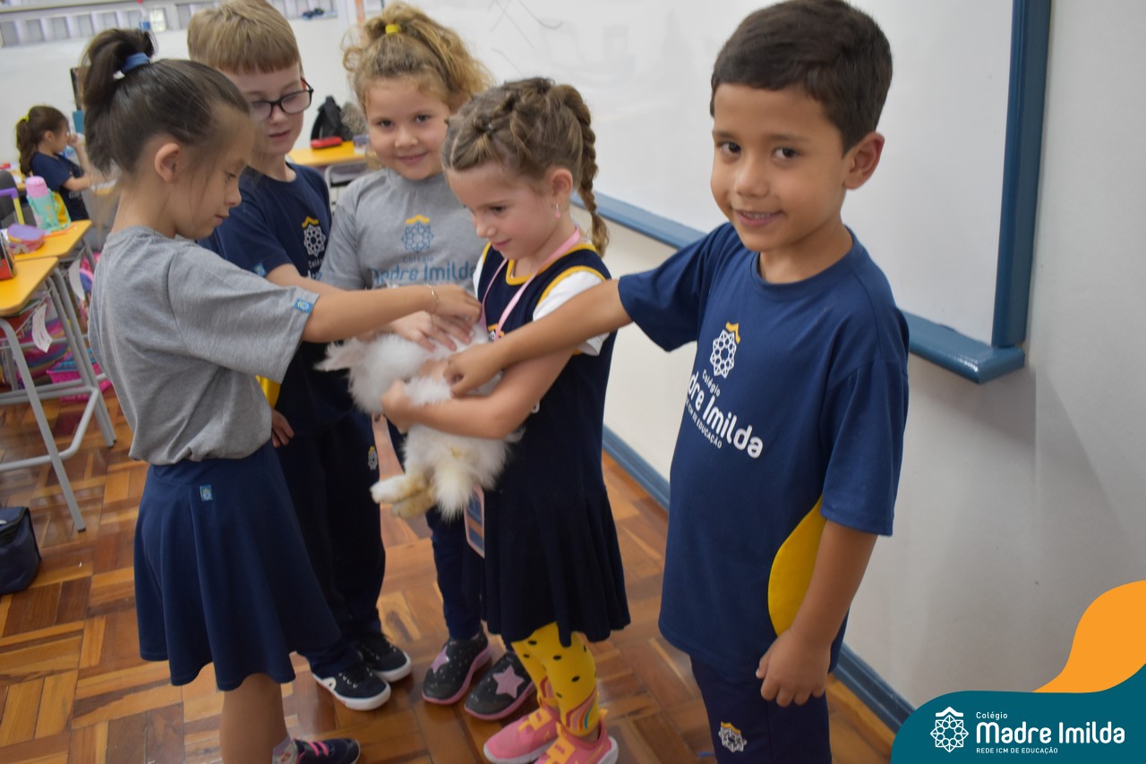 No clima festivo da Páscoa, os estudantes do 1º ano do Colégio Madre Imilda foram surpreendidos com uma visita muito especial: os adoráveis coelhos de estimação Buny e Toco! Esta experiência única foi proporcionada pelas alunas Helena Megiolaro Machado e Mariah Gazzola Dalle Laste.