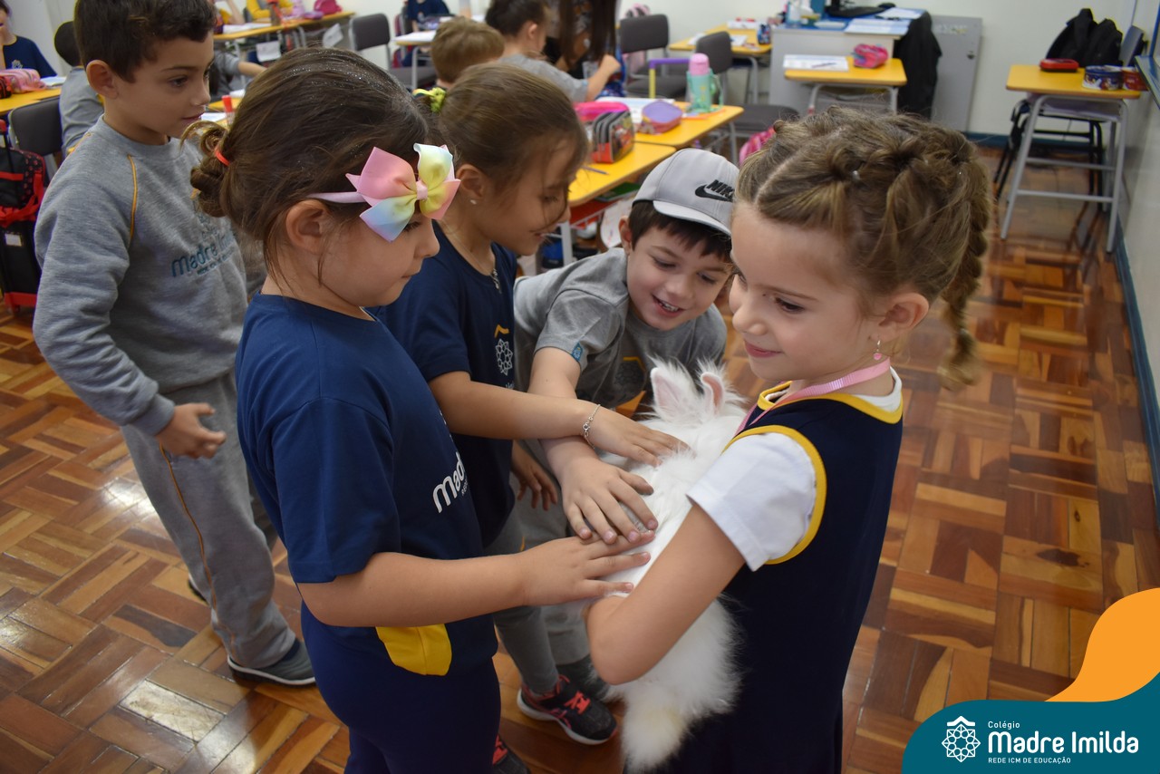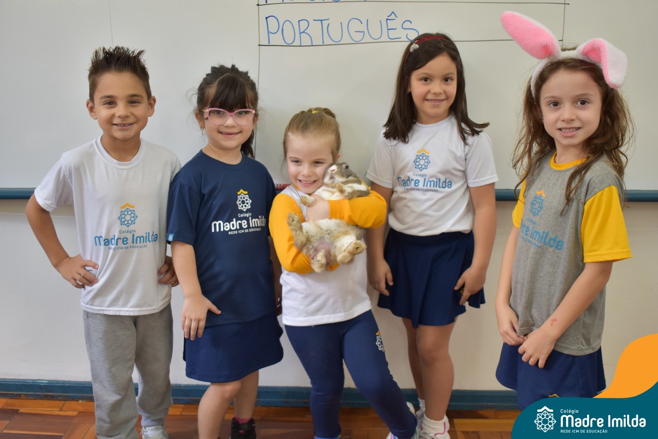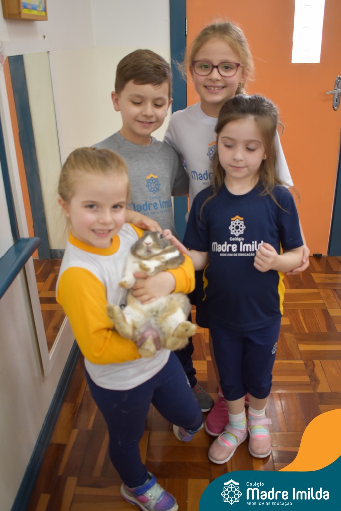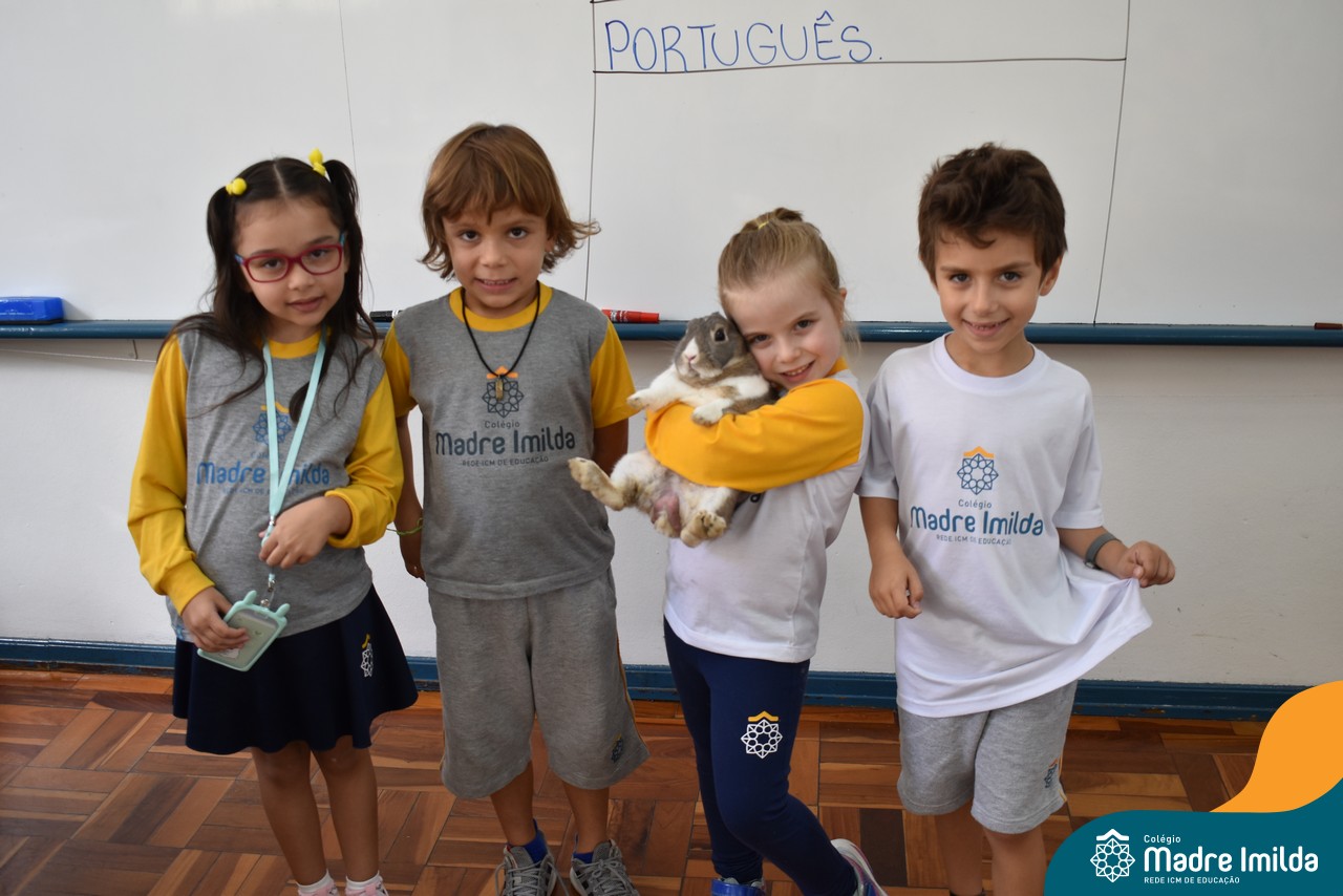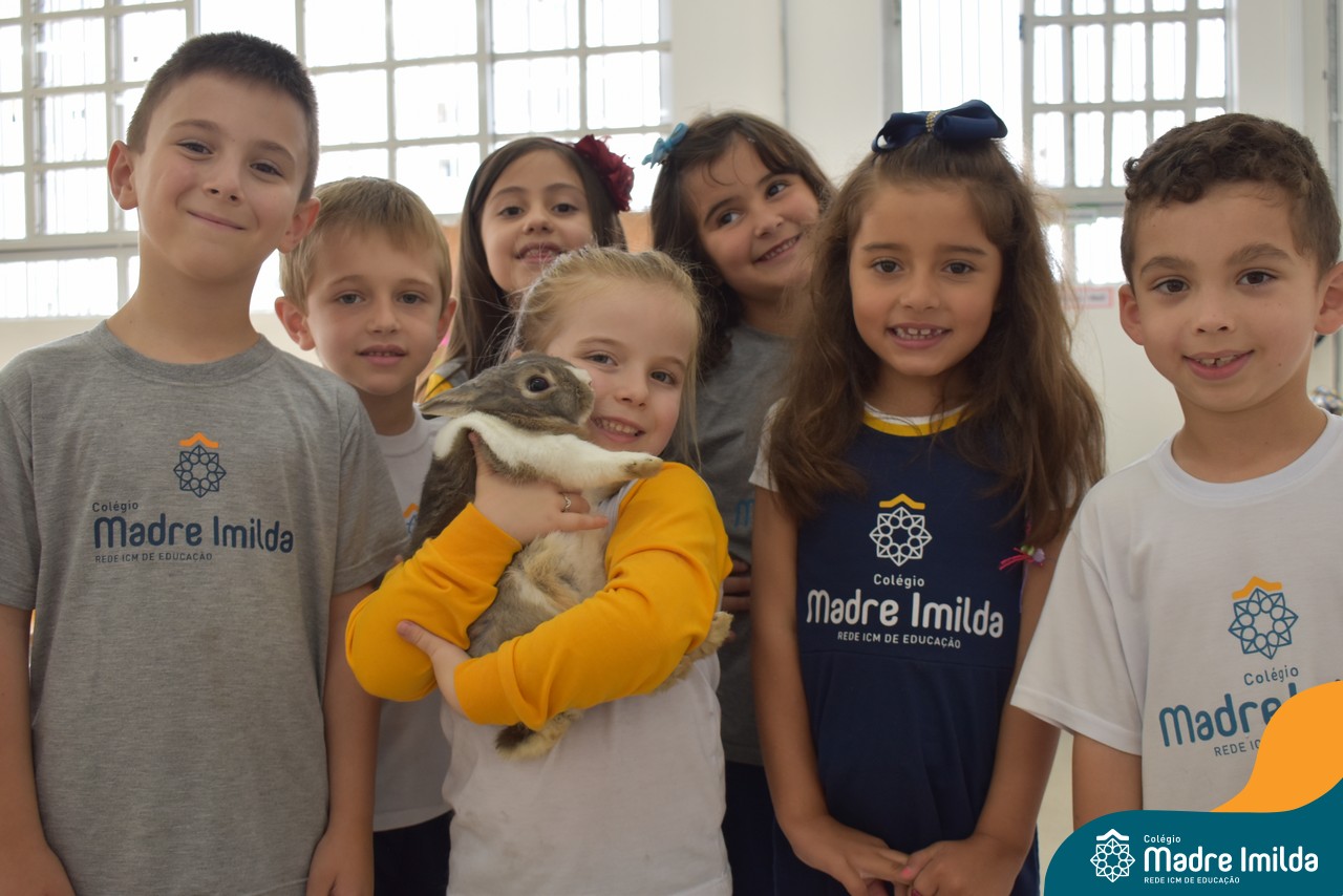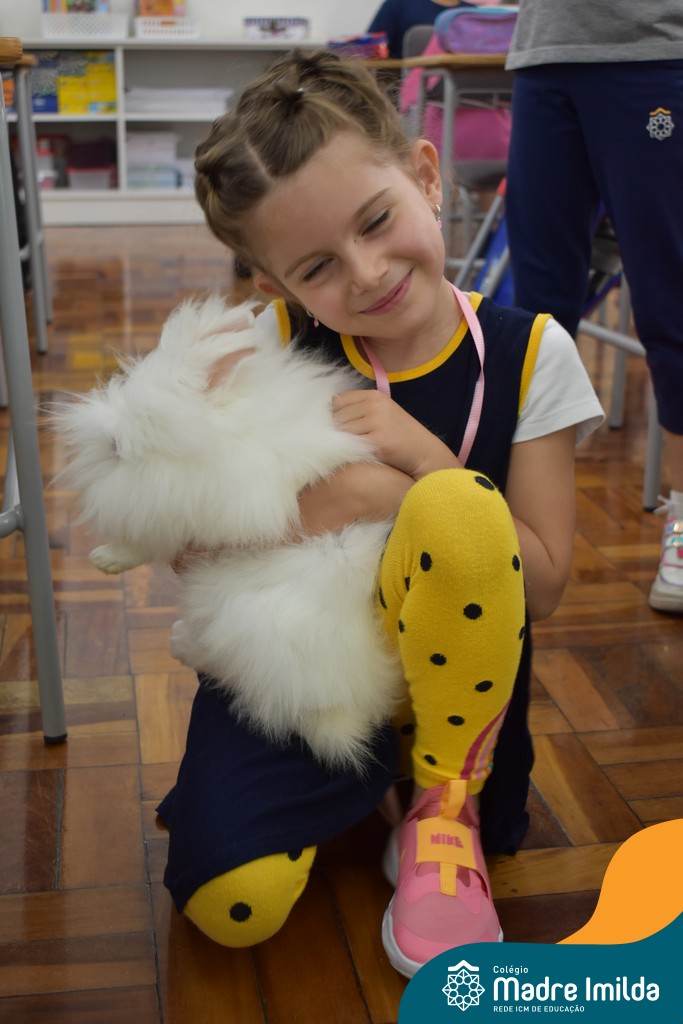 No clima festivo da Páscoa, os estudantes do 1º ano do Colégio Madre Imilda foram surpreendidos com uma visita muito especial: os adoráveis coelhos de estimação Buny e Toco! Esta experiência única foi proporcionada pelas alunas Helena Megiolaro Machado e Mariah Gazzola Dalle Laste.
