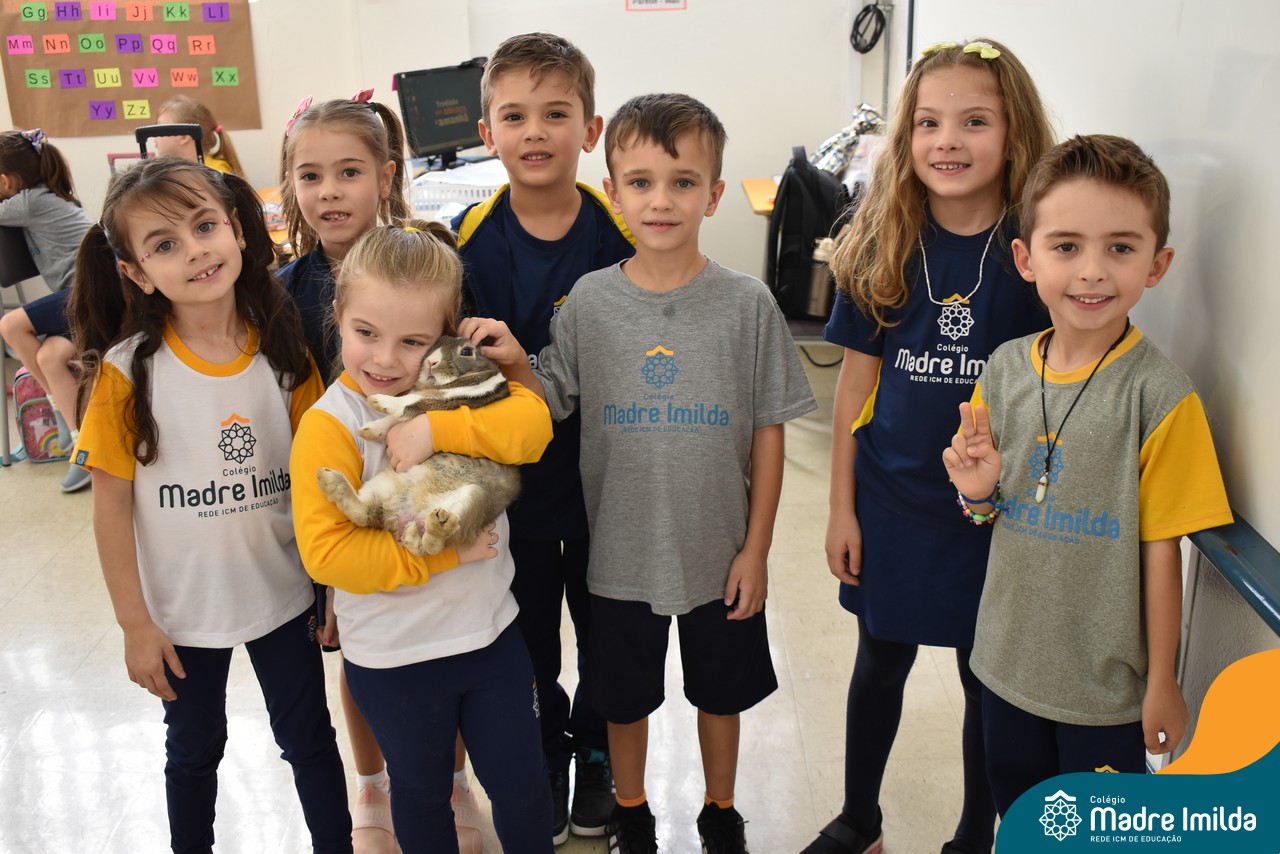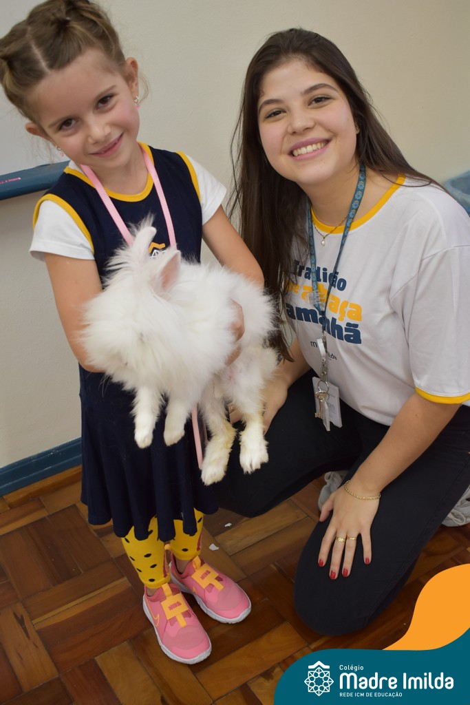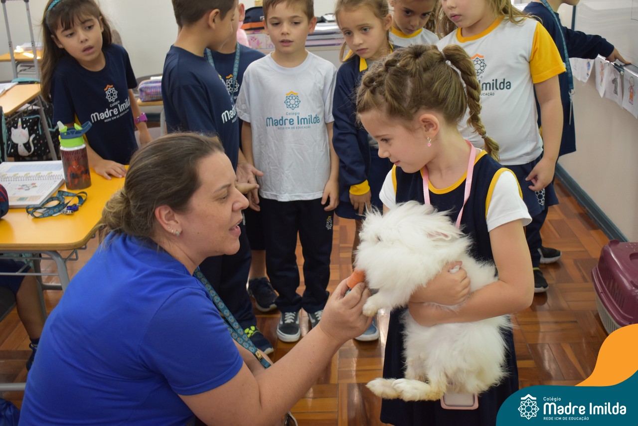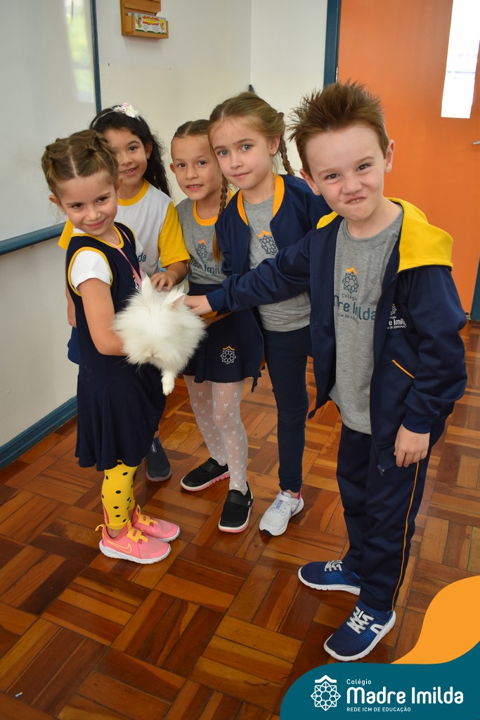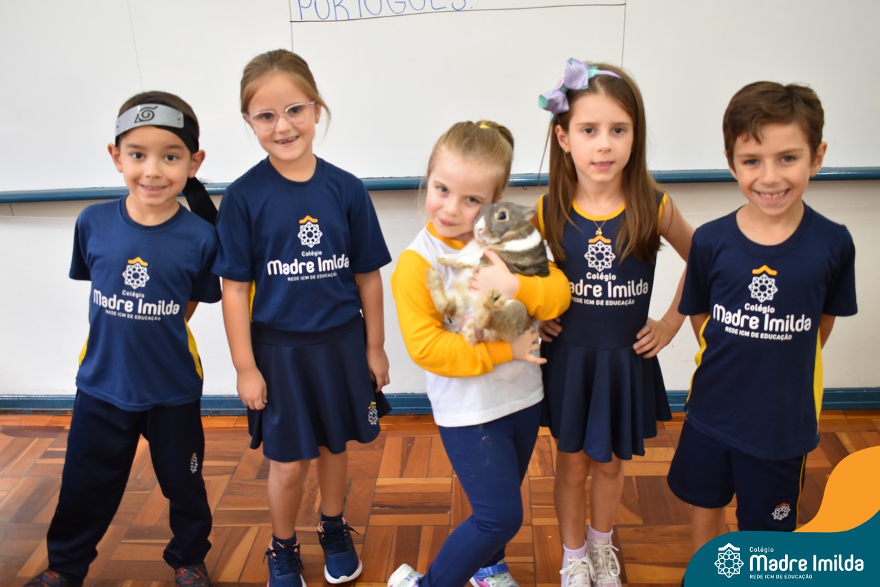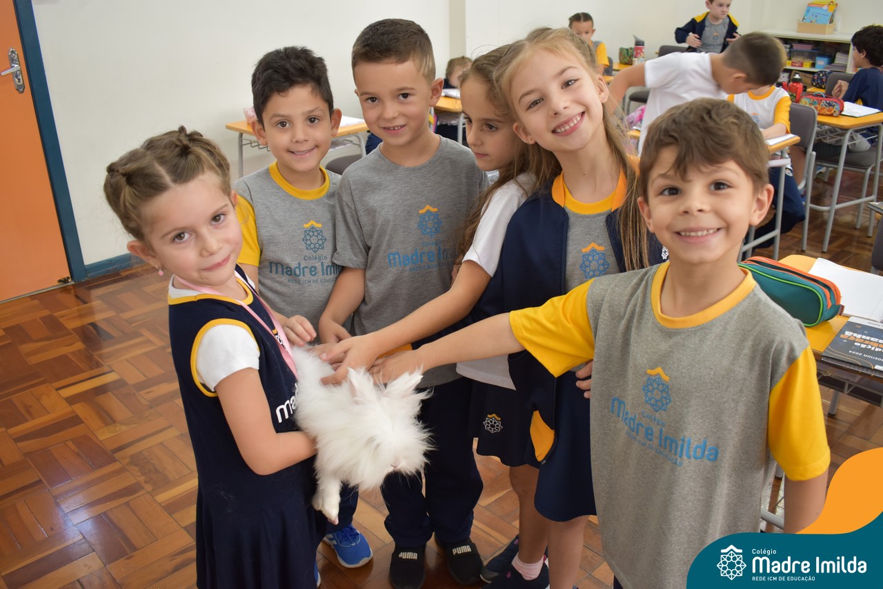 No clima festivo da Páscoa, os estudantes do 1º ano do Colégio Madre Imilda foram surpreendidos com uma visita muito especial: os adoráveis coelhos de estimação Buny e Toco! Esta experiência única foi proporcionada pelas alunas Helena Megiolaro Machado e Mariah Gazzola Dalle Laste.
