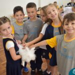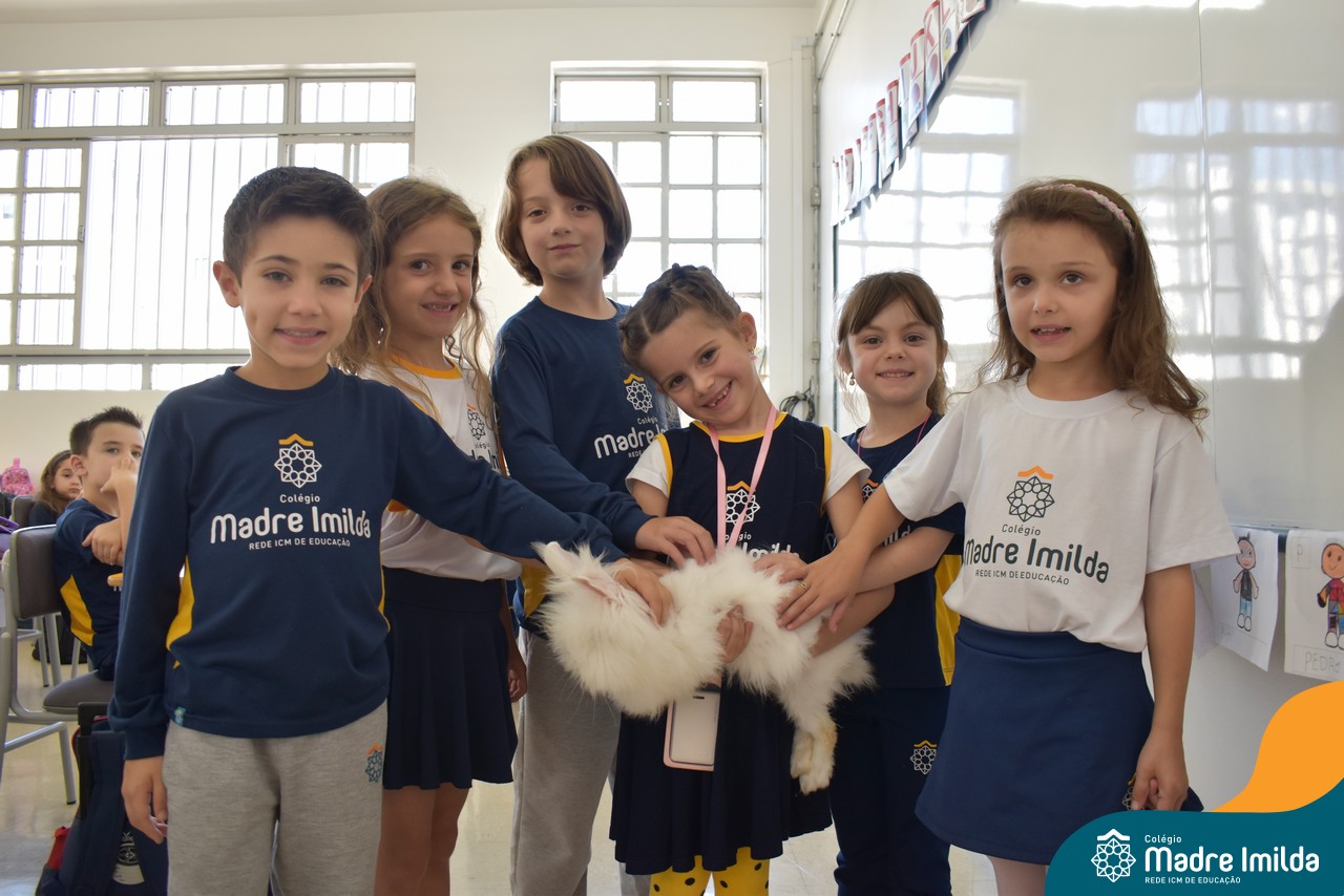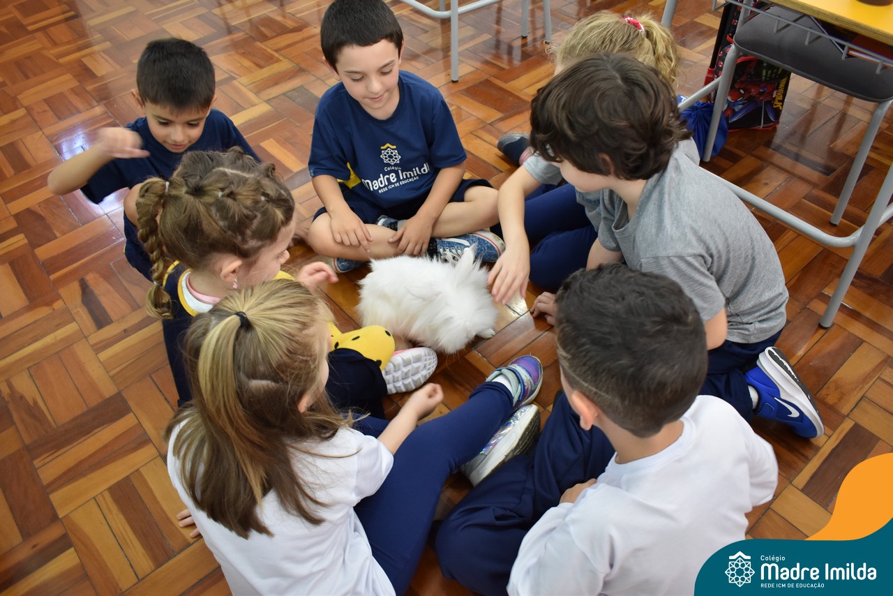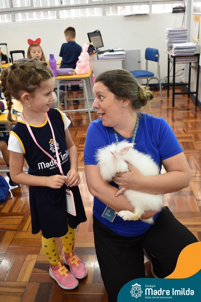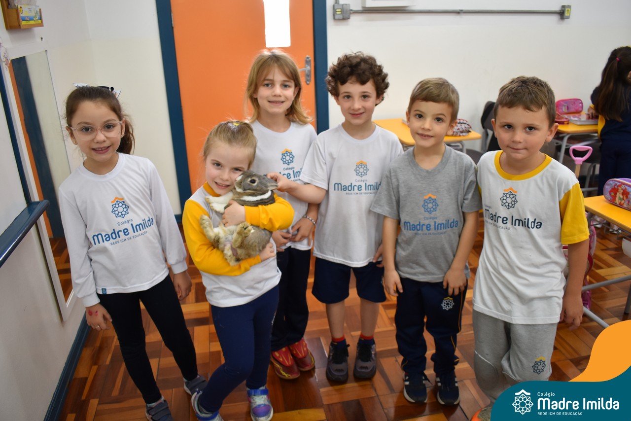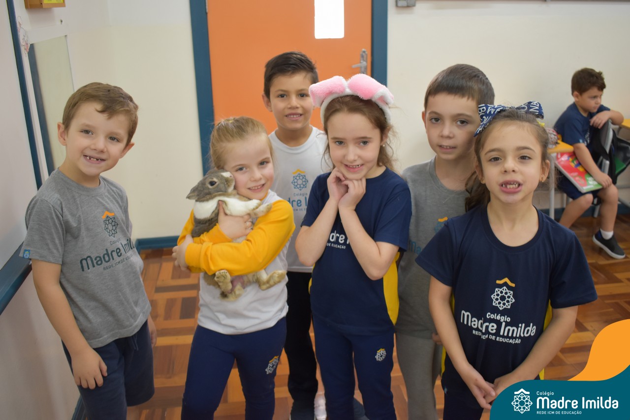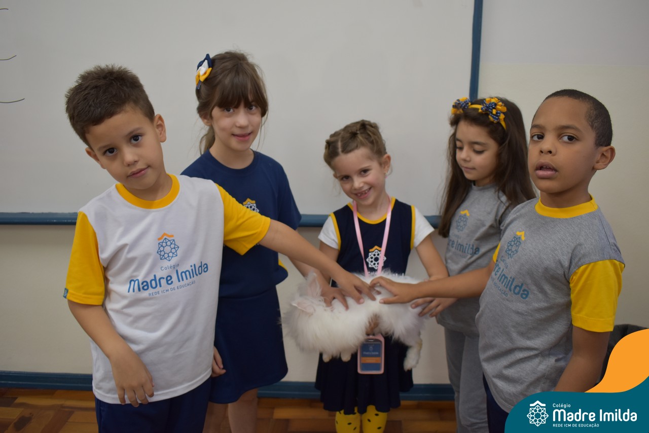 No clima festivo da Páscoa, os estudantes do 1º ano do Colégio Madre Imilda foram surpreendidos com uma visita muito especial: os adoráveis coelhos de estimação Buny e Toco! Esta experiência única foi proporcionada pelas alunas Helena Megiolaro Machado e Mariah Gazzola Dalle Laste.