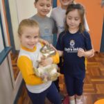 Além disso, a visita serviu como uma oportunidade educativa para explorar os significados e símbolos associados à Páscoa de uma maneira divertida e interativa. Os alunos puderam aprender sobre a importância da data, suas tradições e como os coelhos se tornaram um dos ícones mais queridos desta celebração.
