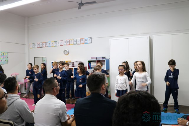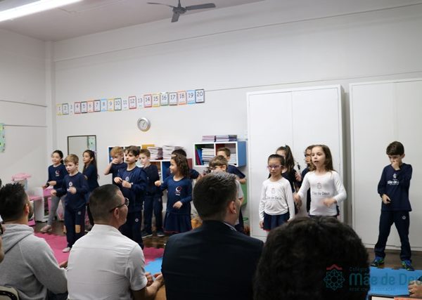 Os estudantes do 1º ano preparam uma linda apresentação para homenagear os Papais!
