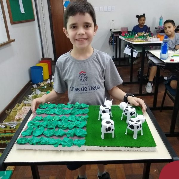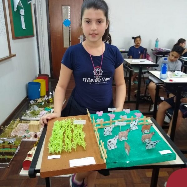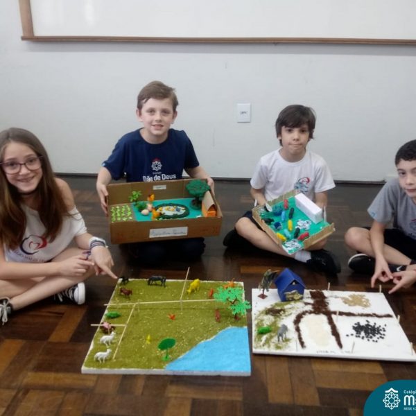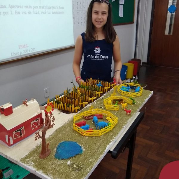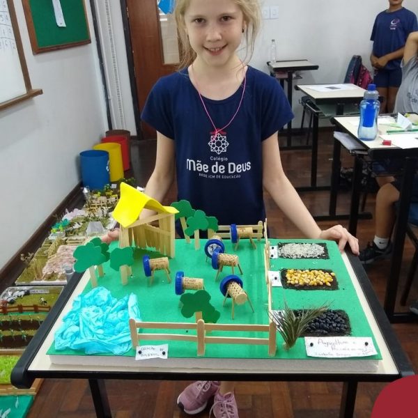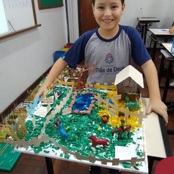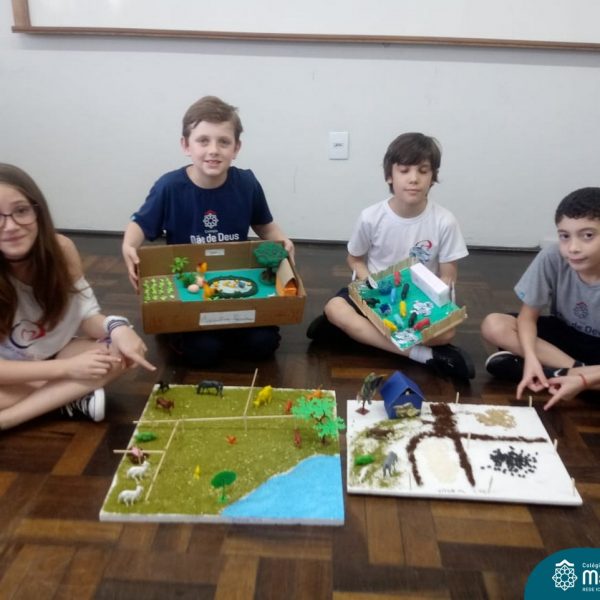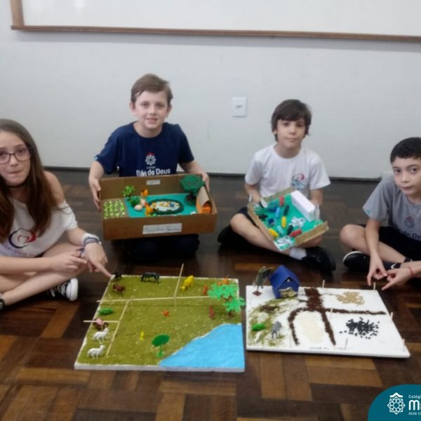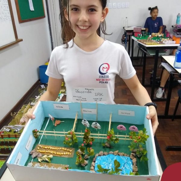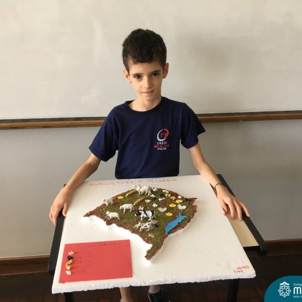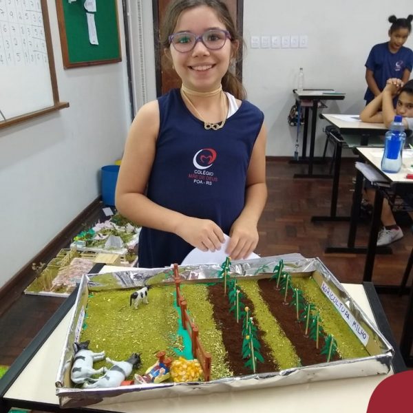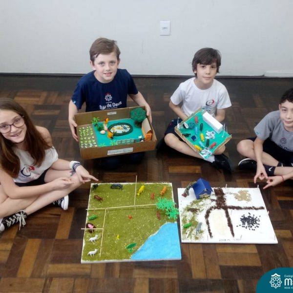 Os alunos das turmas do 4º Ano, durante o 3º trimestre foram desafiados a construírem e organizarem representações da nossa agricultura e pecuária através de maquetes. Prepararam seus referenciais, selecionaram e criaram imagens, apresentaram em sala de aula seus trabalhos e refletiram sobre o significado de identidade e de pertencimento do solo gaúcho. Assim, contextualizamos nossos conteúdos através de uma abordagem crítica, construtora e comprometida com o educar, aprofundando os conhecimentos na área de Ciências Humanas, a qual é um espaço privilegiado e de grande importância para o desenvolvimento da consciência de si e de sua inserção na sociedade.