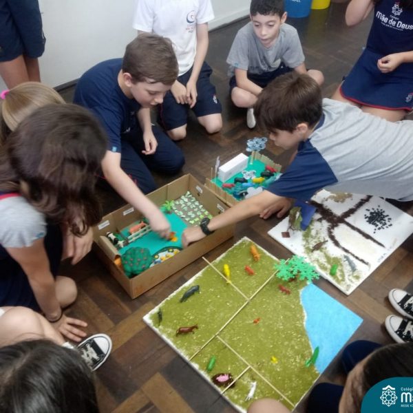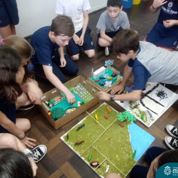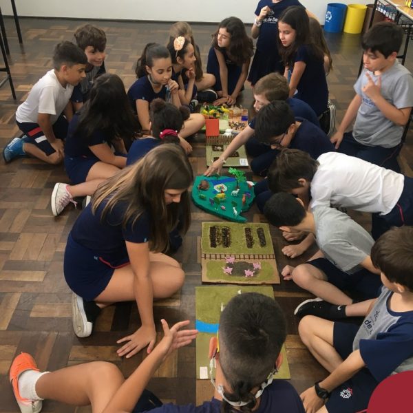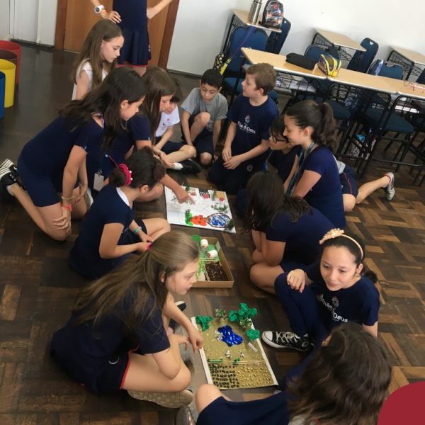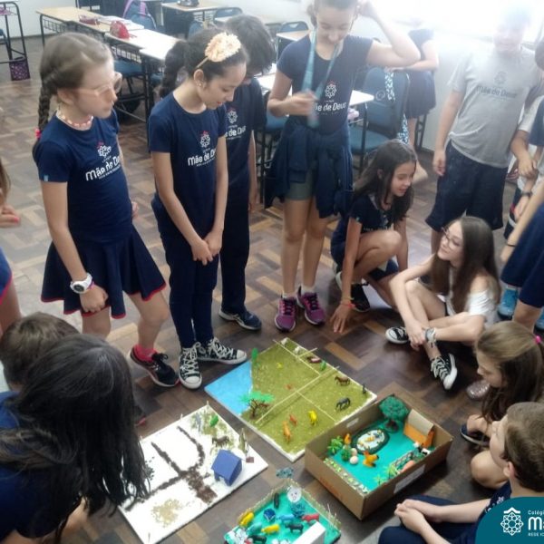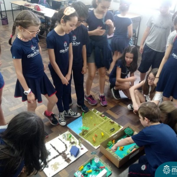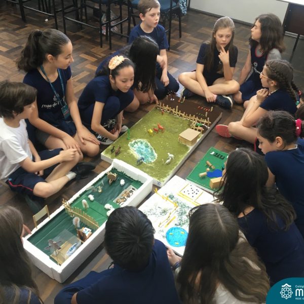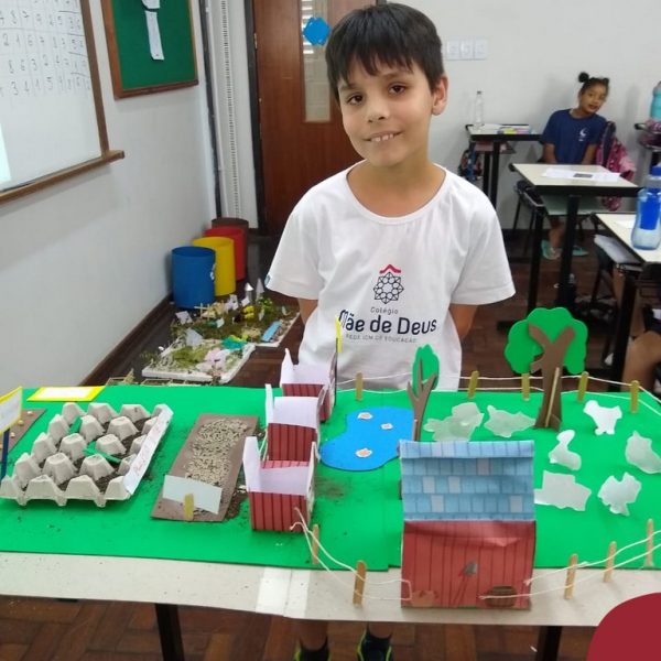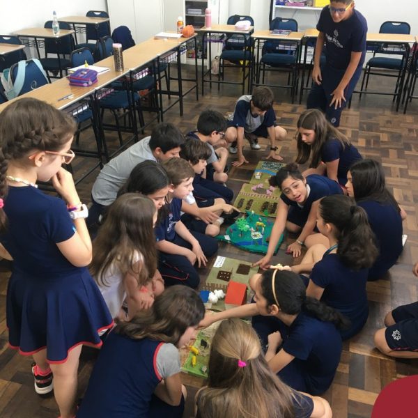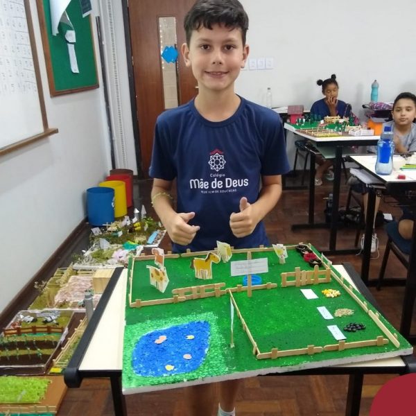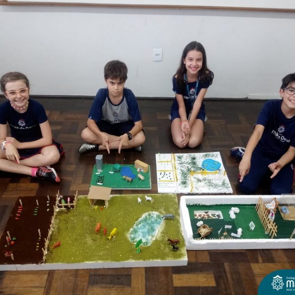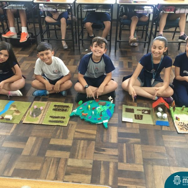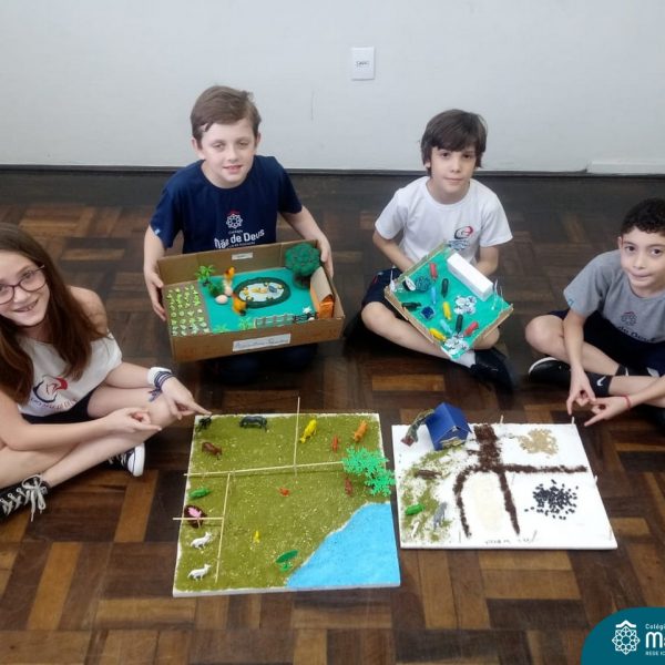 Os alunos das turmas do 4º Ano, durante o 3º trimestre foram desafiados a construírem e organizarem representações da nossa agricultura e pecuária através de maquetes. Prepararam seus referenciais, selecionaram e criaram imagens, apresentaram em sala de aula seus trabalhos e refletiram sobre o significado de identidade e de pertencimento do solo gaúcho. Assim, contextualizamos nossos conteúdos através de uma abordagem crítica, construtora e comprometida com o educar, aprofundando os conhecimentos na área de Ciências Humanas, a qual é um espaço privilegiado e de grande importância para o desenvolvimento da consciência de si e de sua inserção na sociedade.