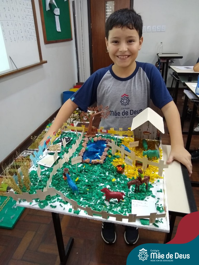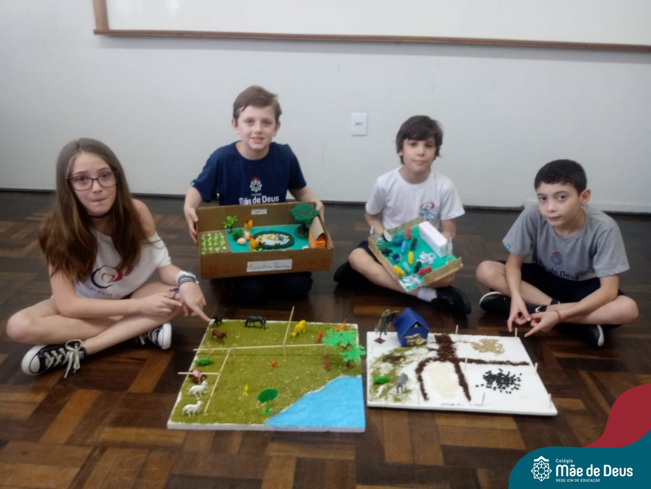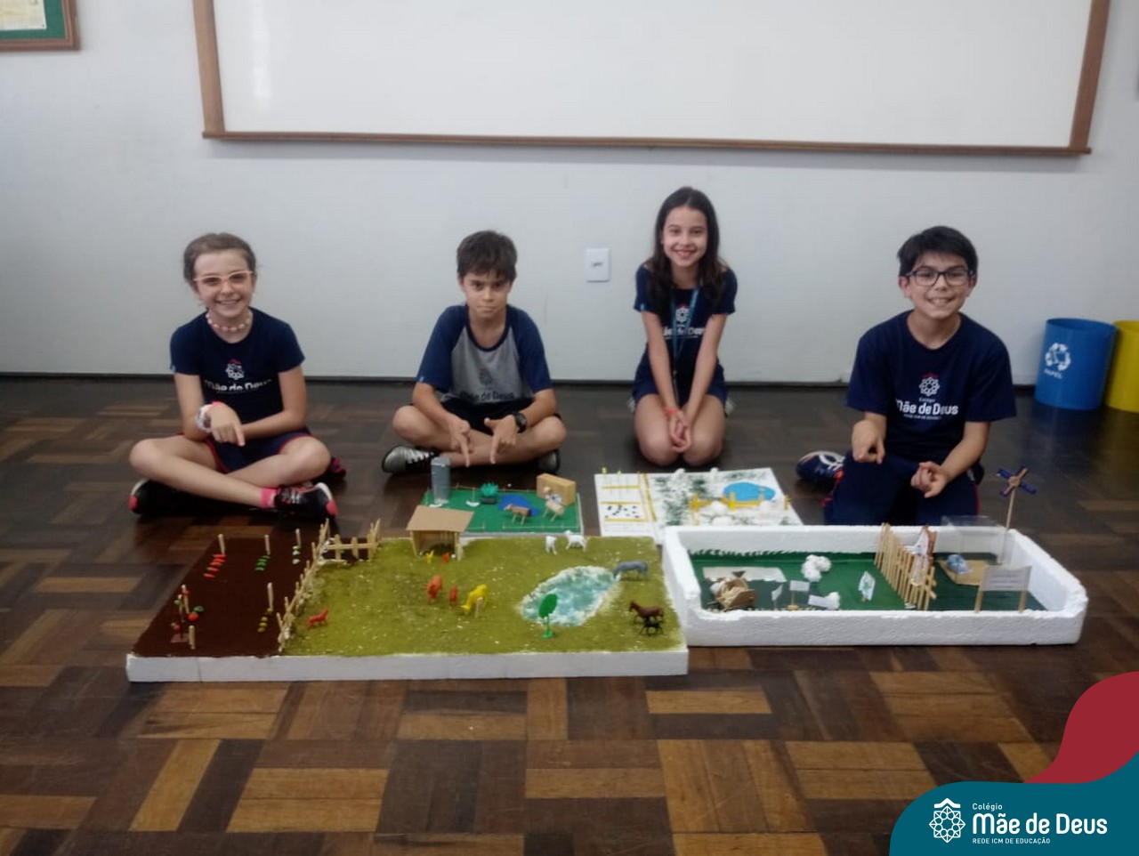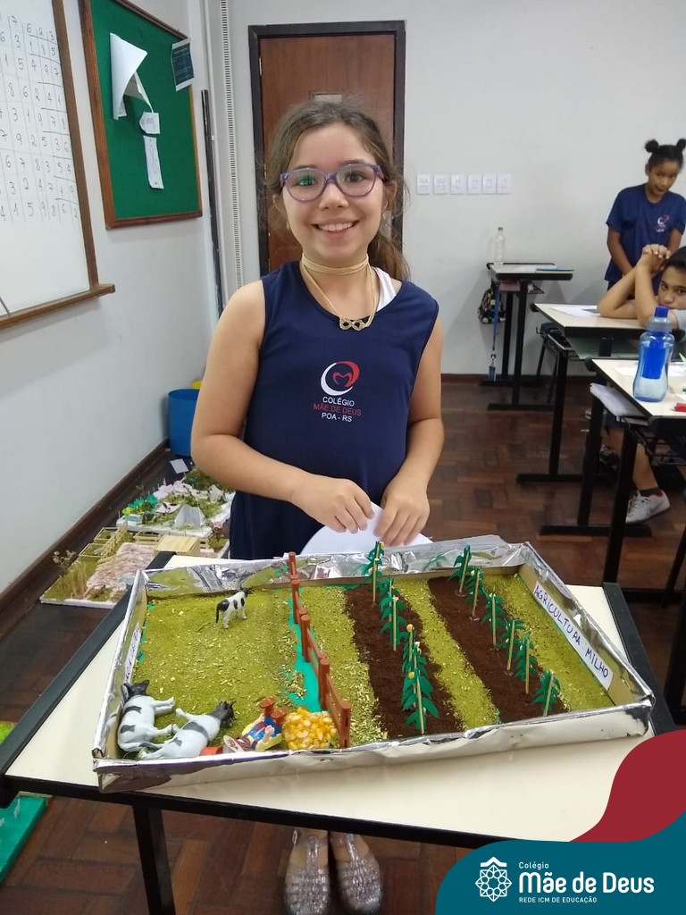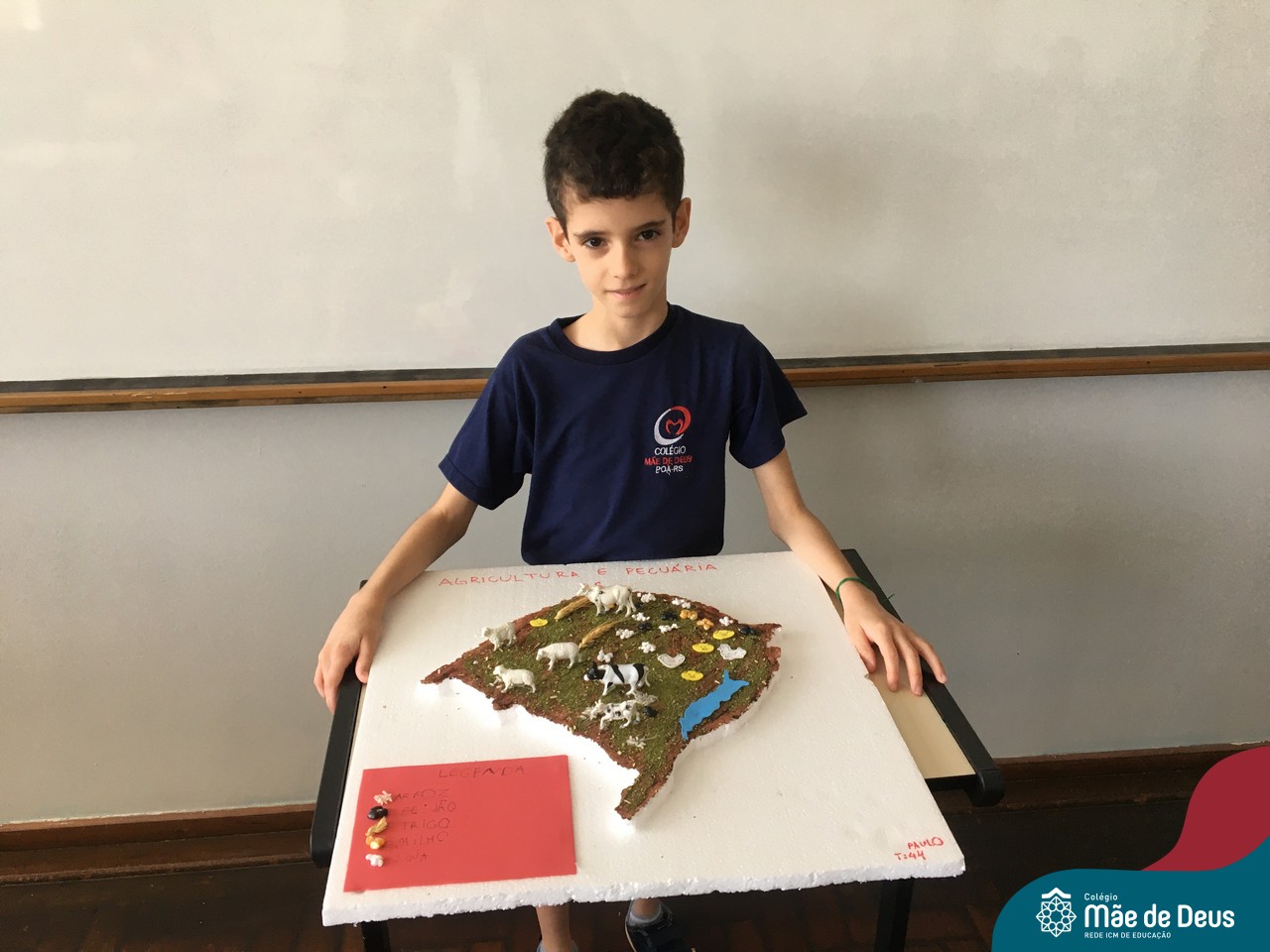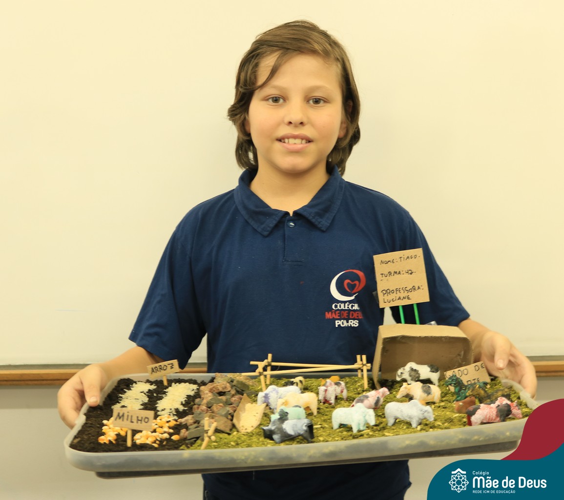 Os alunos das turmas do 4º Ano, durante o 3º trimestre foram desafiados a construírem e organizarem representações da nossa agricultura e pecuária através de maquetes. Prepararam seus referenciais, selecionaram e criaram imagens, apresentaram em sala de aula seus trabalhos e refletiram sobre o significado de identidade e de pertencimento do solo gaúcho. Assim, contextualizamos nossos conteúdos através de uma abordagem crítica, construtora e comprometida com o educar, aprofundando os conhecimentos na área de Ciências Humanas, a qual é um espaço privilegiado e de grande importância para o desenvolvimento da consciência de si e de sua inserção na sociedade.