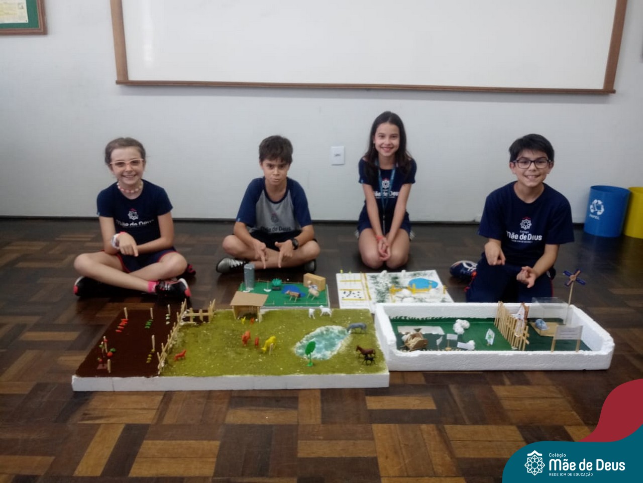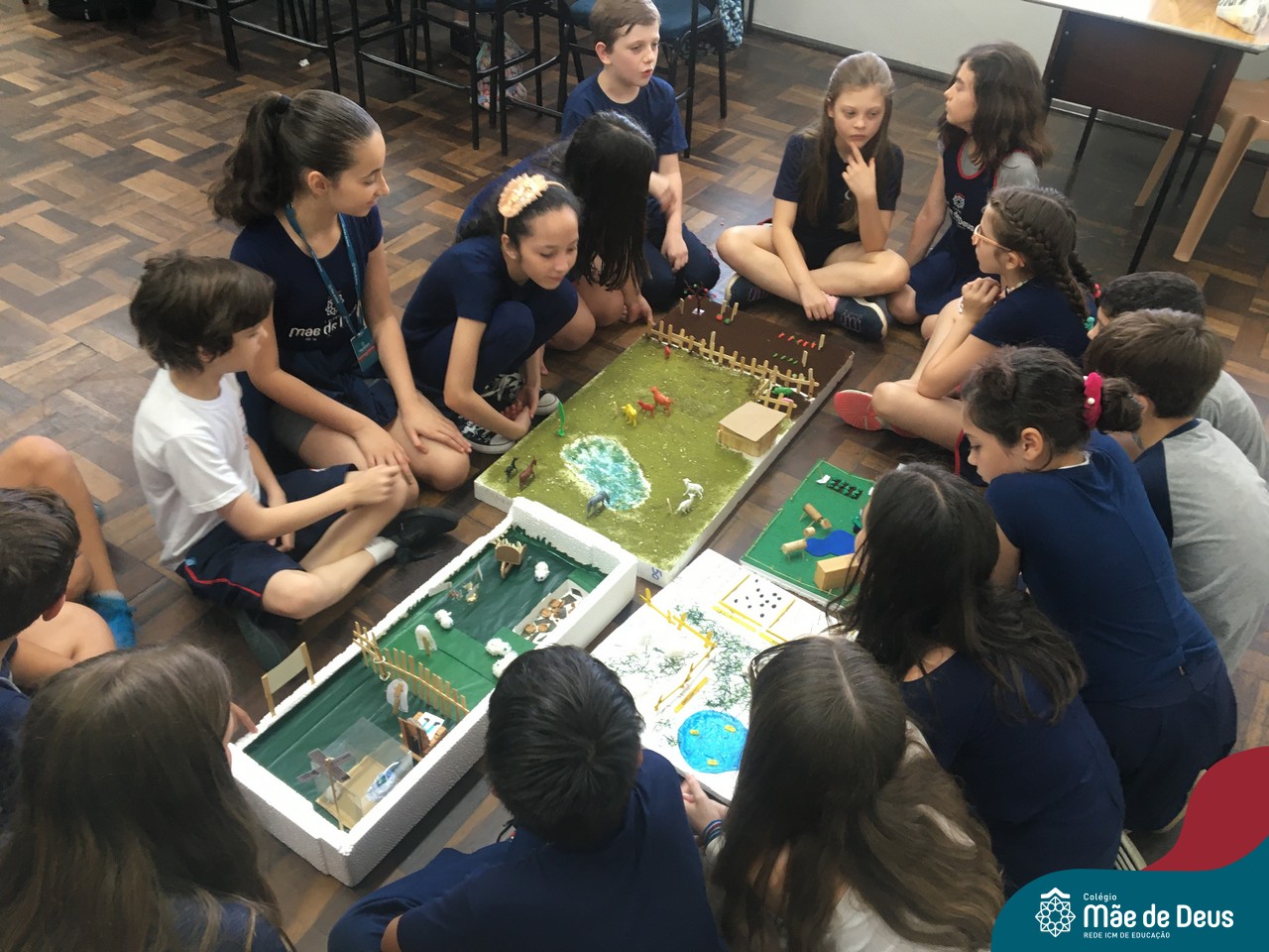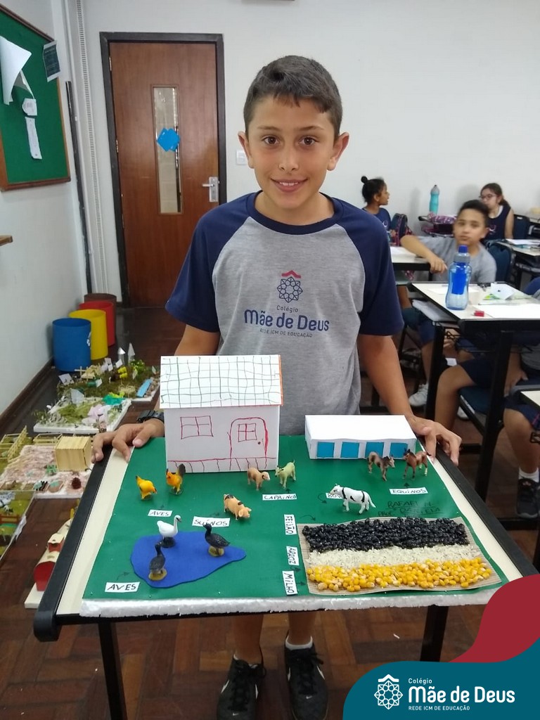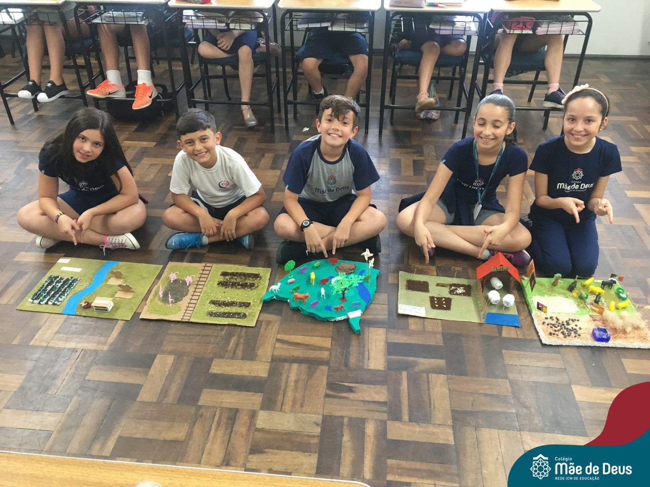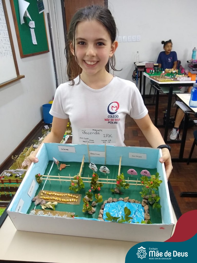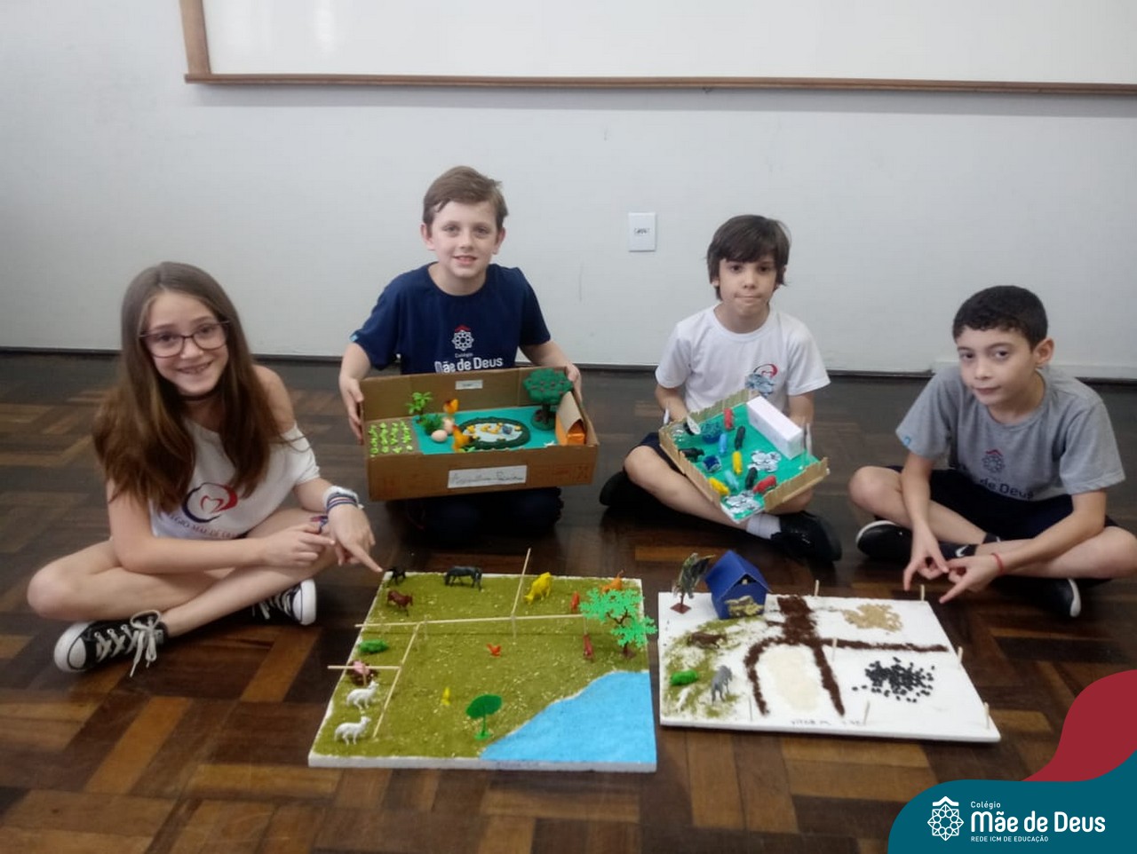 Os alunos das turmas do 4º Ano, durante o 3º trimestre foram desafiados a construírem e organizarem representações da nossa agricultura e pecuária através de maquetes. Prepararam seus referenciais, selecionaram e criaram imagens, apresentaram em sala de aula seus trabalhos e refletiram sobre o significado de identidade e de pertencimento do solo gaúcho. Assim, contextualizamos nossos conteúdos através de uma abordagem crítica, construtora e comprometida com o educar, aprofundando os conhecimentos na área de Ciências Humanas, a qual é um espaço privilegiado e de grande importância para o desenvolvimento da consciência de si e de sua inserção na sociedade.
