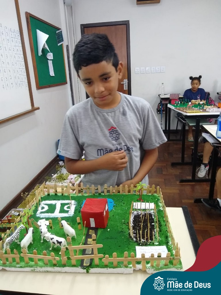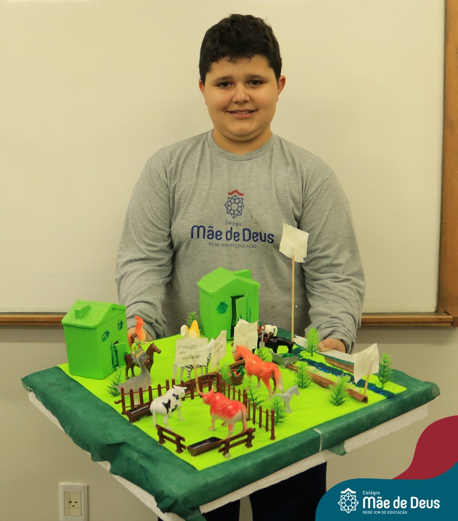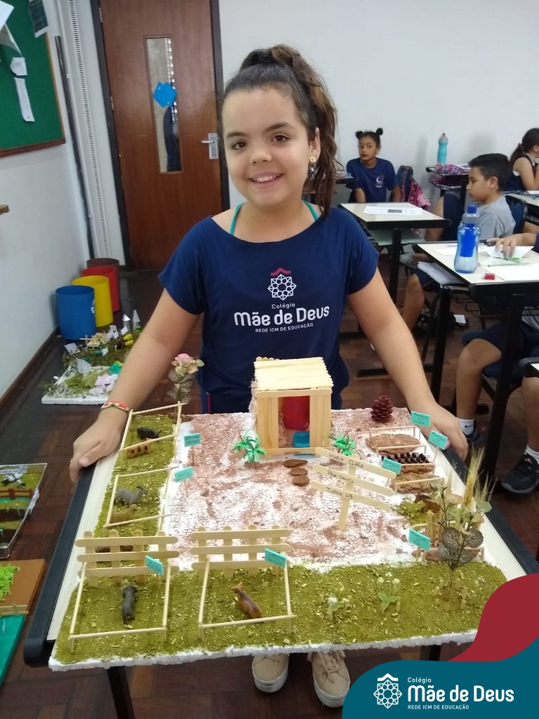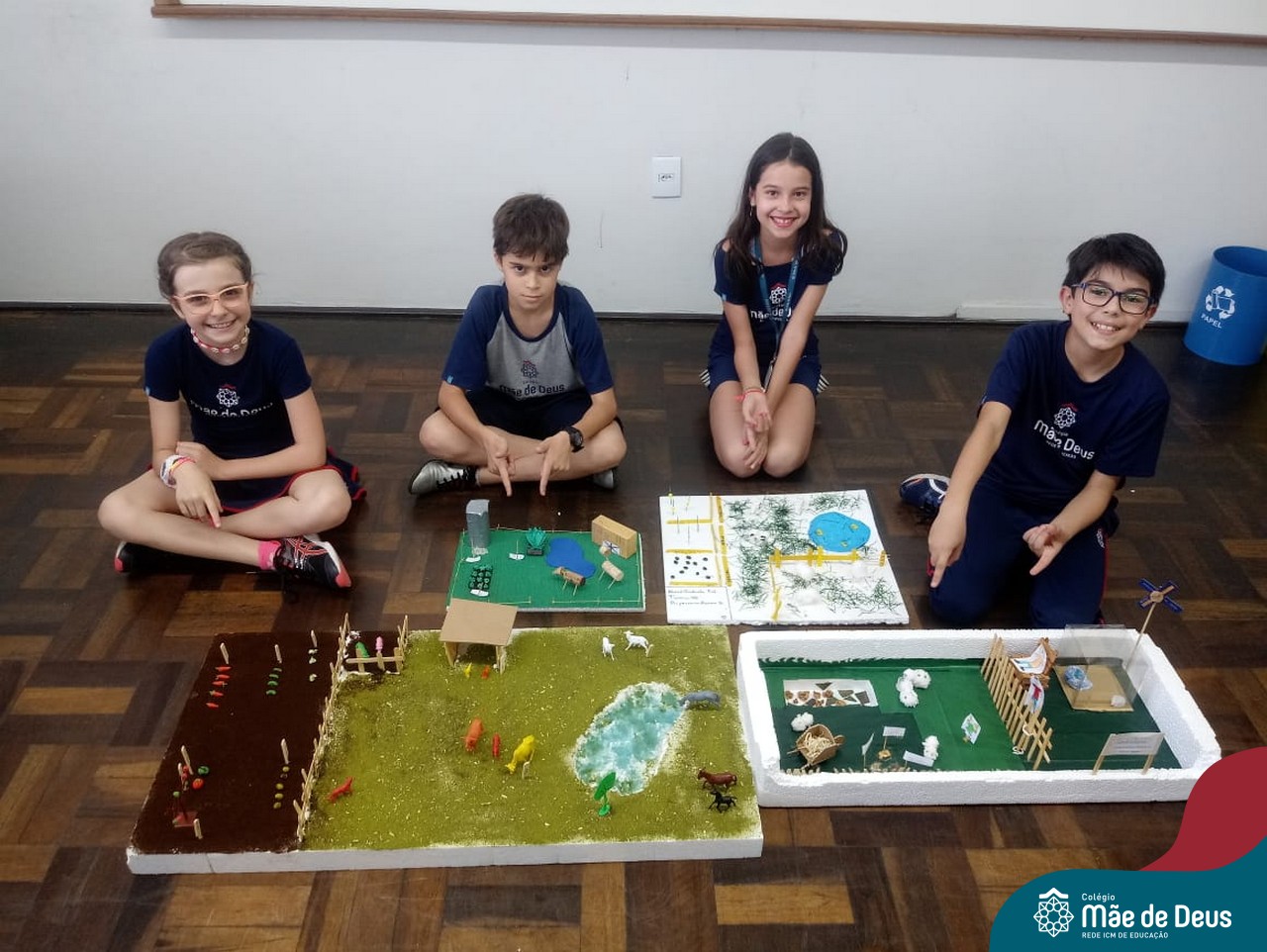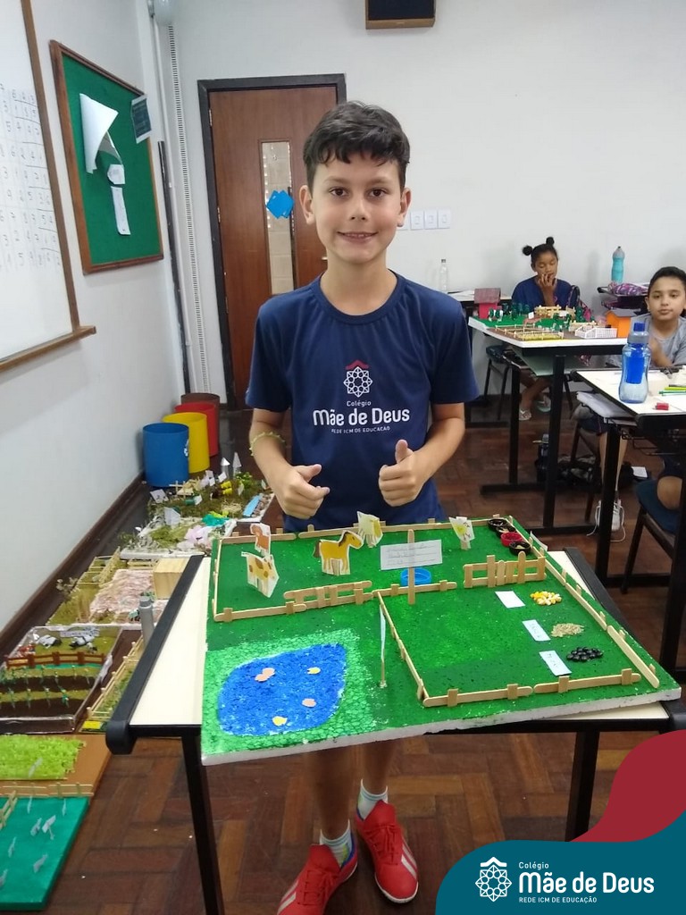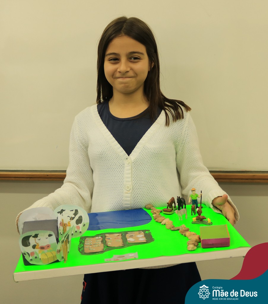 Os alunos das turmas do 4º Ano, durante o 3º trimestre foram desafiados a construírem e organizarem representações da nossa agricultura e pecuária através de maquetes. Prepararam seus referenciais, selecionaram e criaram imagens, apresentaram em sala de aula seus trabalhos e refletiram sobre o significado de identidade e de pertencimento do solo gaúcho. Assim, contextualizamos nossos conteúdos através de uma abordagem crítica, construtora e comprometida com o educar, aprofundando os conhecimentos na área de Ciências Humanas, a qual é um espaço privilegiado e de grande importância para o desenvolvimento da consciência de si e de sua inserção na sociedade.