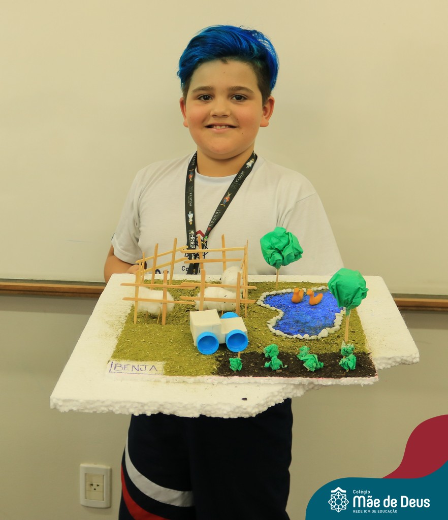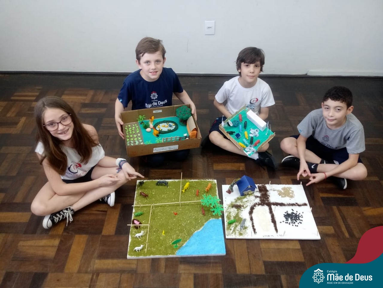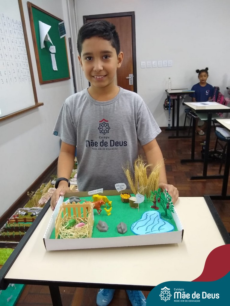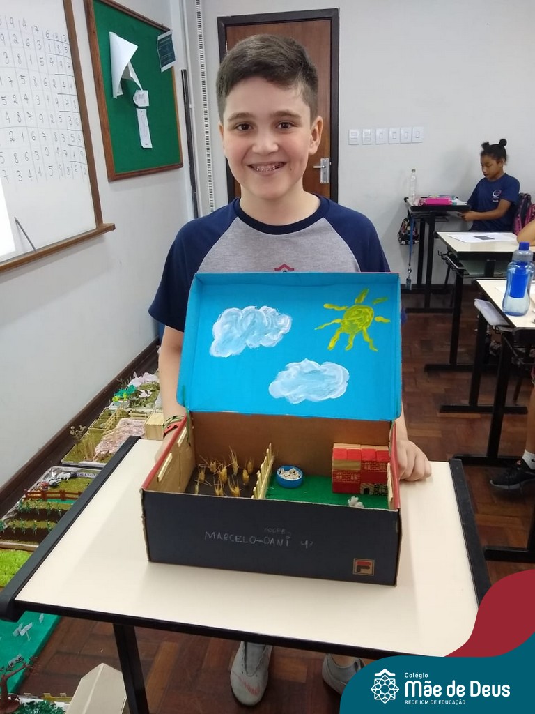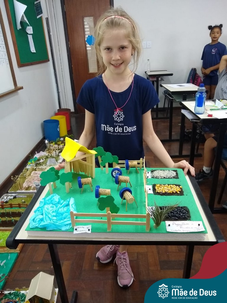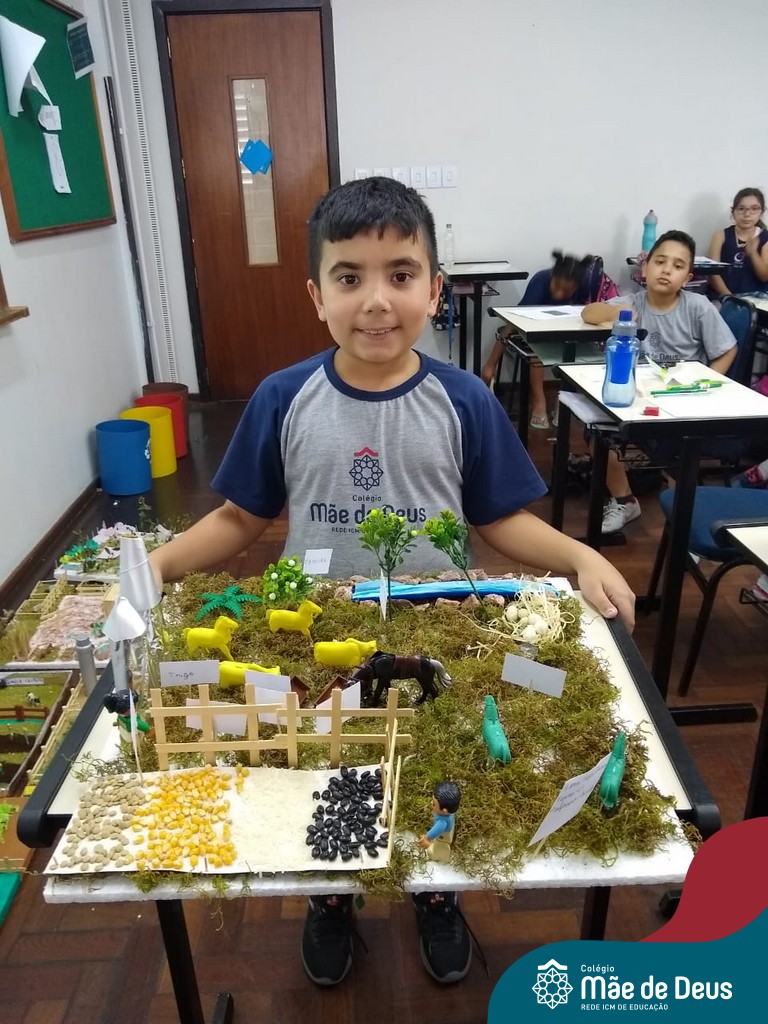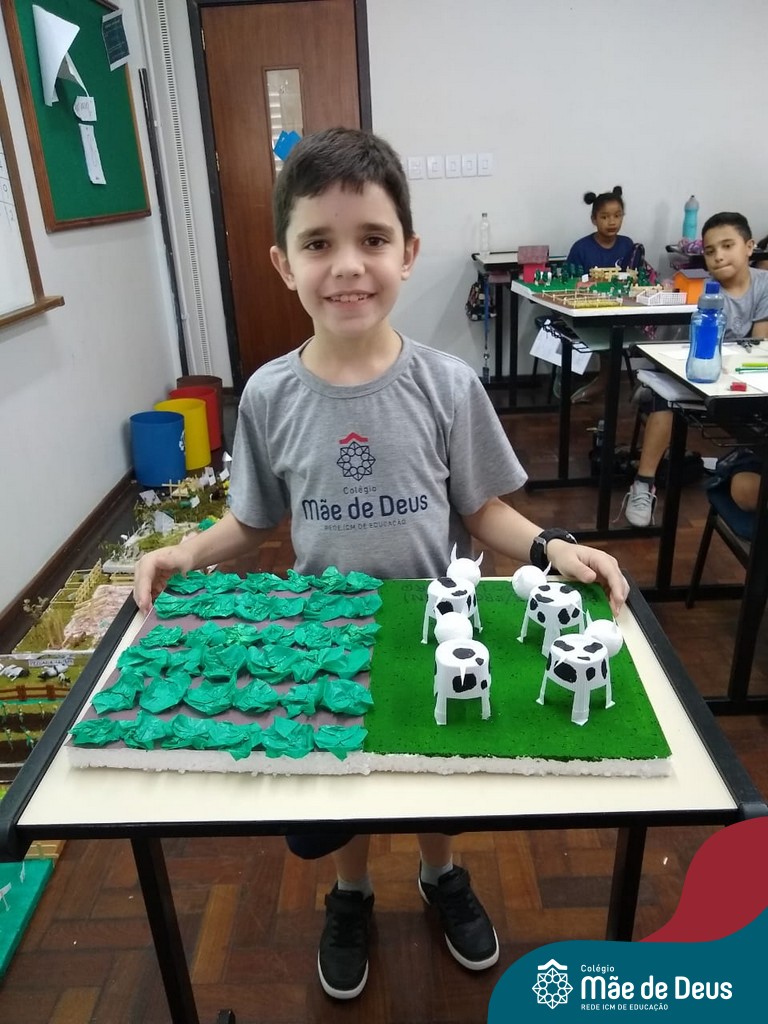 Os alunos das turmas do 4º Ano, durante o 3º trimestre foram desafiados a construírem e organizarem representações da nossa agricultura e pecuária através de maquetes. Prepararam seus referenciais, selecionaram e criaram imagens, apresentaram em sala de aula seus trabalhos e refletiram sobre o significado de identidade e de pertencimento do solo gaúcho. Assim, contextualizamos nossos conteúdos através de uma abordagem crítica, construtora e comprometida com o educar, aprofundando os conhecimentos na área de Ciências Humanas, a qual é um espaço privilegiado e de grande importância para o desenvolvimento da consciência de si e de sua inserção na sociedade.
