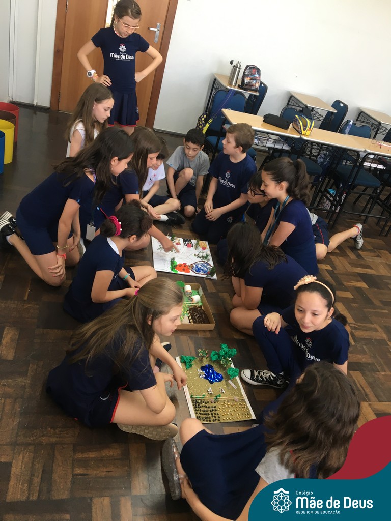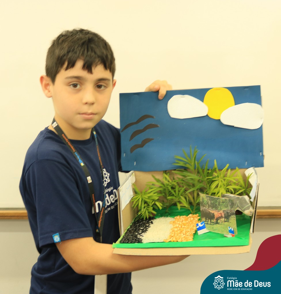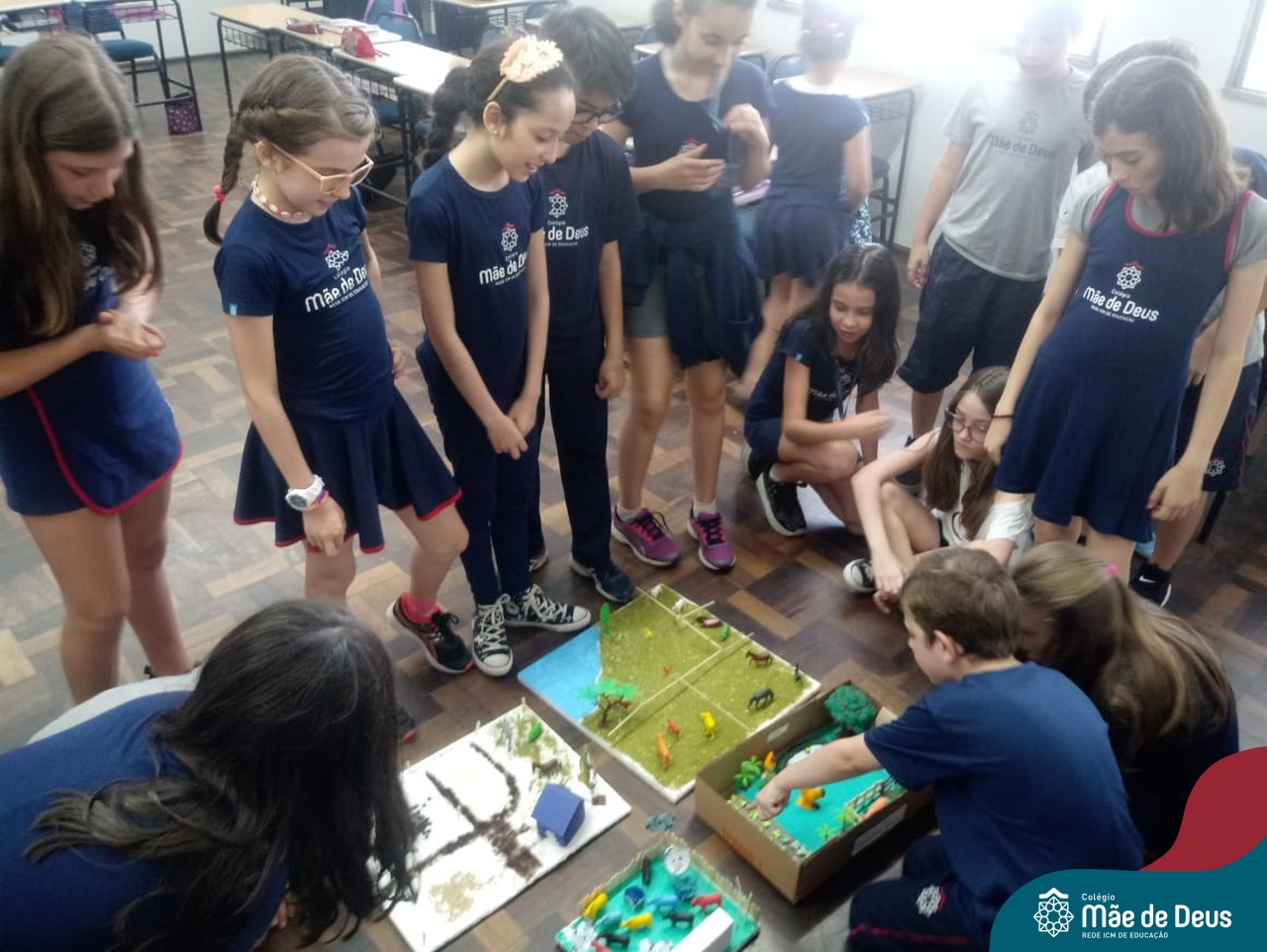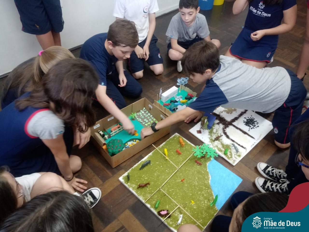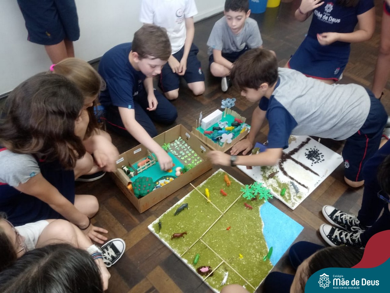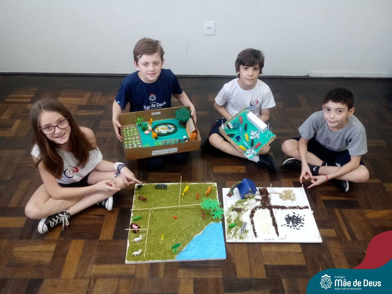 Os alunos das turmas do 4º Ano, durante o 3º trimestre foram desafiados a construírem e organizarem representações da nossa agricultura e pecuária através de maquetes. Prepararam seus referenciais, selecionaram e criaram imagens, apresentaram em sala de aula seus trabalhos e refletiram sobre o significado de identidade e de pertencimento do solo gaúcho. Assim, contextualizamos nossos conteúdos através de uma abordagem crítica, construtora e comprometida com o educar, aprofundando os conhecimentos na área de Ciências Humanas, a qual é um espaço privilegiado e de grande importância para o desenvolvimento da consciência de si e de sua inserção na sociedade.