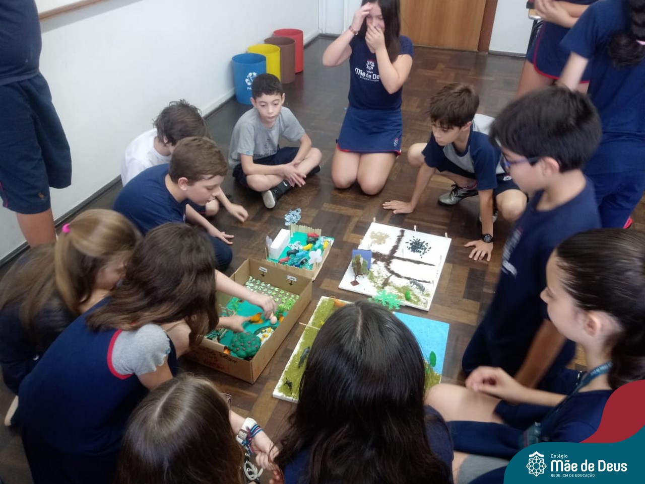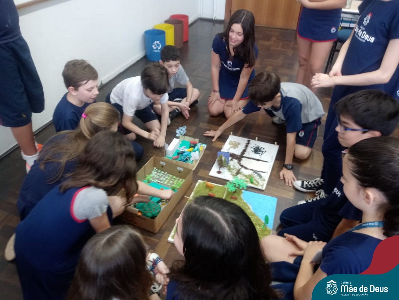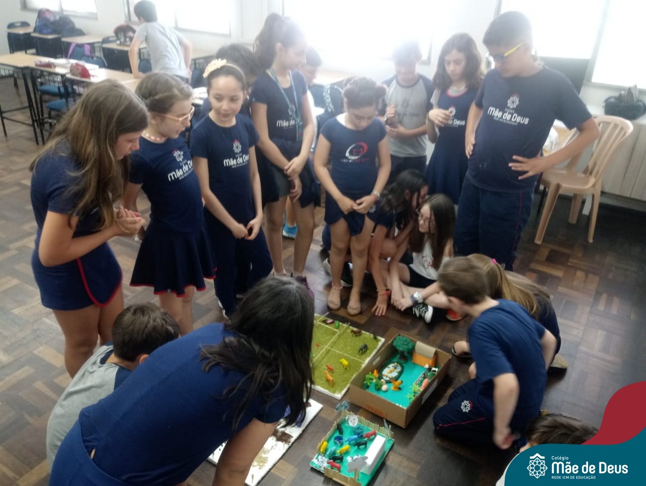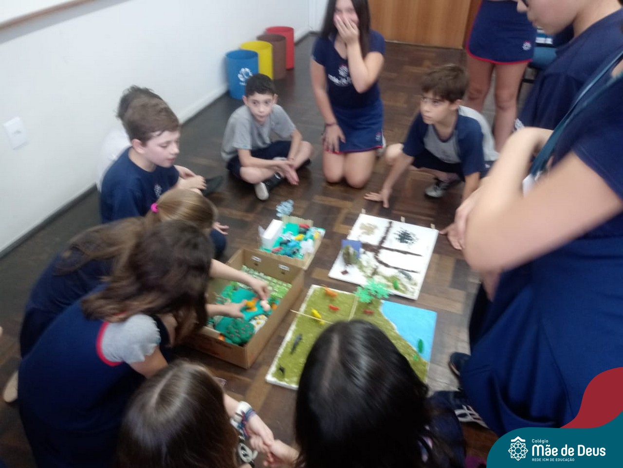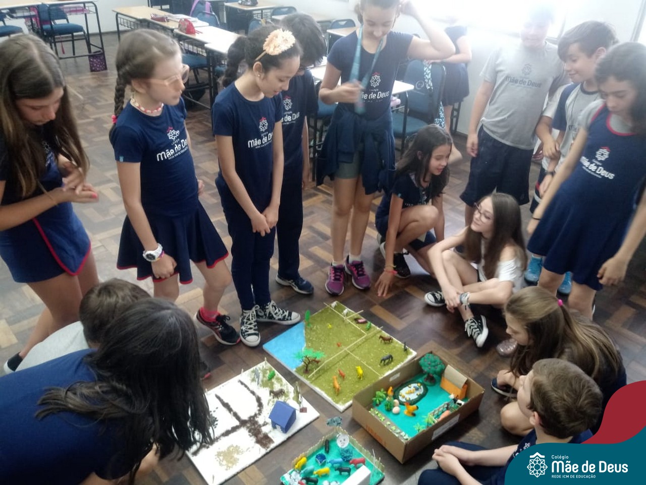 Os alunos das turmas do 4º Ano, durante o 3º trimestre foram desafiados a construírem e organizarem representações da nossa agricultura e pecuária através de maquetes. Prepararam seus referenciais, selecionaram e criaram imagens, apresentaram em sala de aula seus trabalhos e refletiram sobre o significado de identidade e de pertencimento do solo gaúcho. Assim, contextualizamos nossos conteúdos através de uma abordagem crítica, construtora e comprometida com o educar, aprofundando os conhecimentos na área de Ciências Humanas, a qual é um espaço privilegiado e de grande importância para o desenvolvimento da consciência de si e de sua inserção na sociedade.