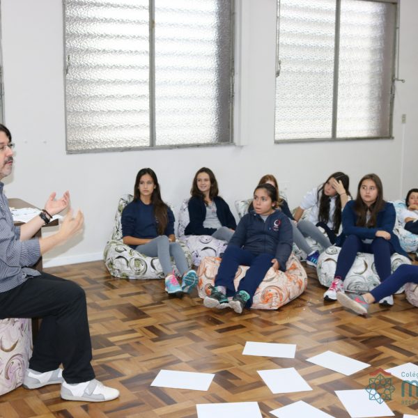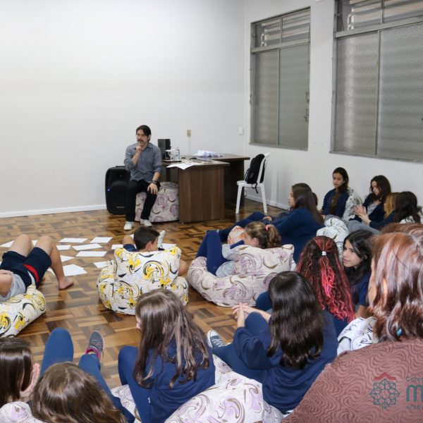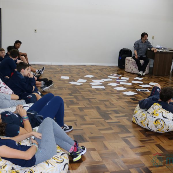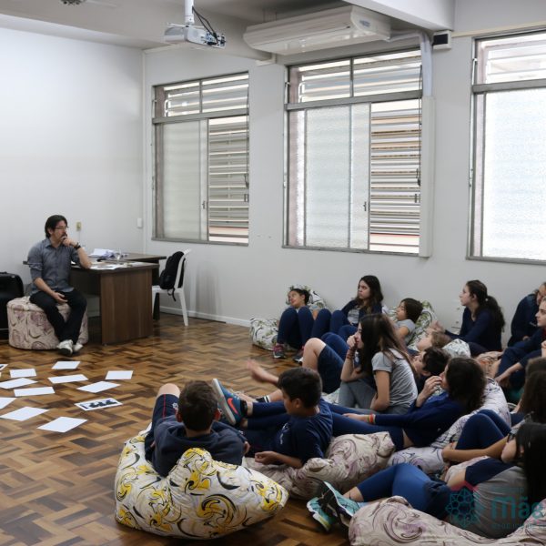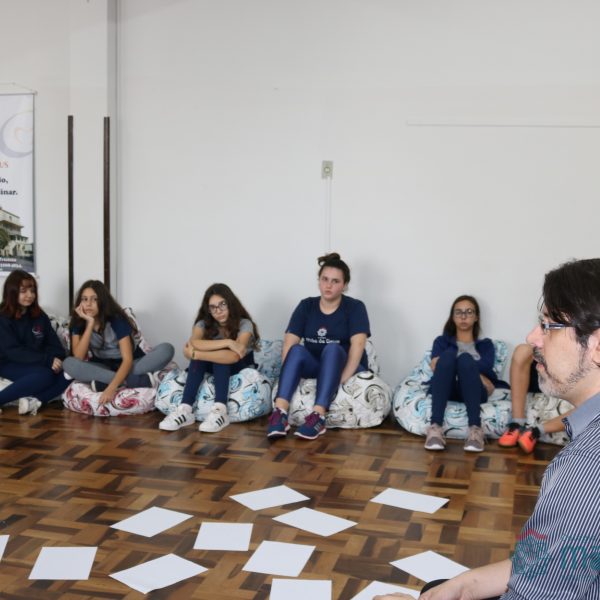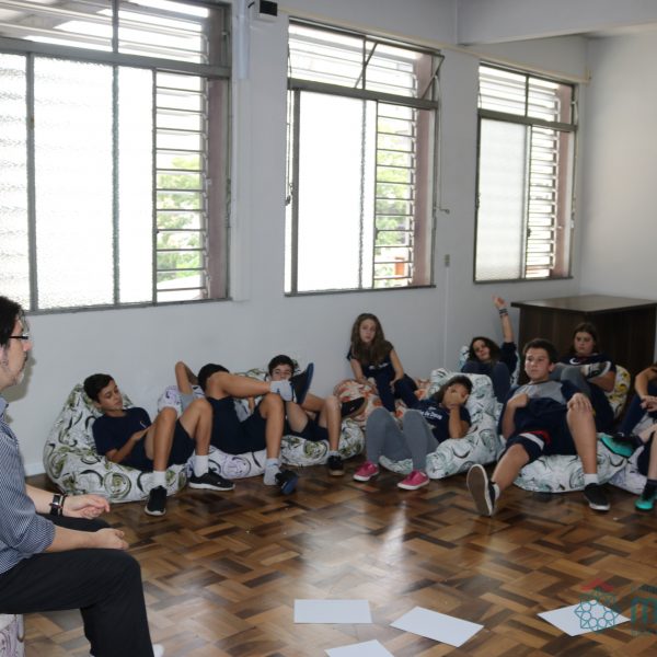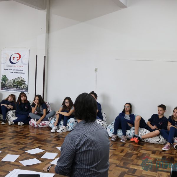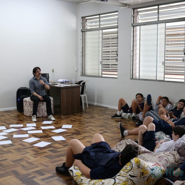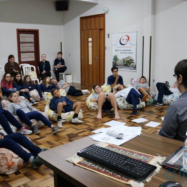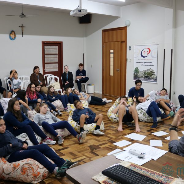 Os alunos do 7º ano do Ensino Fundamental participaram da Oficina: “A promoção da cultura de paz no universo infanto-juvenil” com o professor Márcio Amaral da Pastoral da SEC, que trouxe aos jovens alguns questionamentos sobre como se criar uma cultura de paz. Que esta deve começar primeiro em cada indivíduo, seja da maneira que se fala, age ou pensa a realidade. Que a cultura de paz é uma maneira de viver que deve ser cultivada em todos os setores de uma sociedade.