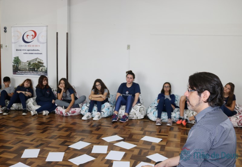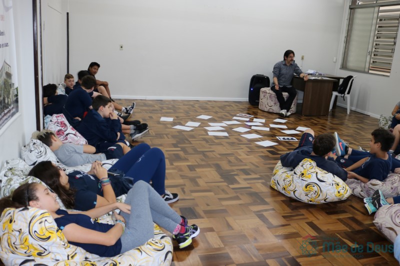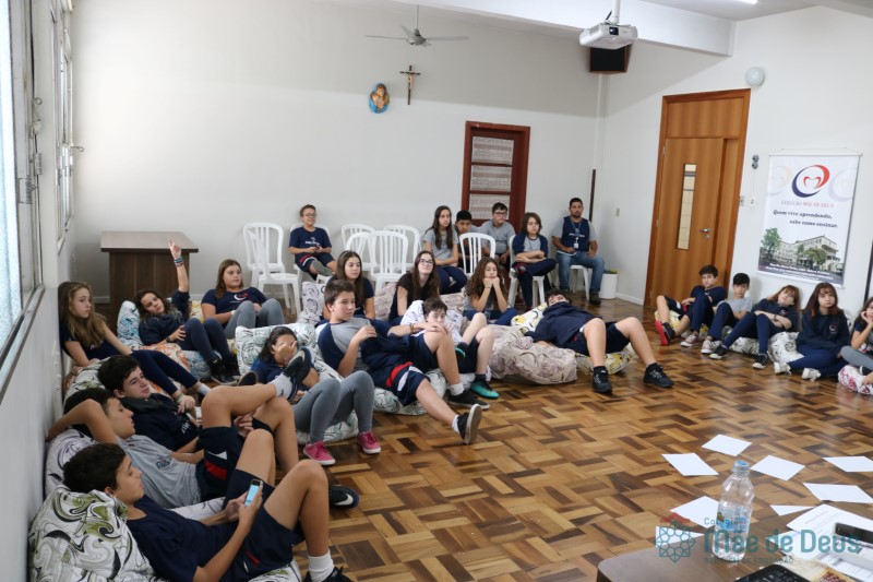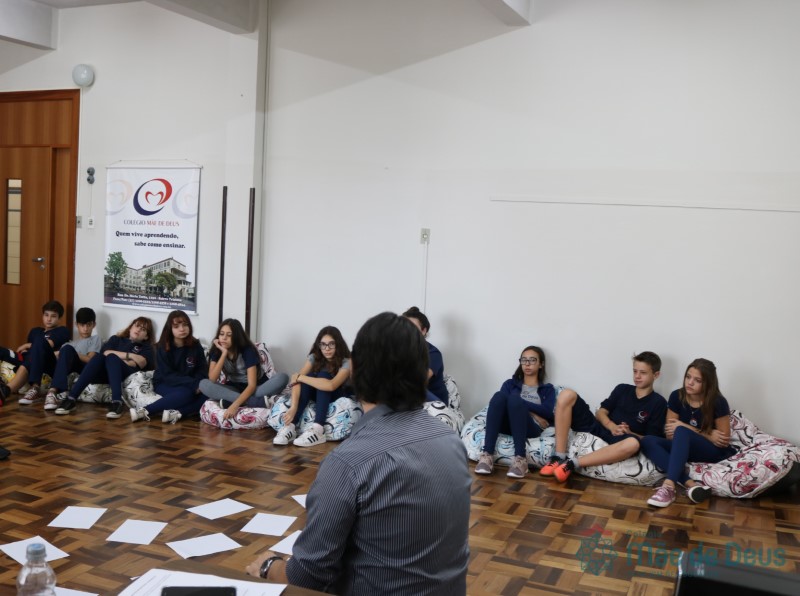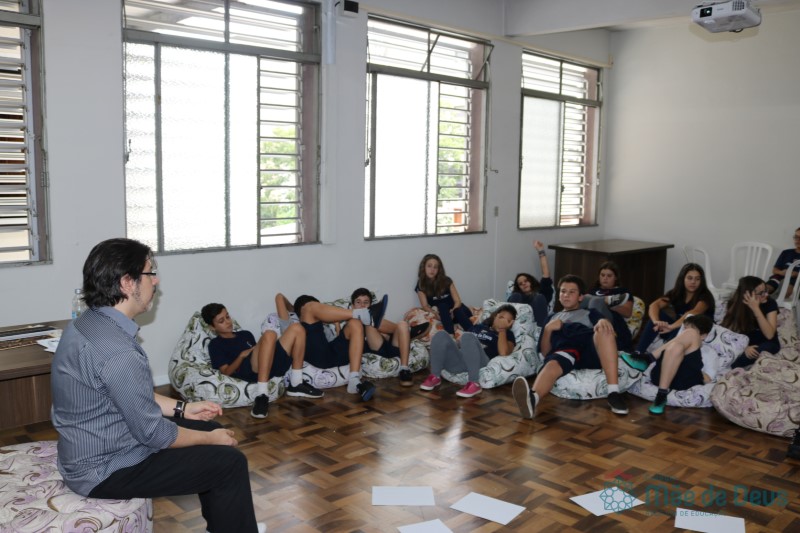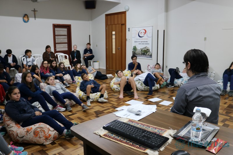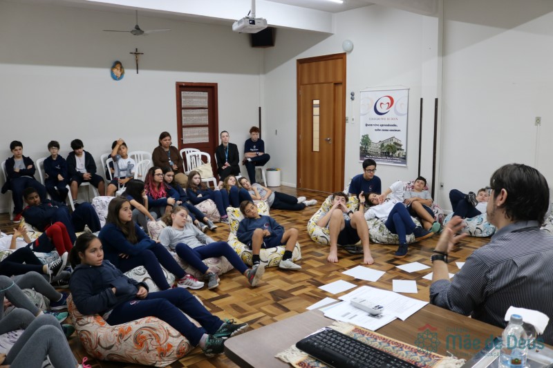 Os alunos do 7º ano do Ensino Fundamental participaram da Oficina: “A promoção da cultura de paz no universo infanto-juvenil” com o professor Márcio Amaral da Pastoral da SEC, que trouxe aos jovens alguns questionamentos sobre como se criar uma cultura de paz. Que esta deve começar primeiro em cada indivíduo, seja da maneira que se fala, age ou pensa a realidade. Que a cultura de paz é uma maneira de viver que deve ser cultivada em todos os setores de uma sociedade.