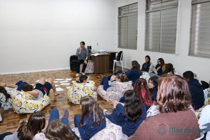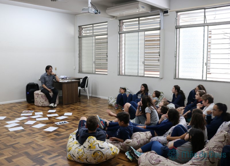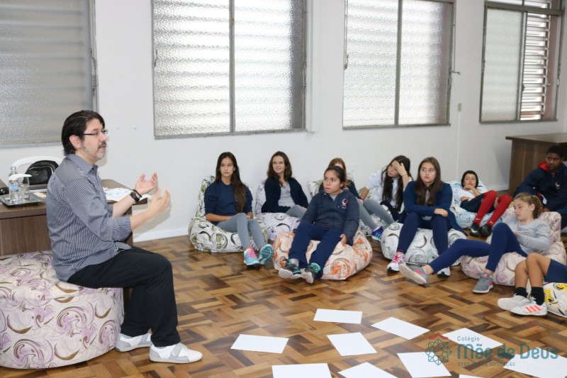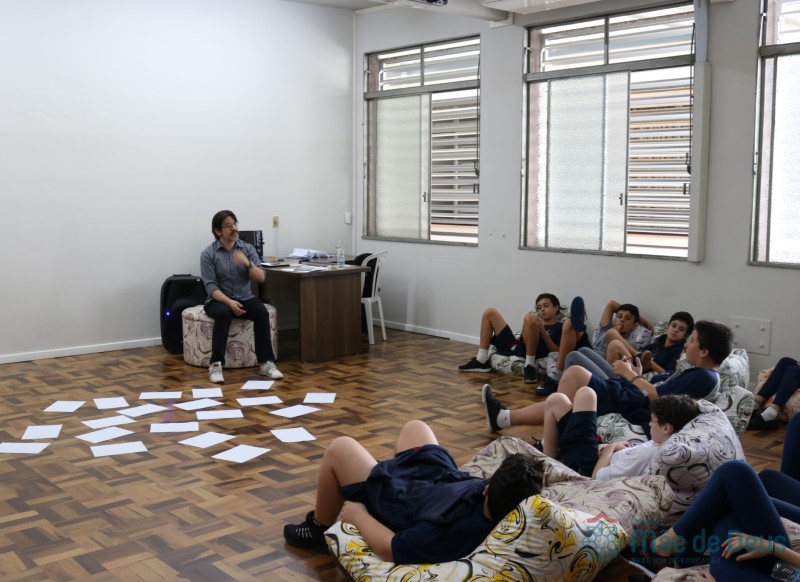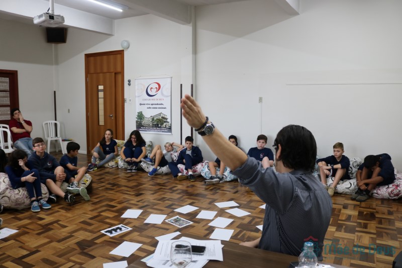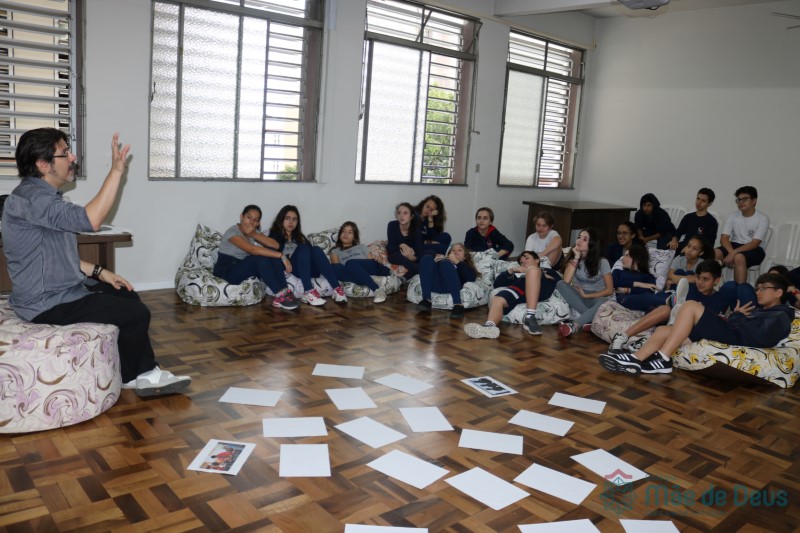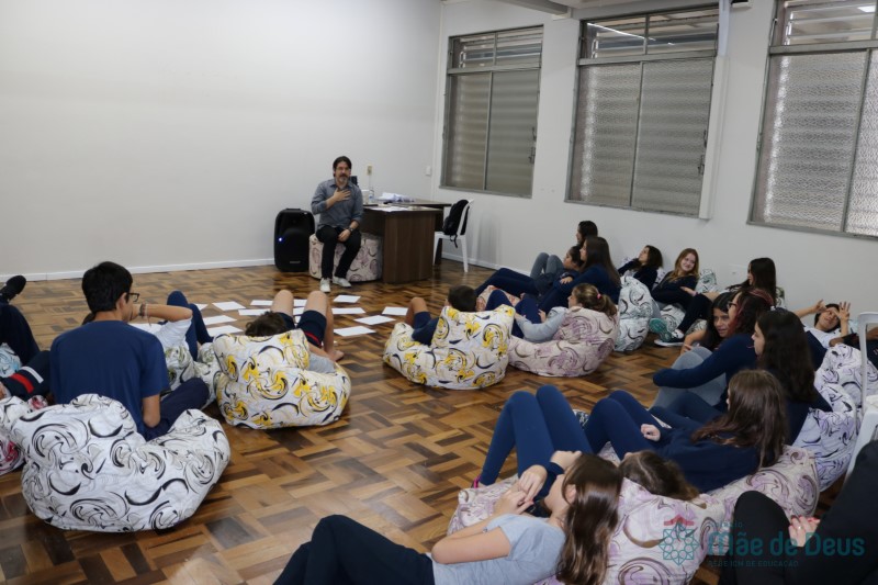 Os alunos do 7º ano do Ensino Fundamental participaram da Oficina: “A promoção da cultura de paz no universo infanto-juvenil” com o professor Márcio Amaral da Pastoral da SEC, que trouxe aos jovens alguns questionamentos sobre como se criar uma cultura de paz. Que esta deve começar primeiro em cada indivíduo, seja da maneira que se fala, age ou pensa a realidade. Que a cultura de paz é uma maneira de viver que deve ser cultivada em todos os setores de uma sociedade.