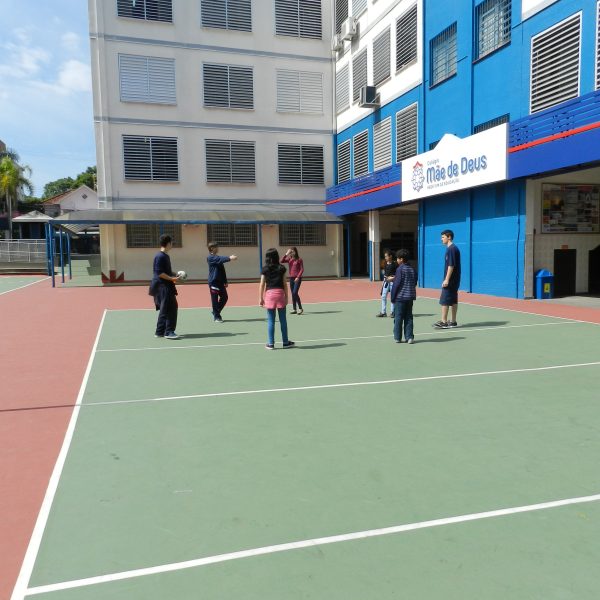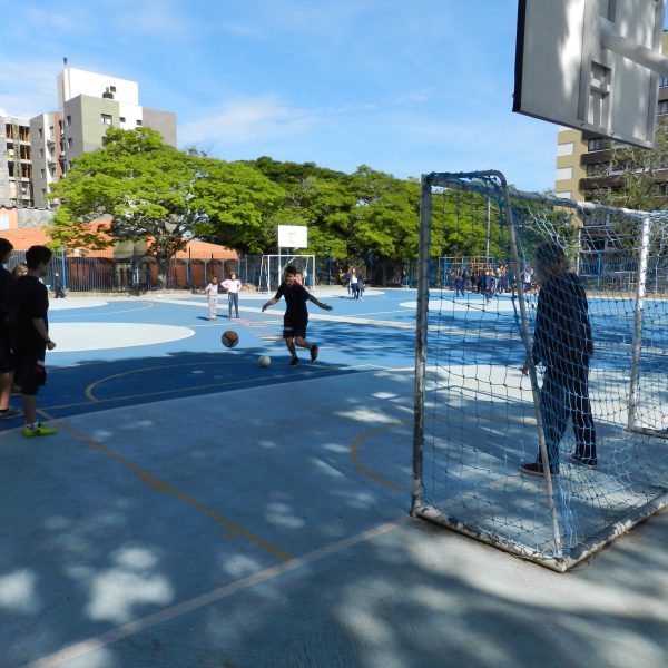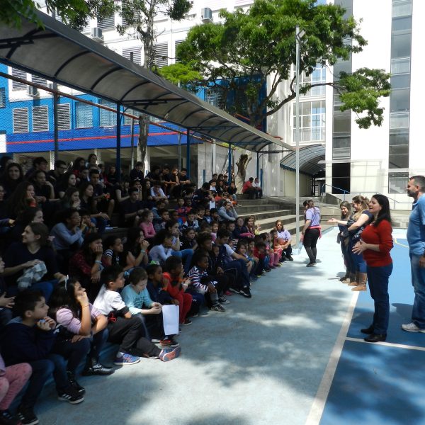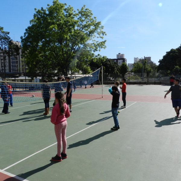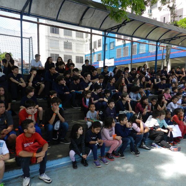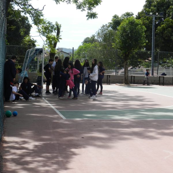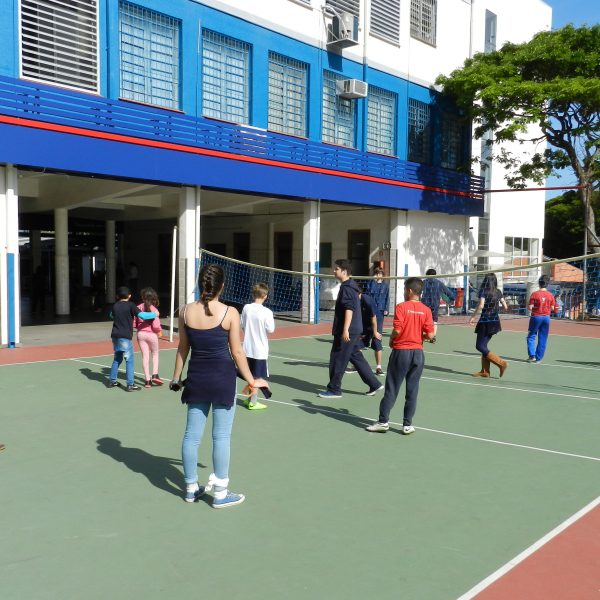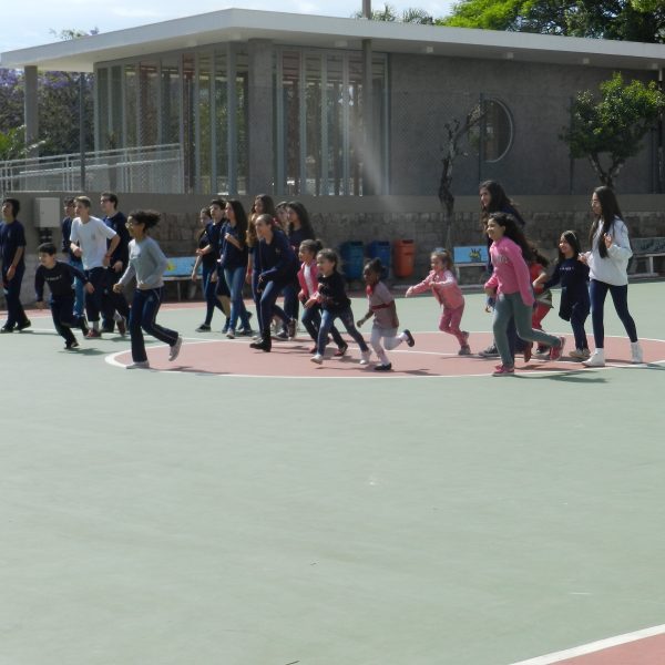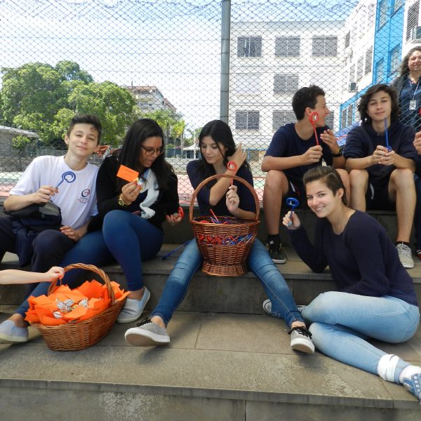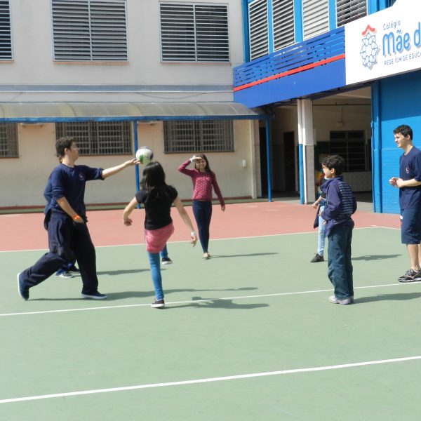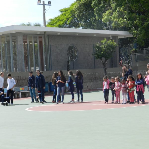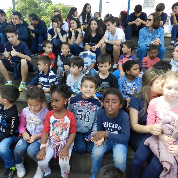 As instituições retribuíram a visita, e foram recepcionadas pelos estudantes do 9º ano que prepararam atividades e brincadeiras, como: jogos cooperativos, pracinha, futsal, voleibol, desenho, trampolim e tour pelo Colégio. Todos participaram e se divertiram muito! Os alunos também organizaram um gostoso lanche, com cachorro-quente, sanduíche e bolo de chocolate, tudo preparado com muito carinho por eles mesmos.