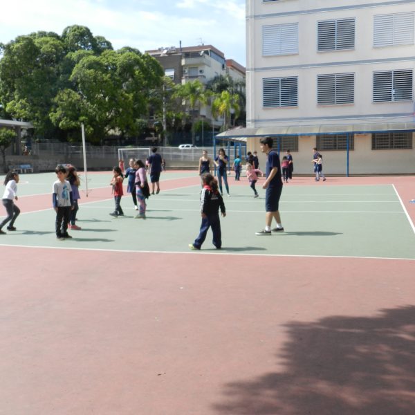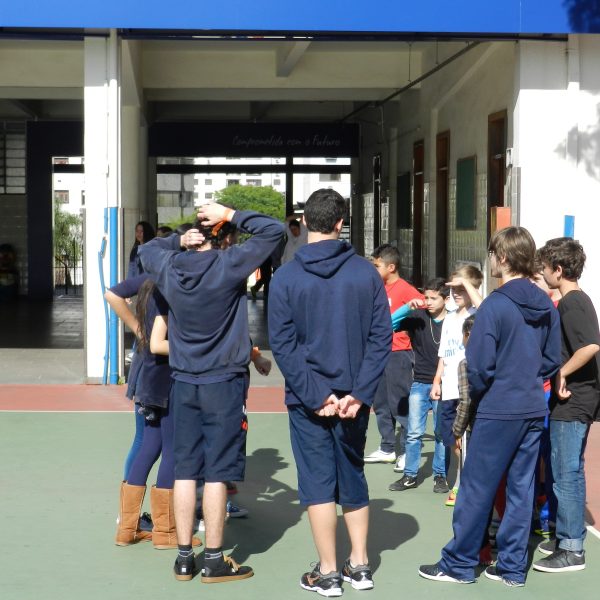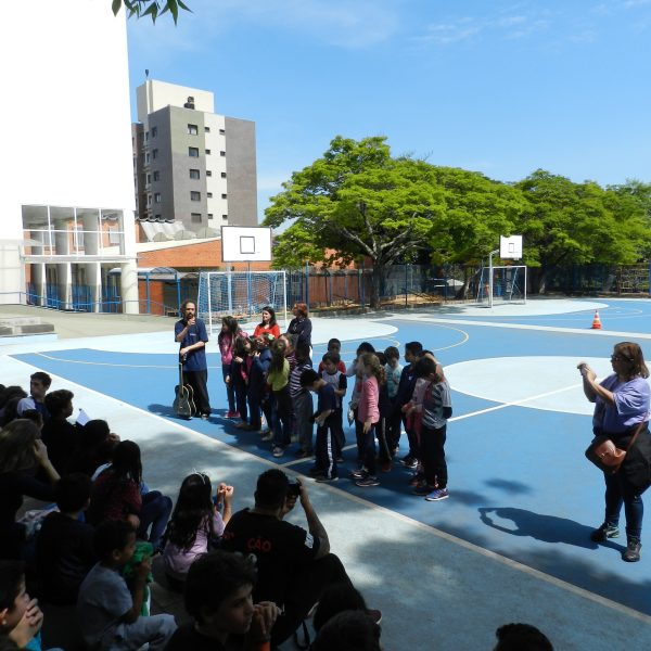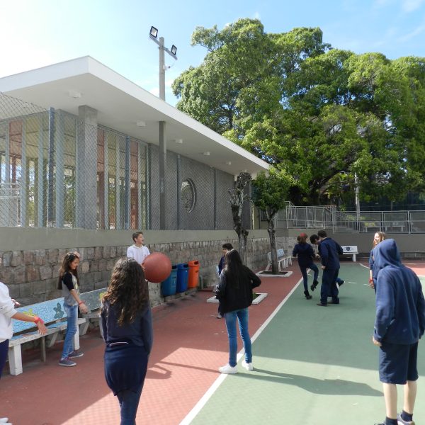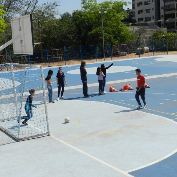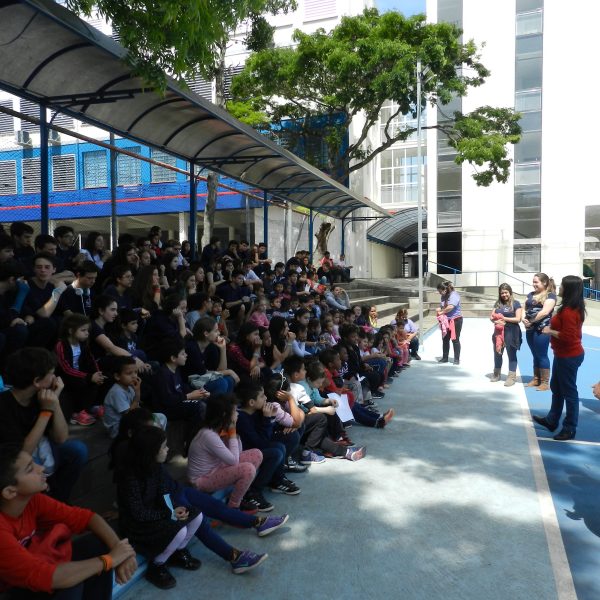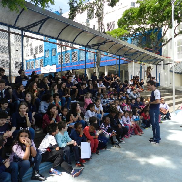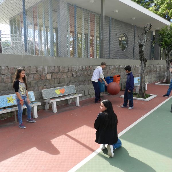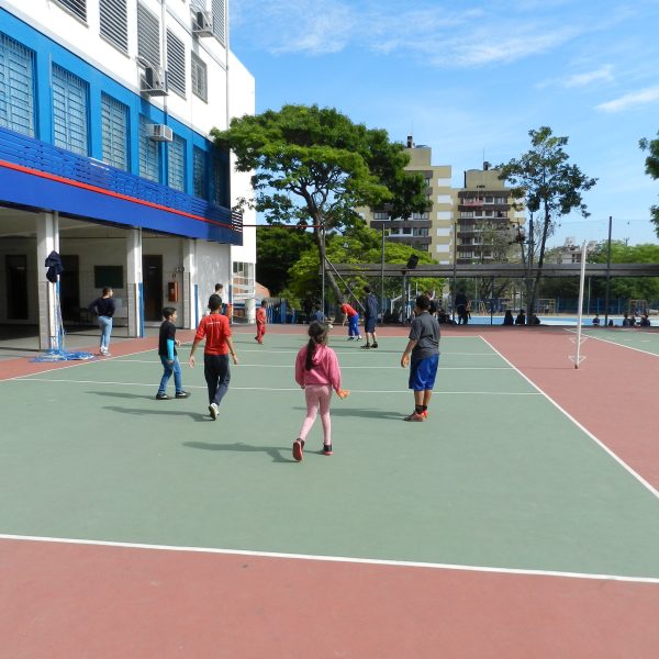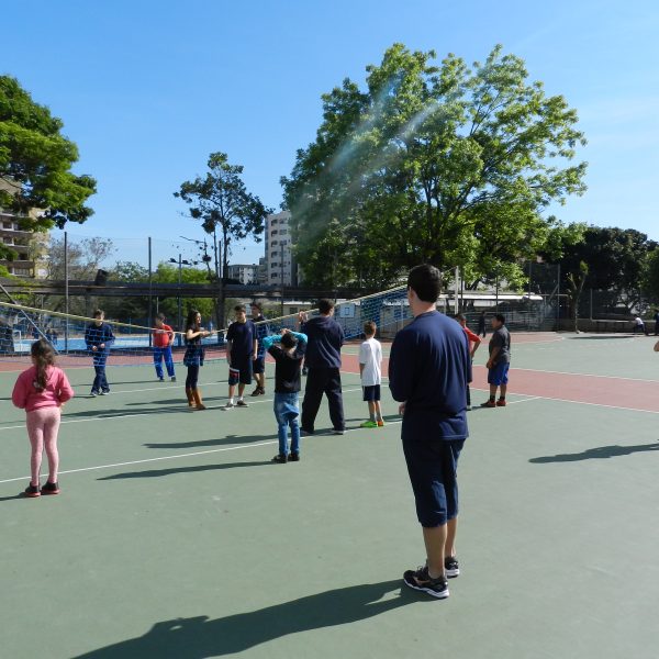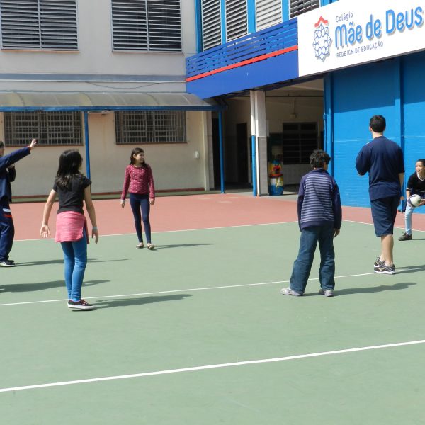 As instituições retribuíram a visita, e foram recepcionadas pelos estudantes do 9º ano que prepararam atividades e brincadeiras, como: jogos cooperativos, pracinha, futsal, voleibol, desenho, trampolim e tour pelo Colégio. Todos participaram e se divertiram muito! Os alunos também organizaram um gostoso lanche, com cachorro-quente, sanduíche e bolo de chocolate, tudo preparado com muito carinho por eles mesmos.