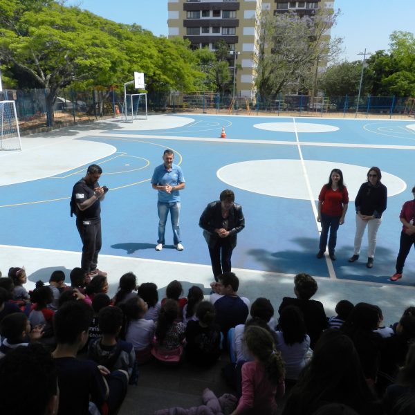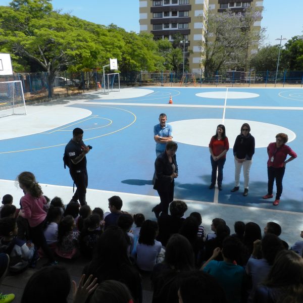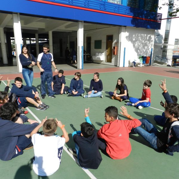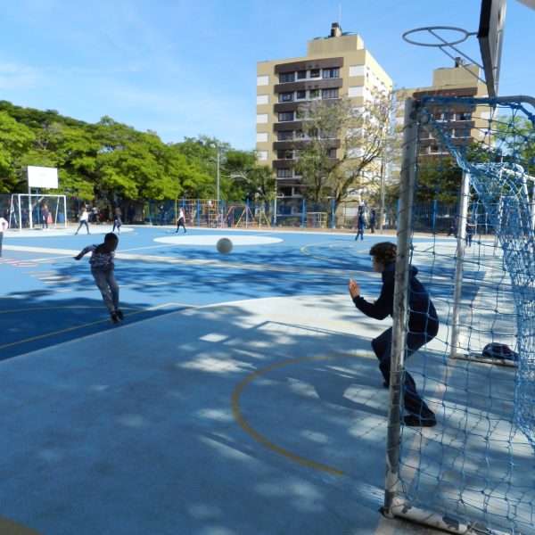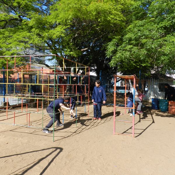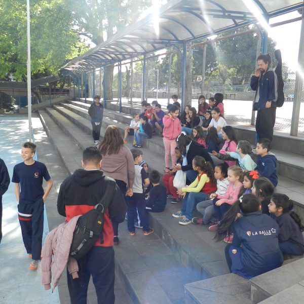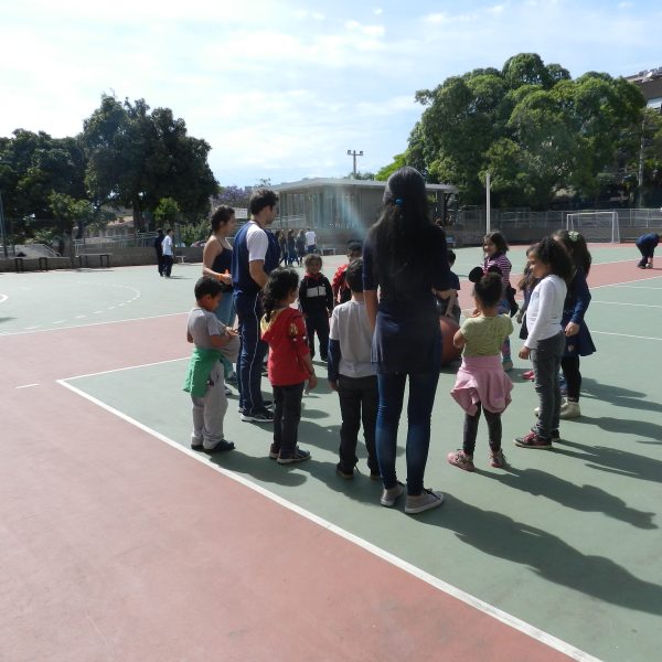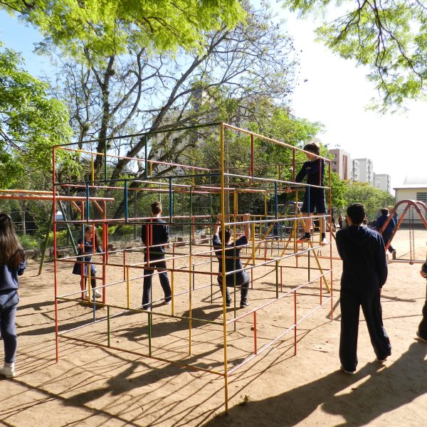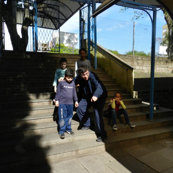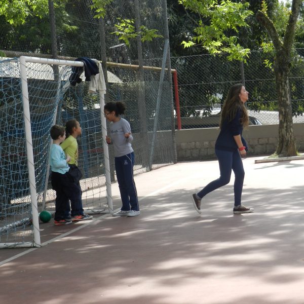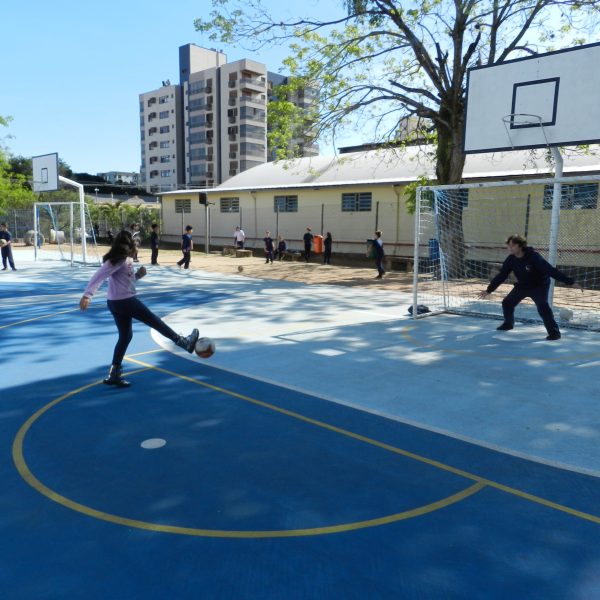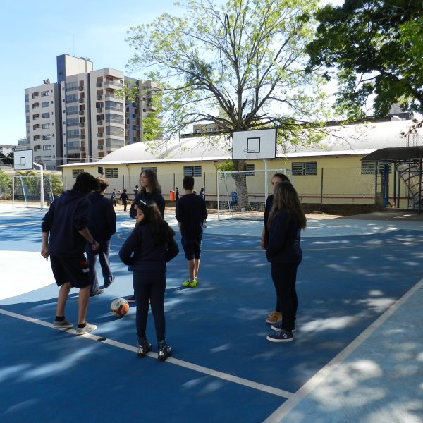 As instituições retribuíram a visita, e foram recepcionadas pelos estudantes do 9º ano que prepararam atividades e brincadeiras, como: jogos cooperativos, pracinha, futsal, voleibol, desenho, trampolim e tour pelo Colégio. Todos participaram e se divertiram muito! Os alunos também organizaram um gostoso lanche, com cachorro-quente, sanduíche e bolo de chocolate, tudo preparado com muito carinho por eles mesmos.