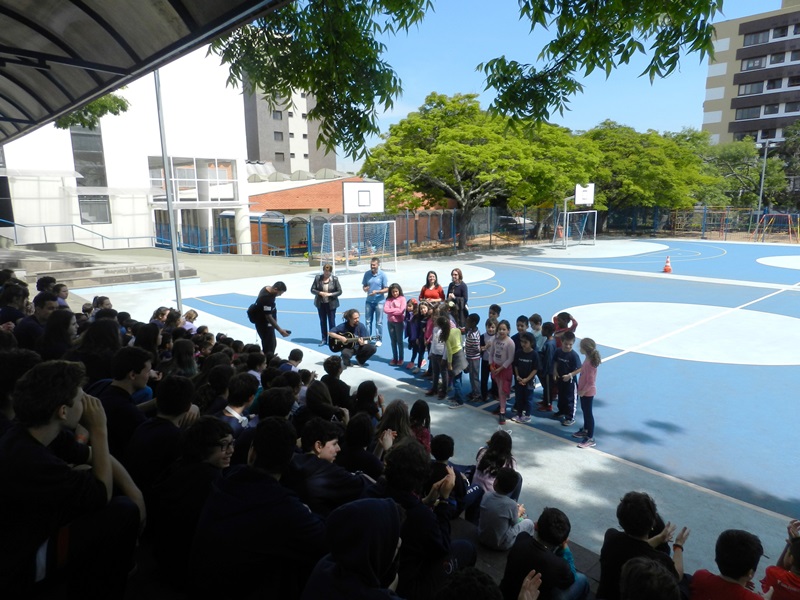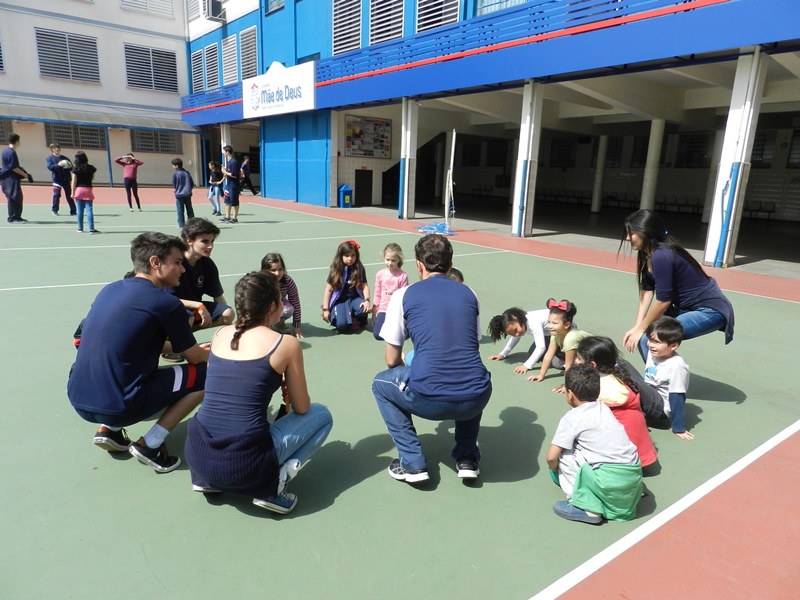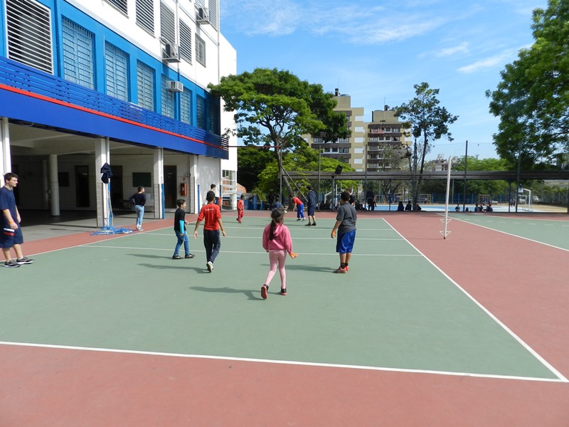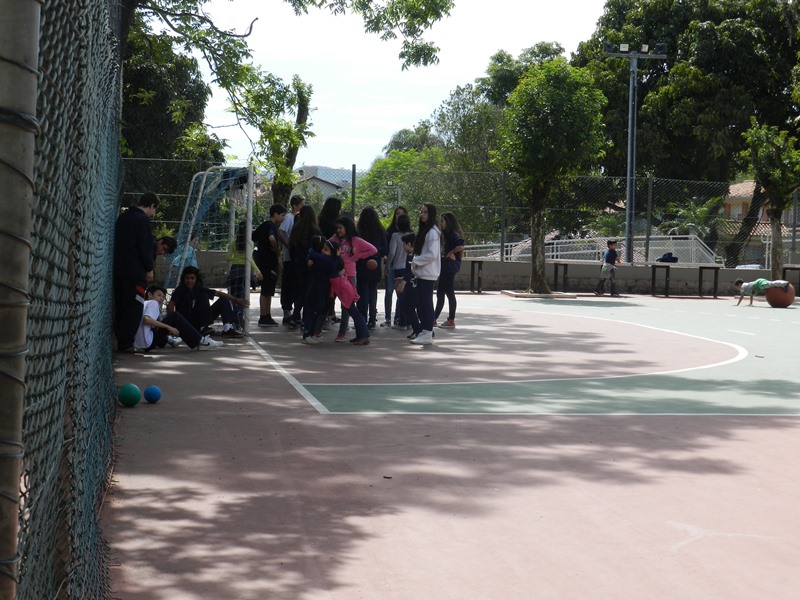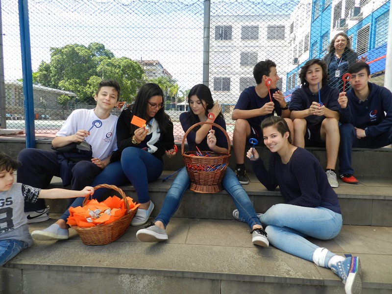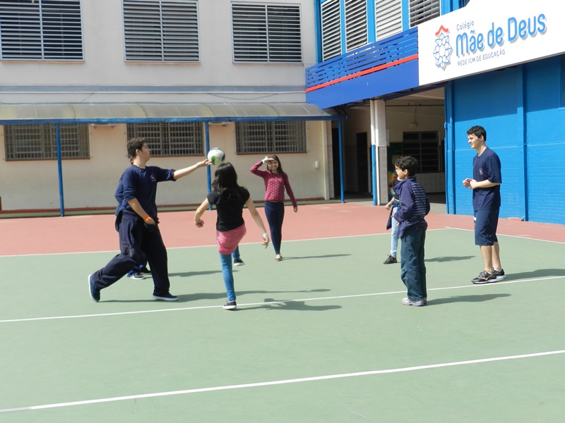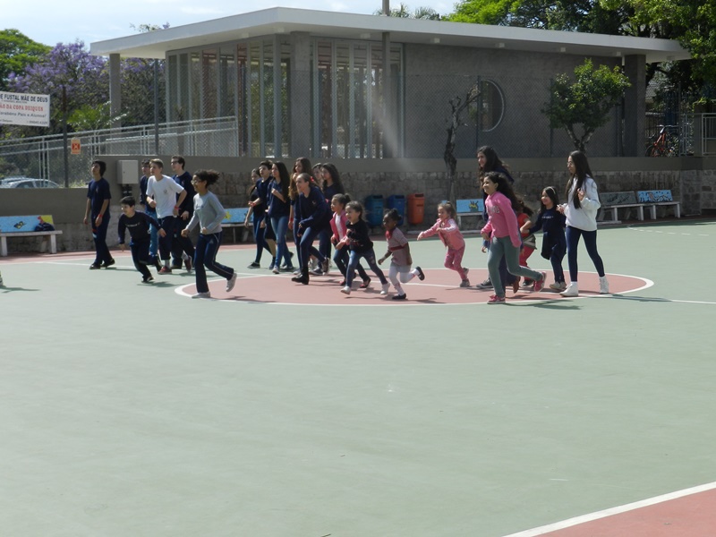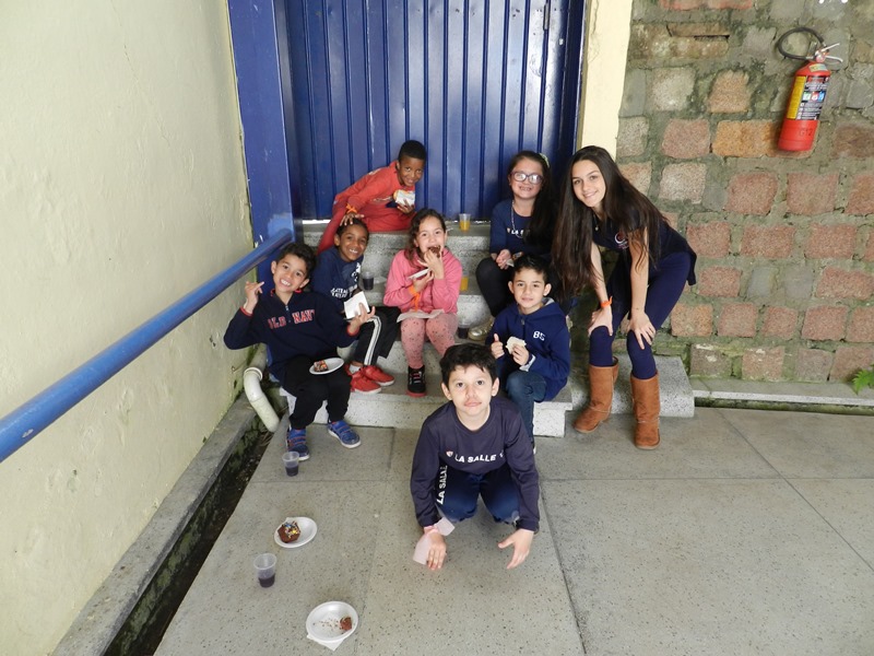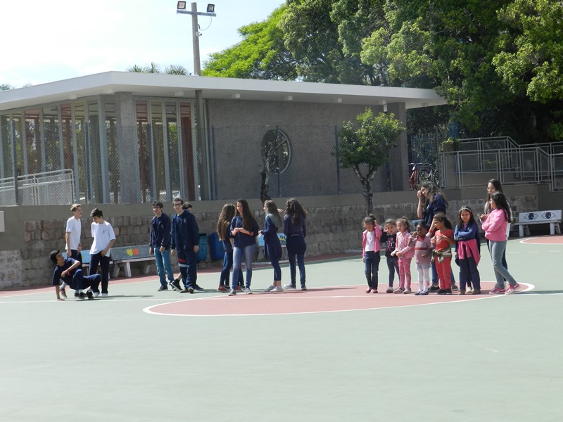 As instituições retribuíram a visita, e foram recepcionadas pelos estudantes do 9º ano que prepararam atividades e brincadeiras, como: jogos cooperativos, pracinha, futsal, voleibol, desenho, trampolim e tour pelo Colégio. Todos participaram e se divertiram muito! Os alunos também organizaram um gostoso lanche, com cachorro-quente, sanduíche e bolo de chocolate, tudo preparado com muito carinho por eles mesmos.