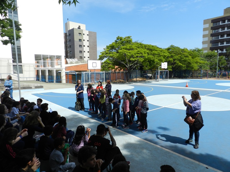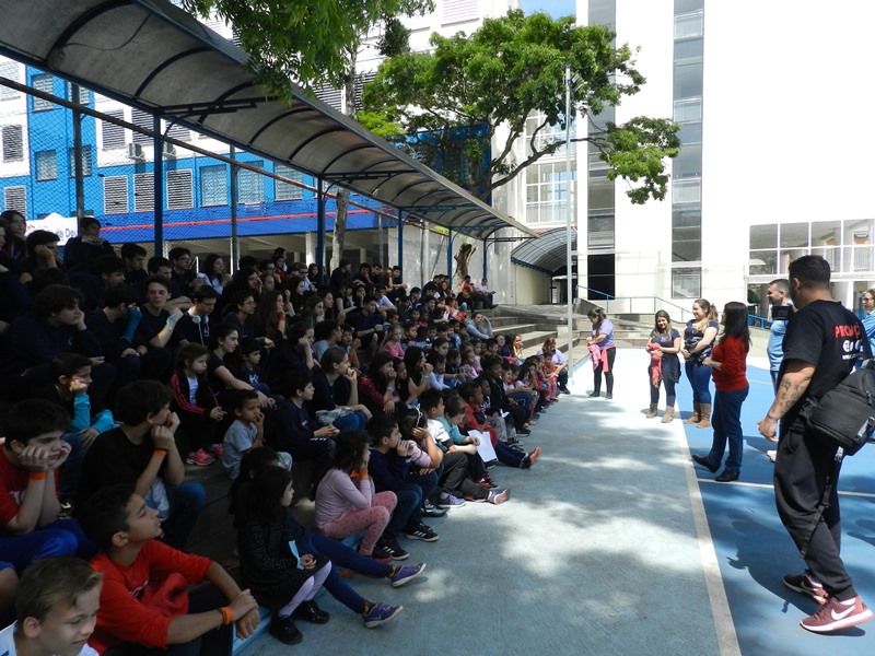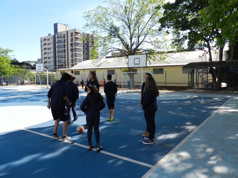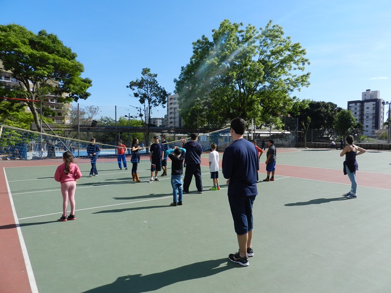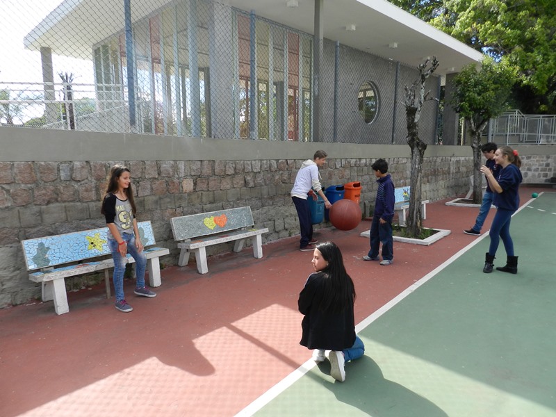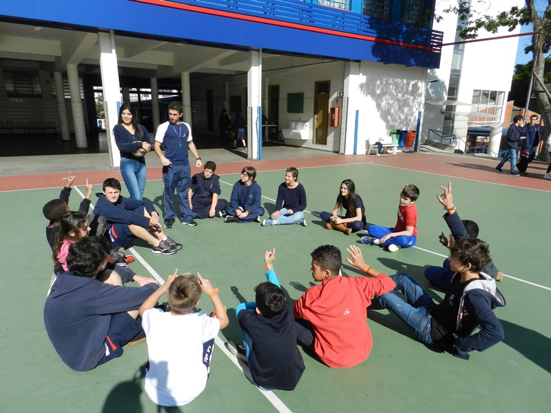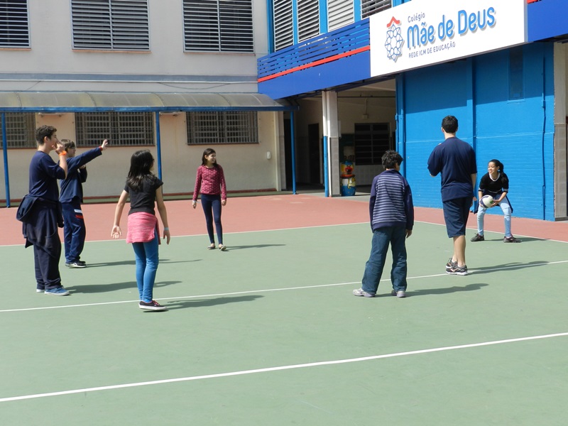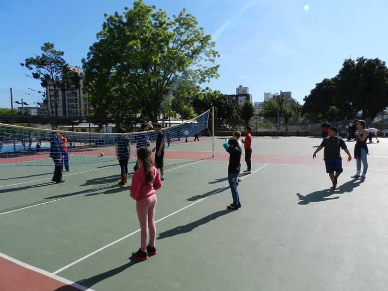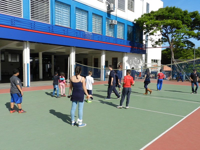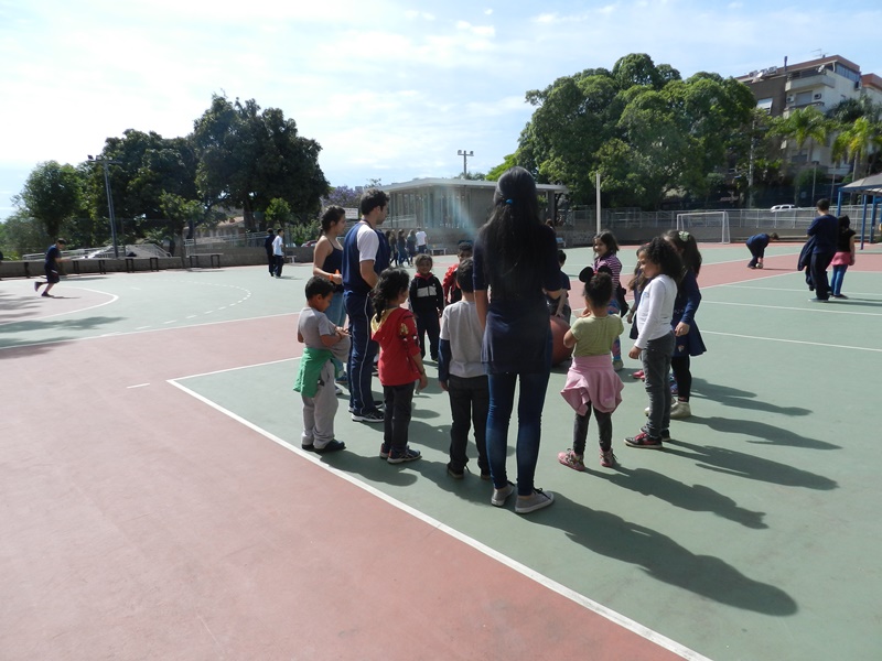 As instituições retribuíram a visita, e foram recepcionadas pelos estudantes do 9º ano que prepararam atividades e brincadeiras, como: jogos cooperativos, pracinha, futsal, voleibol, desenho, trampolim e tour pelo Colégio. Todos participaram e se divertiram muito! Os alunos também organizaram um gostoso lanche, com cachorro-quente, sanduíche e bolo de chocolate, tudo preparado com muito carinho por eles mesmos.