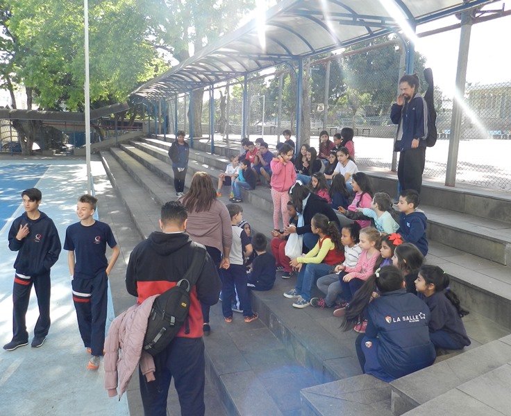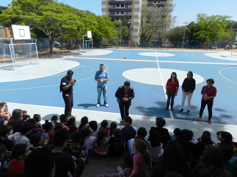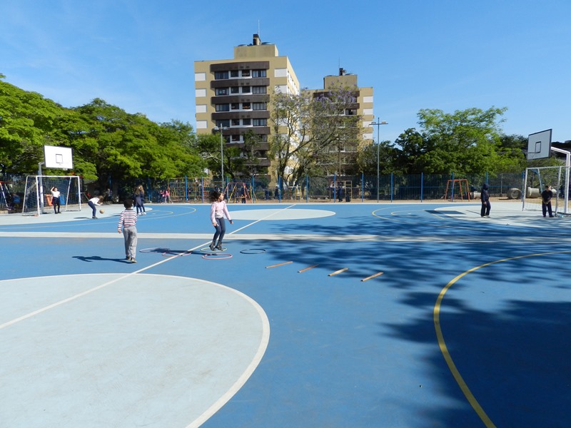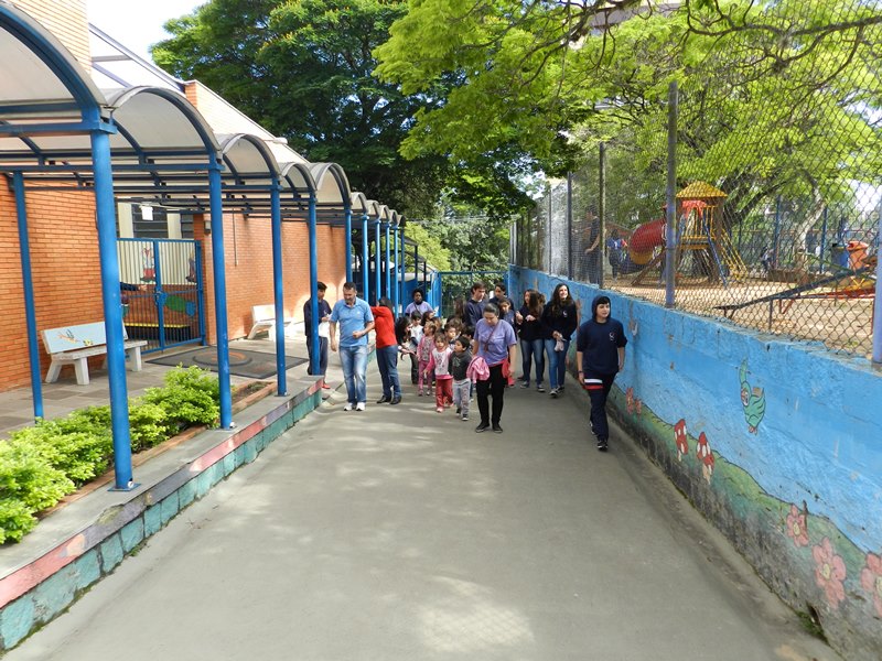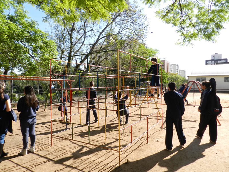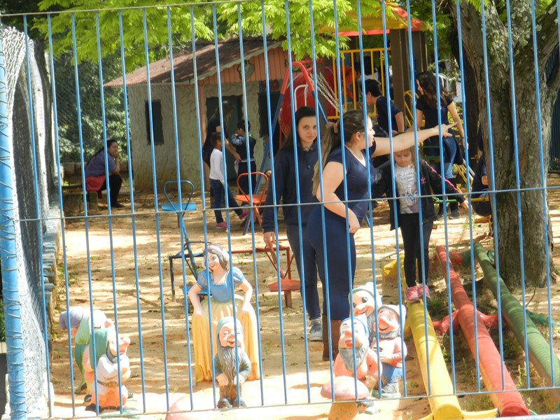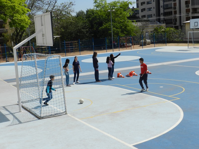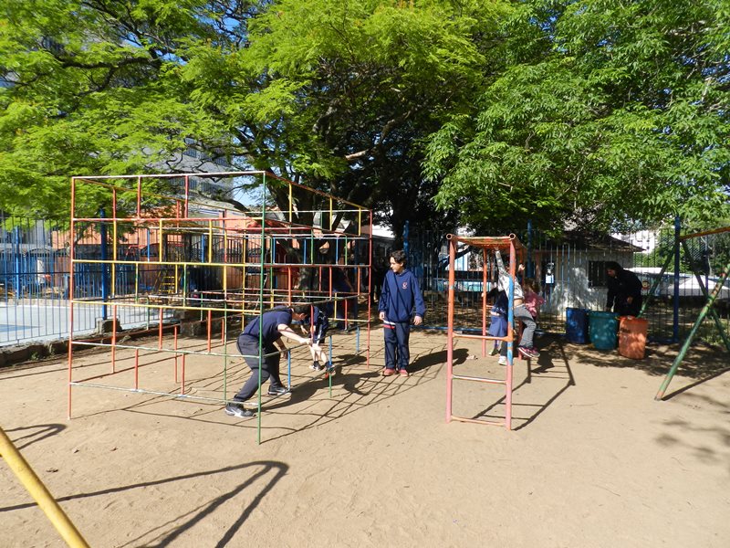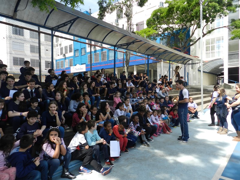 As instituições retribuíram a visita, e foram recepcionadas pelos estudantes do 9º ano que prepararam atividades e brincadeiras, como: jogos cooperativos, pracinha, futsal, voleibol, desenho, trampolim e tour pelo Colégio. Todos participaram e se divertiram muito! Os alunos também organizaram um gostoso lanche, com cachorro-quente, sanduíche e bolo de chocolate, tudo preparado com muito carinho por eles mesmos.