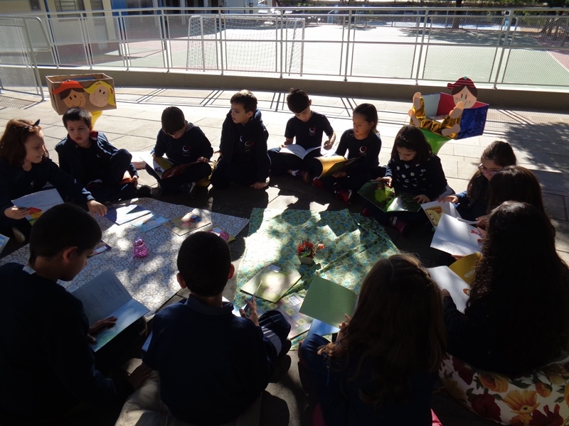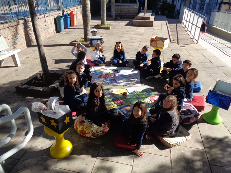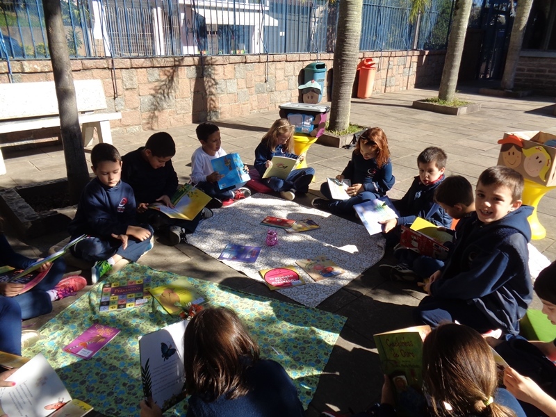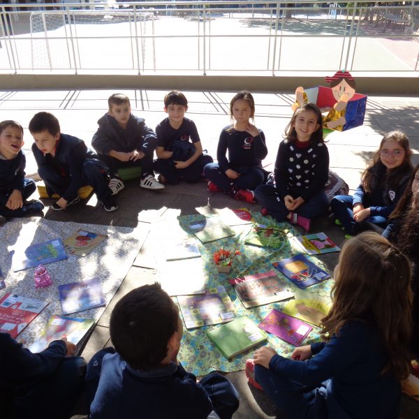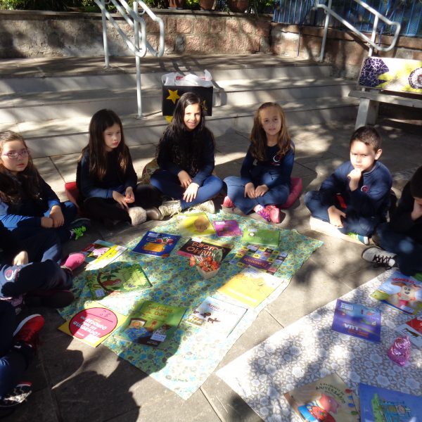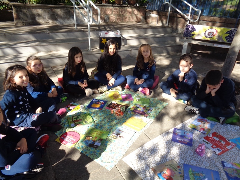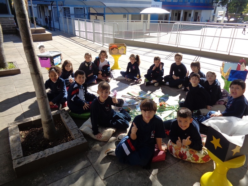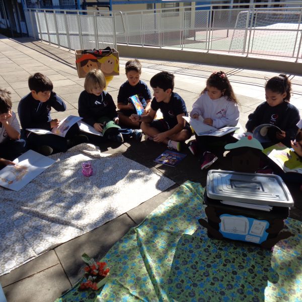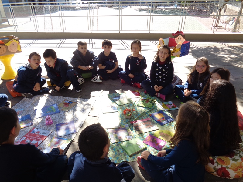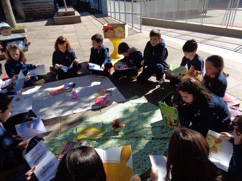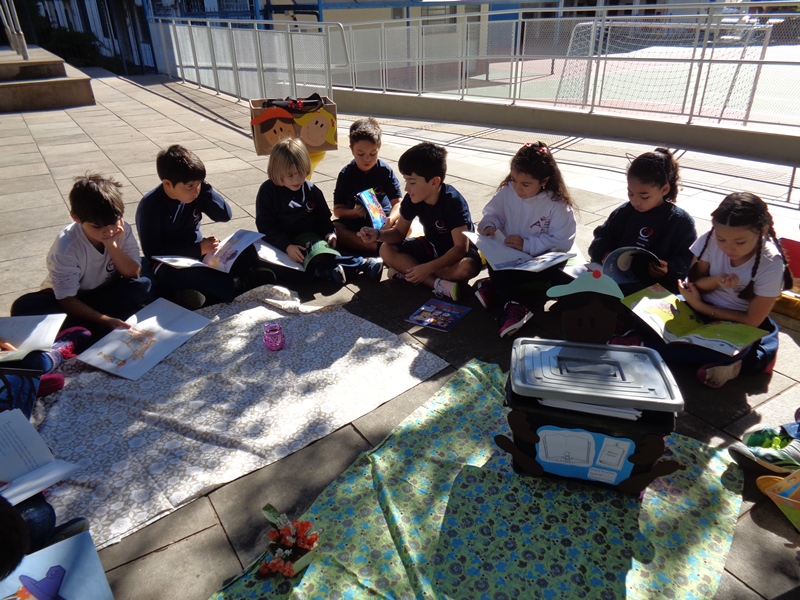 As professoras organizaram um ambiente lúdico e inspirador para dar início ao Projeto de Leitura e chamar à atenção das crianças para a importância do hábito de ler.